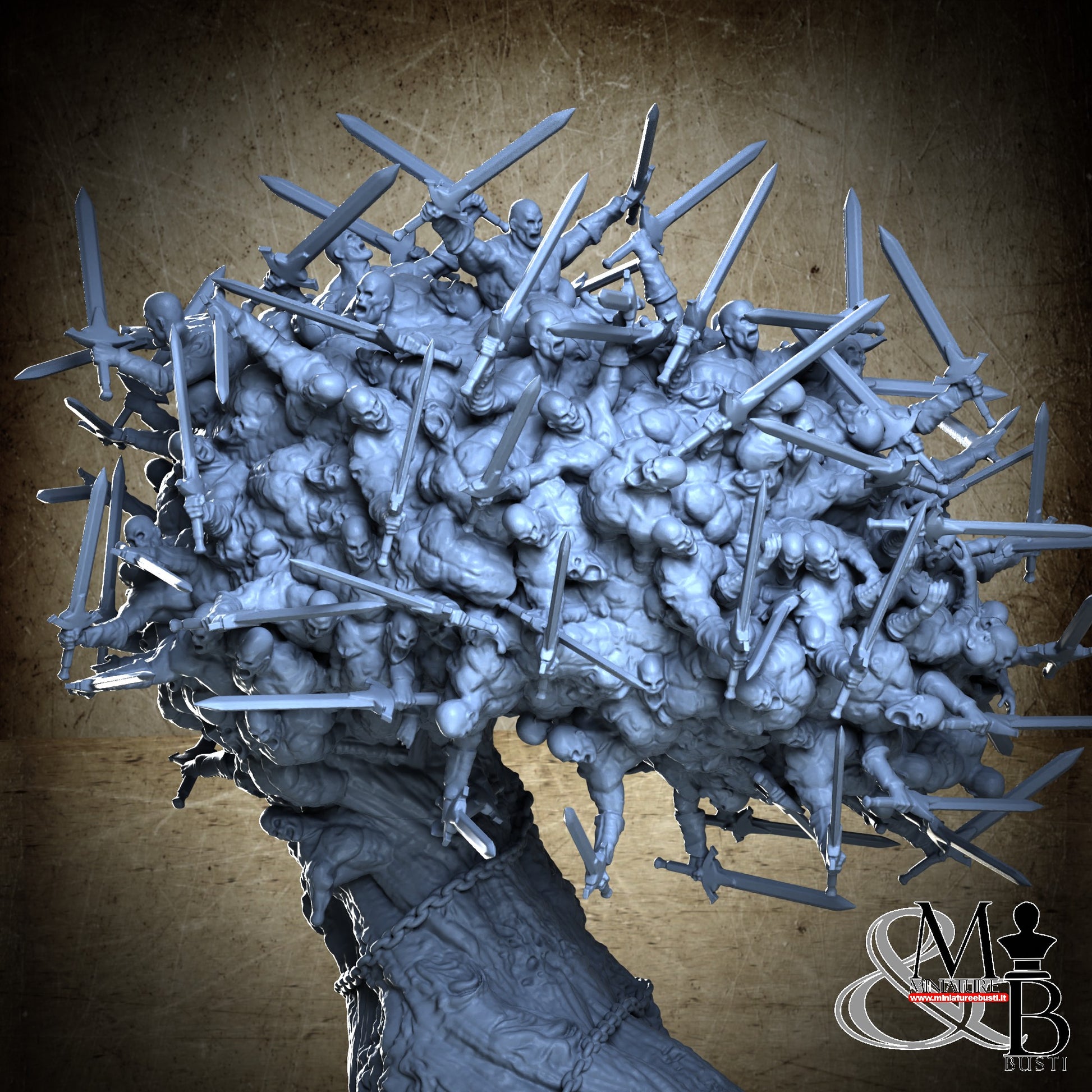 Questa è una MINIATURA. Le miniatura sono modelli pensati per i giochi di ruolo, ad esempio dungeons & Dragons, che poi ridimensioniamo in alto o in basso per le differenti scale. Di solito sono originariamente scolpiti per sistemi a 32mm (dove un uomo standard è alto 32mm dai piedi alla testa). Le proporzioni sono pensate tenendo in considerazione che verranno maneggiate spesso, quindi dettagli come spade e scudi sono particolarmente spessi. La miniatura viene venduta come appare nell'immagine, e dato che alcuni autori non aggiungono una base, se questa è assente nell'immagine significa che non verrà fornita con la miniatura.
