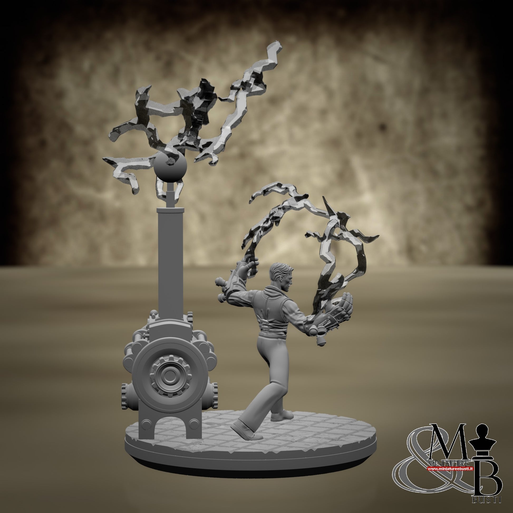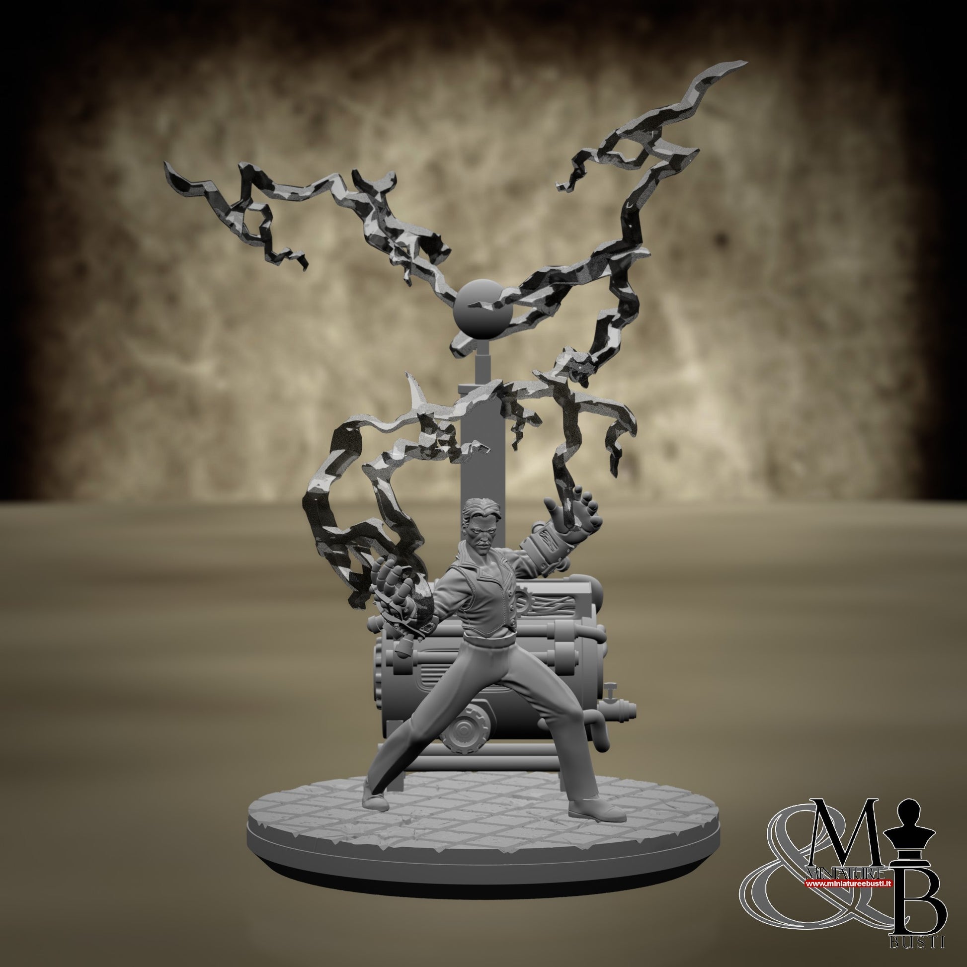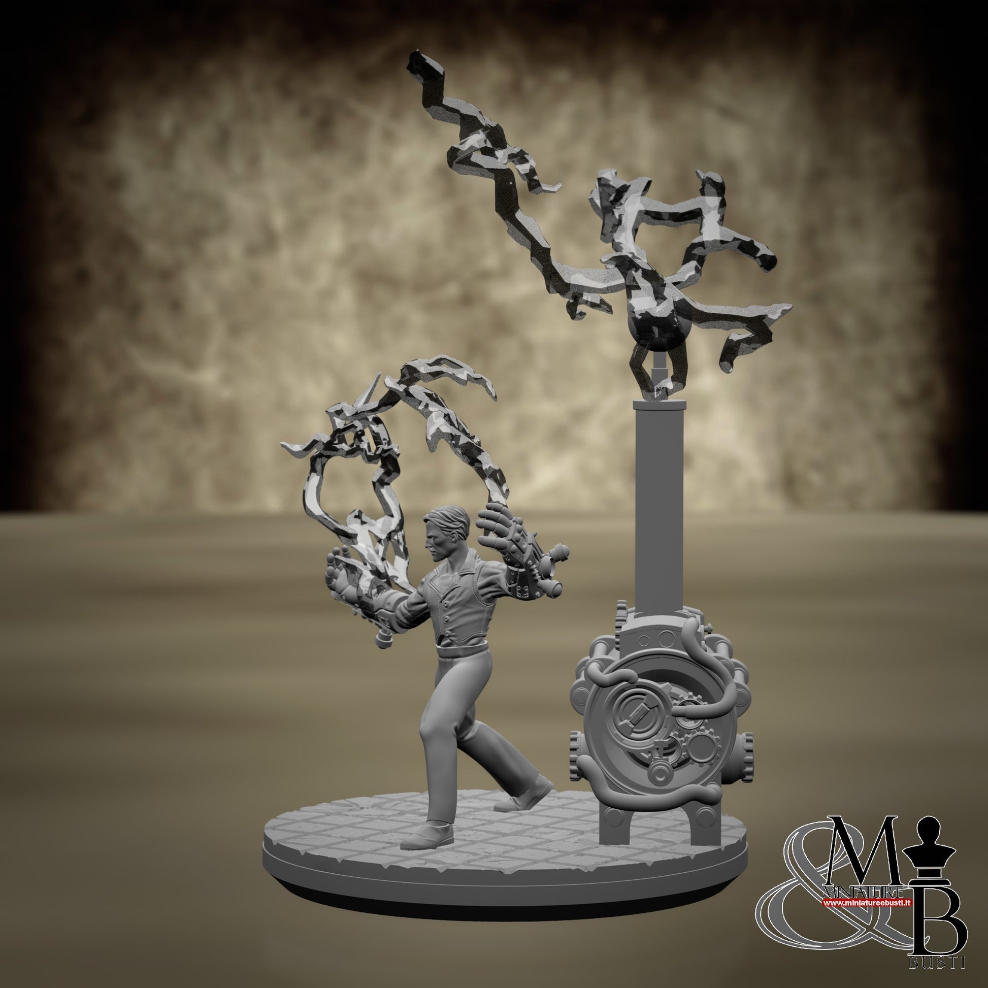 Questa è una MINIATURA. Le miniatura sono modelli pensati per i giochi di ruolo, ad esempio dungeons & Dragons, che poi ridimensioniamo in alto o in basso per le differenti scale. Di solito sono originariamente scolpiti per sistemi a 32mm (dove un uomo standard è alto 32mm dai piedi alla testa). Le proporzioni sono pensate tenendo in considerazione che verranno maneggiate spesso, quindi dettagli come spade e scudi sono particolarmente spessi. La miniatura viene venduta come appare nell'immagine, e dato che alcuni autori non aggiungono una base, se questa è assente nell'immagine significa che non verrà fornita con la miniatura.