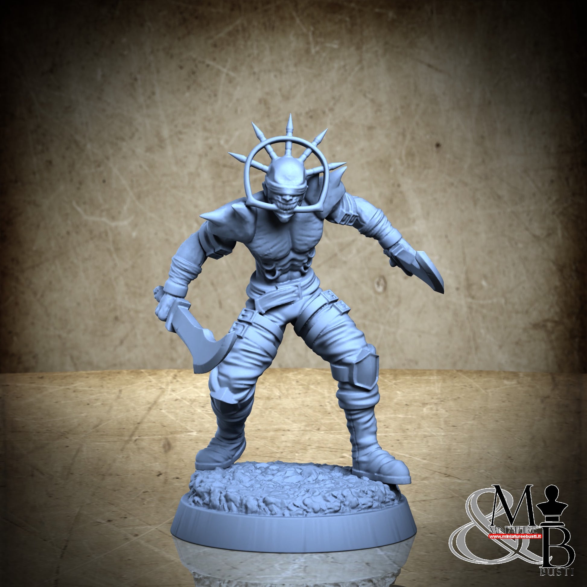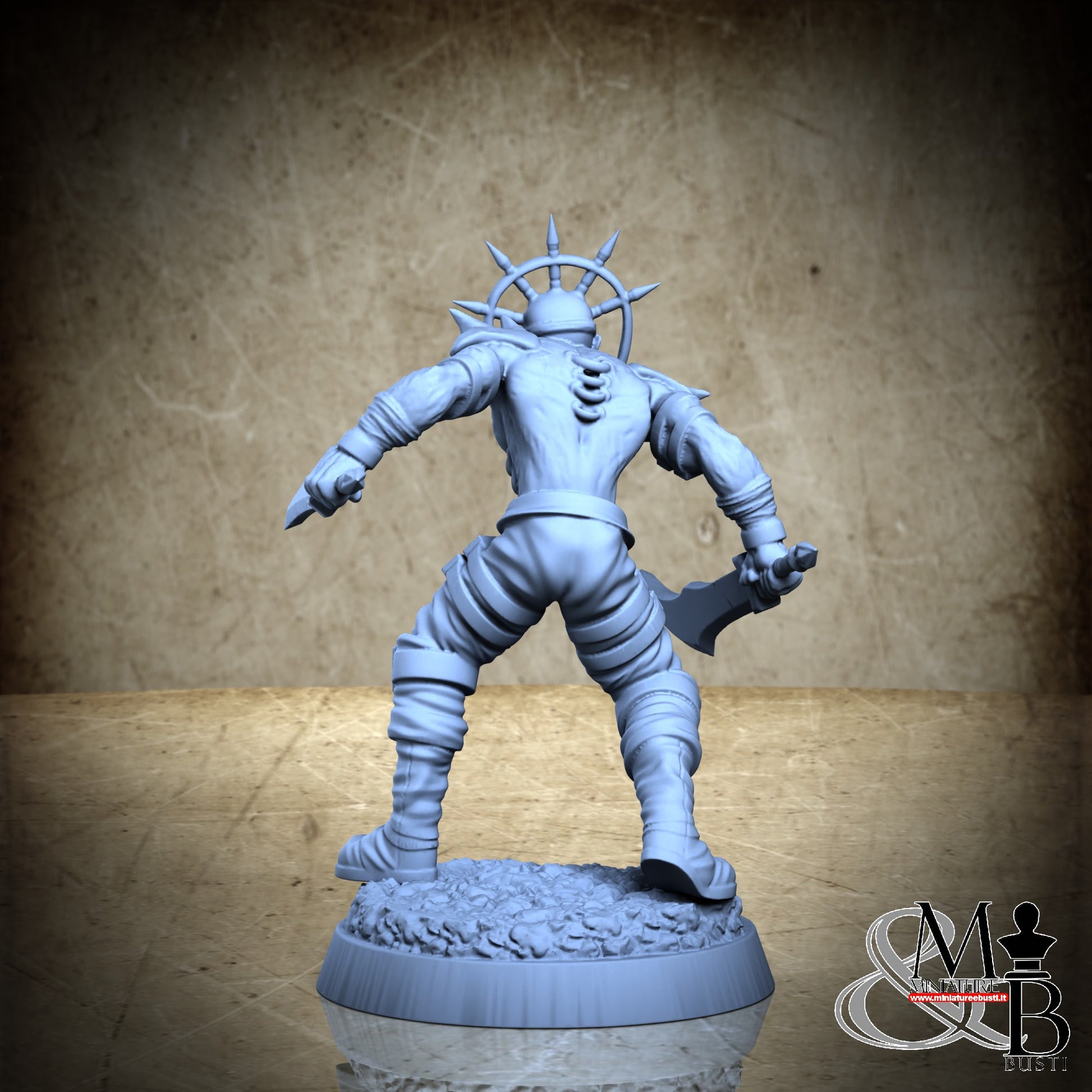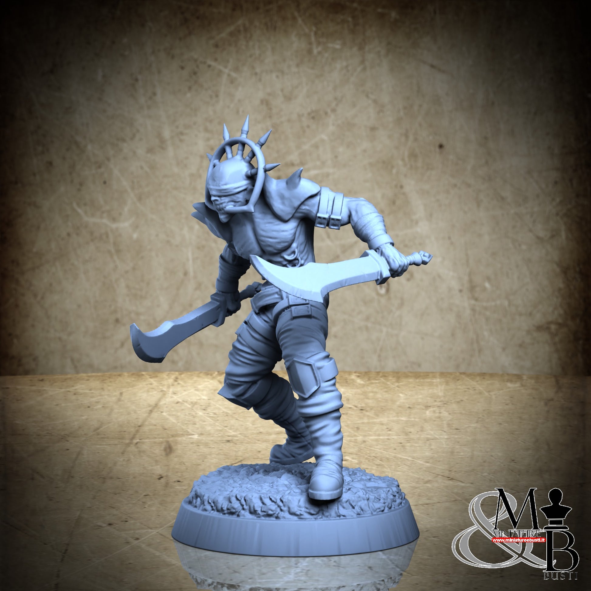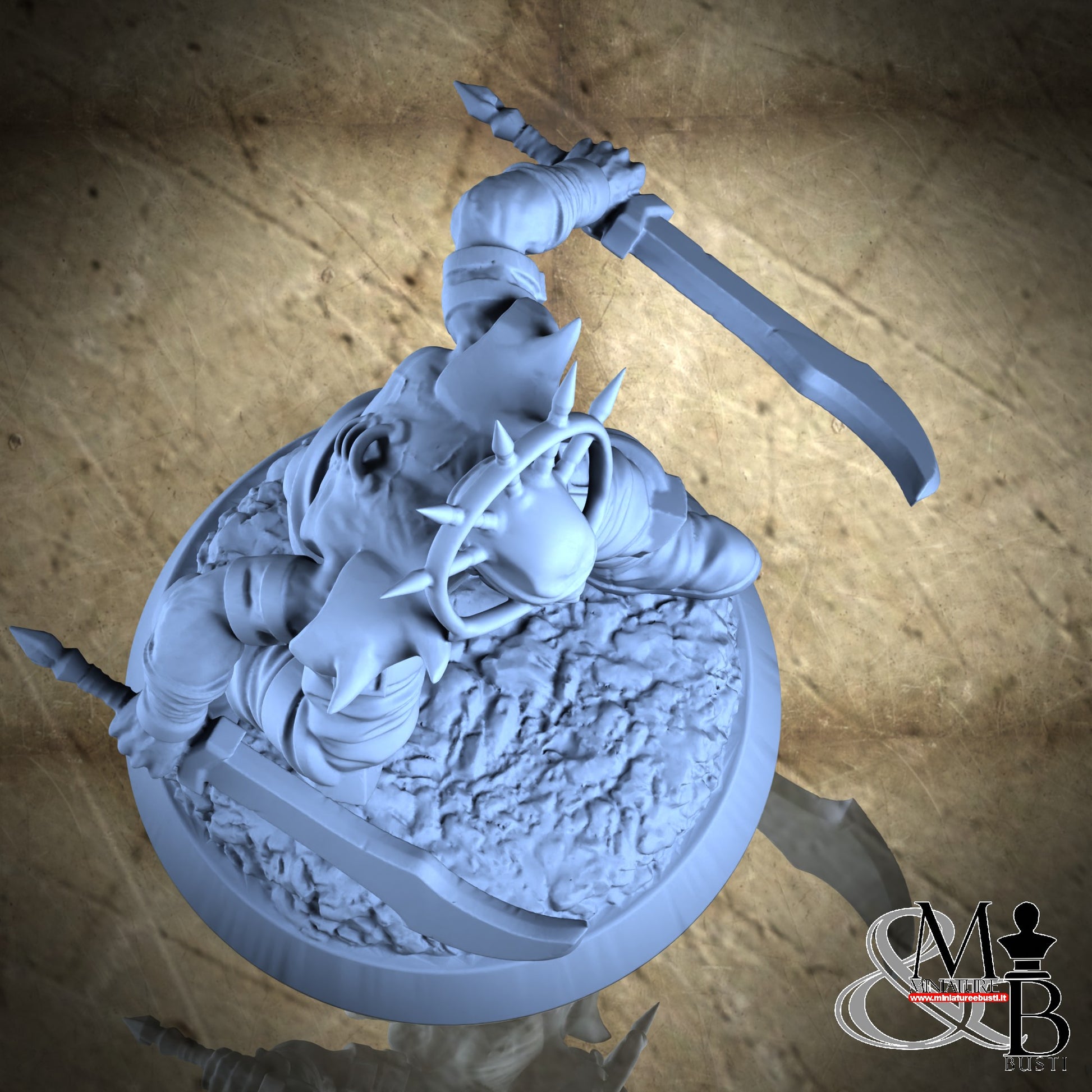 Questa è una MINIATURA. Le miniatura sono modelli pensati per i giochi di ruolo, ad esempio dungeons & Dragons, che poi ridimensioniamo in alto o in basso per le differenti scale. Di solito sono originariamente scolpiti per sistemi a 32mm (dove un uomo standard è alto 32mm dai piedi alla testa). Le proporzioni sono pensate tenendo in considerazione che verranno maneggiate spesso, quindi dettagli come spade e scudi sono particolarmente spessi. La miniatura viene venduta come appare nell'immagine, e dato che alcuni autori non aggiungono una base, se questa è assente nell'immagine significa che non verrà fornita con la miniatura.