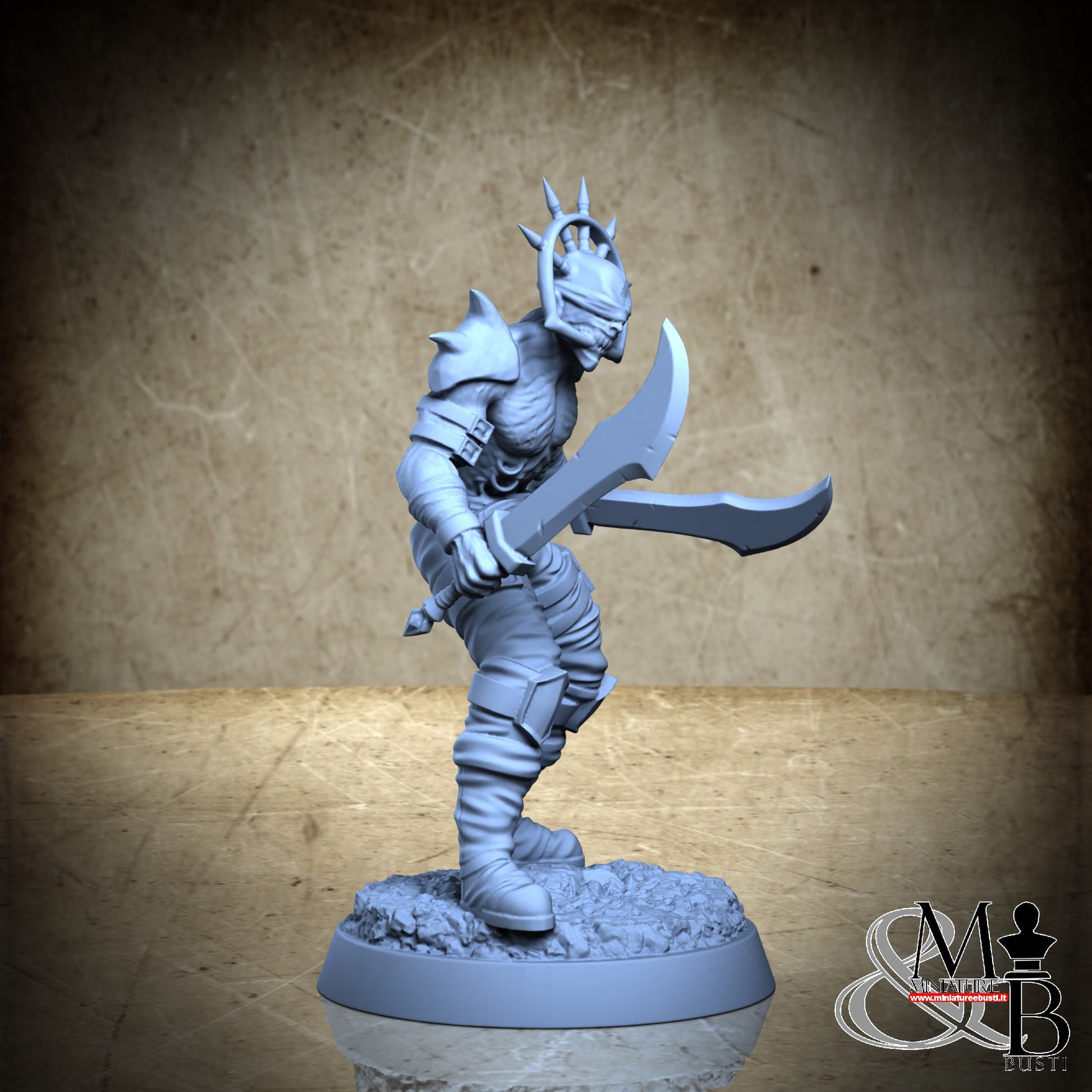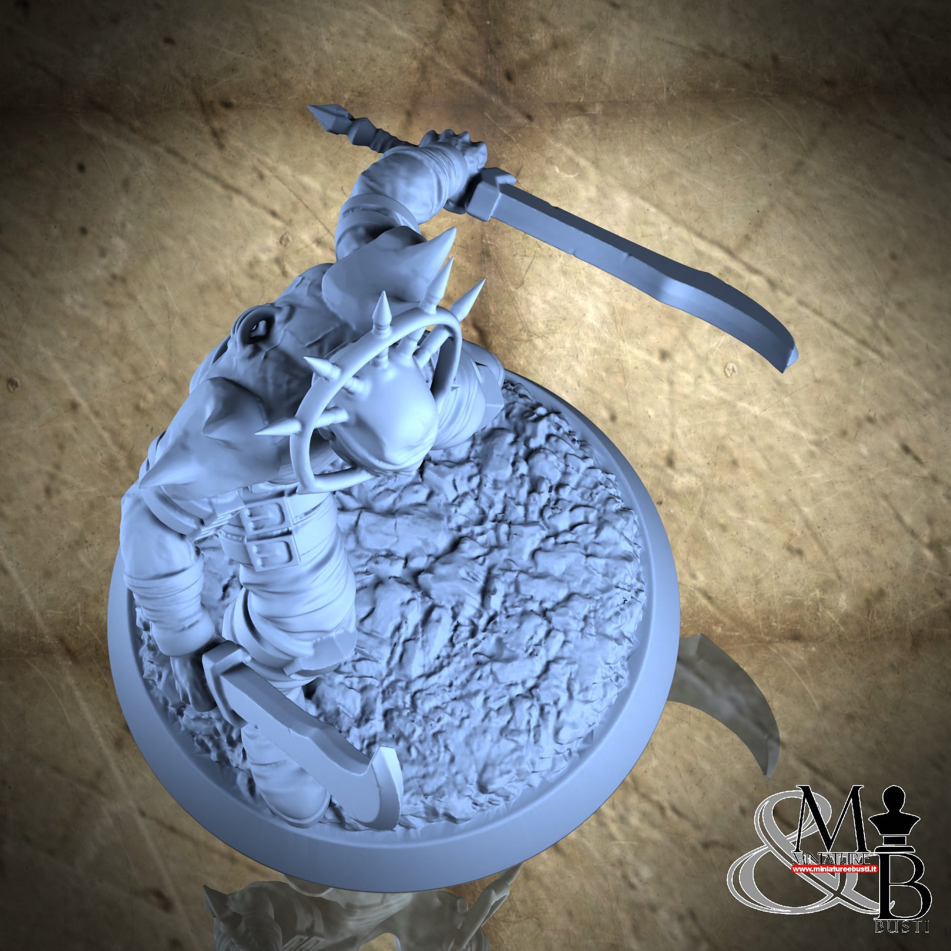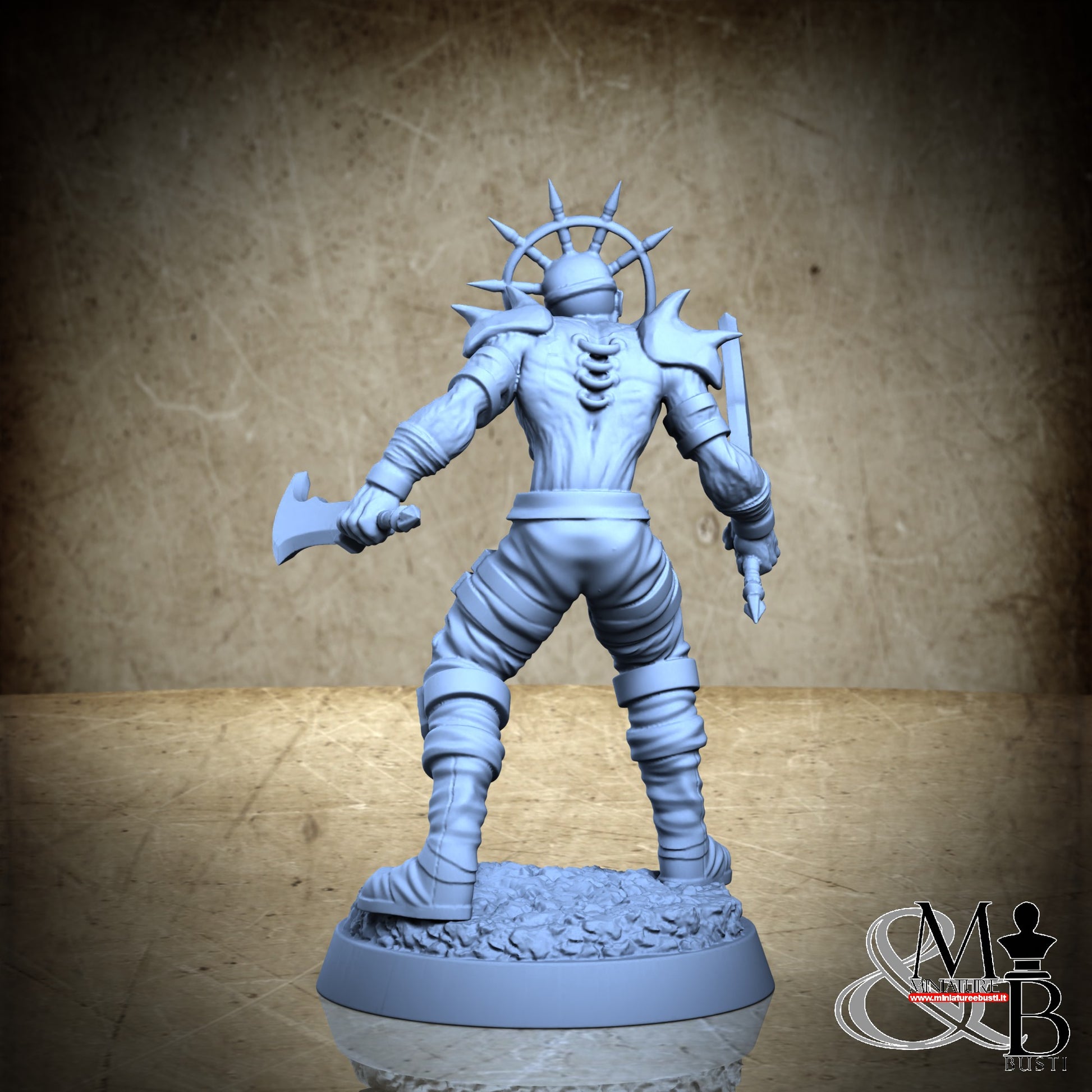 Questa è una MINIATURA. Le miniatura sono modelli pensati per i giochi di ruolo, ad esempio dungeons & Dragons, che poi ridimensioniamo in alto o in basso per le differenti scale. Di solito sono originariamente scolpiti per sistemi a 32mm (dove un uomo standard è alto 32mm dai piedi alla testa). Le proporzioni sono pensate tenendo in considerazione che verranno maneggiate spesso, quindi dettagli come spade e scudi sono particolarmente spessi. La miniatura viene venduta come appare nell'immagine, e dato che alcuni autori non aggiungono una base, se questa è assente nell'immagine significa che non verrà fornita con la miniatura.