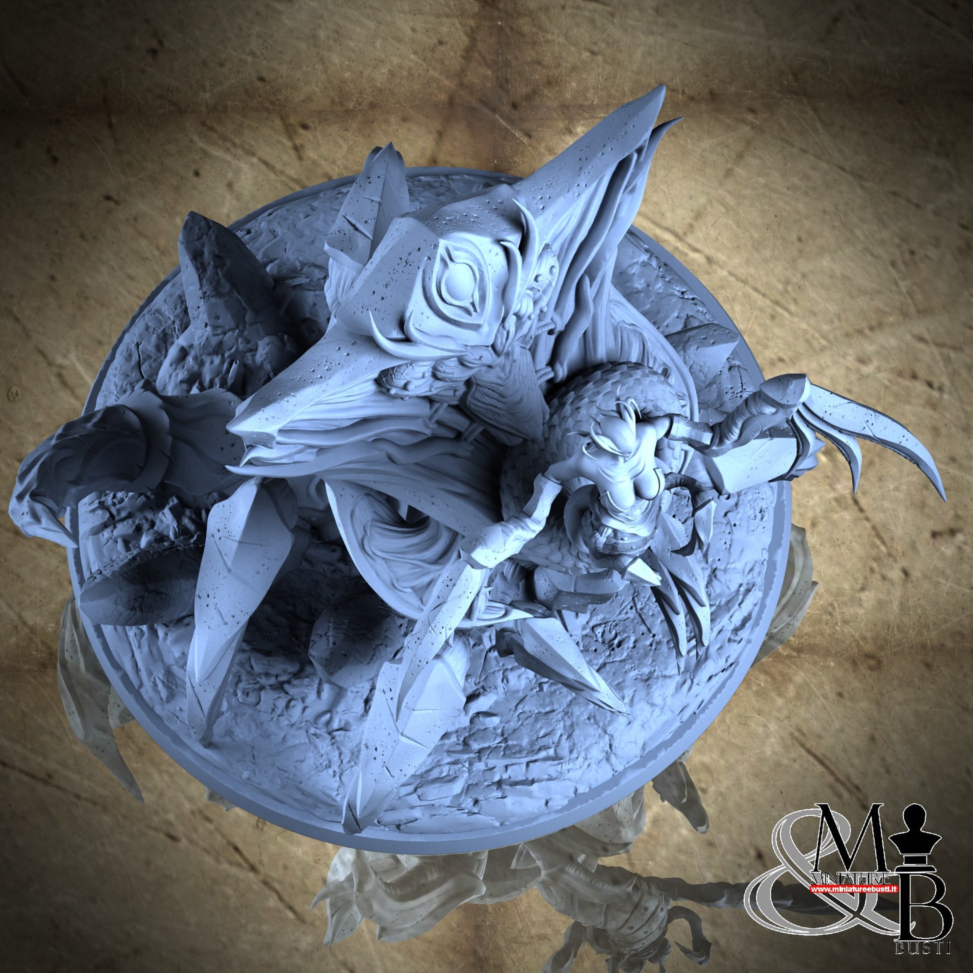 Questa è una MINIATURA. Le miniatura sono modelli pensati per i giochi di ruolo, ad esempio dungeons & Dragons, che poi ridimensioniamo in alto o in basso per le differenti scale. Di solito sono originariamente scolpiti per sistemi a 32mm (dove un uomo standard è alto 32mm dai piedi alla testa). Le proporzioni sono pensate tenendo in considerazione che verranno maneggiate spesso, quindi dettagli come spade e scudi sono particolarmente spessi. La miniatura viene venduta come appare nell'immagine, e dato che alcuni autori non aggiungono una base, se questa è assente nell'immagine significa che non verrà fornita con la miniatura.