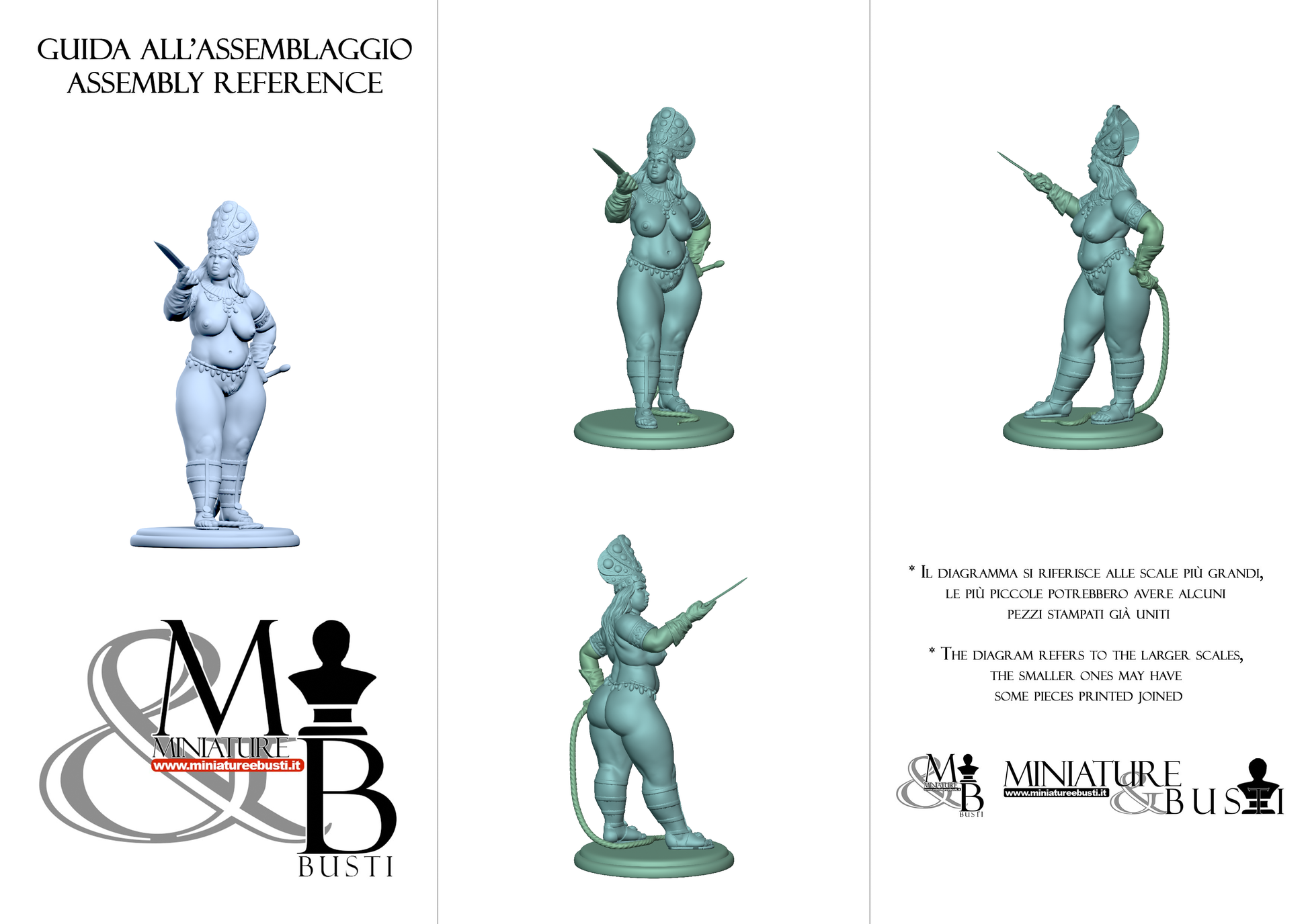 Questa è una STATUA. Le statue sono modelli originariamente scolpiti solitamente in scala 1:12, 1:8 o 1:10, che poi ridimensioniamo in alto o in basso per le differenti scale. Data la grande scala iniziale, nelle scale più piccole i dettagli potrebbero perdersi o spade e altri componenti sottili potrebbero essere molto fragili.