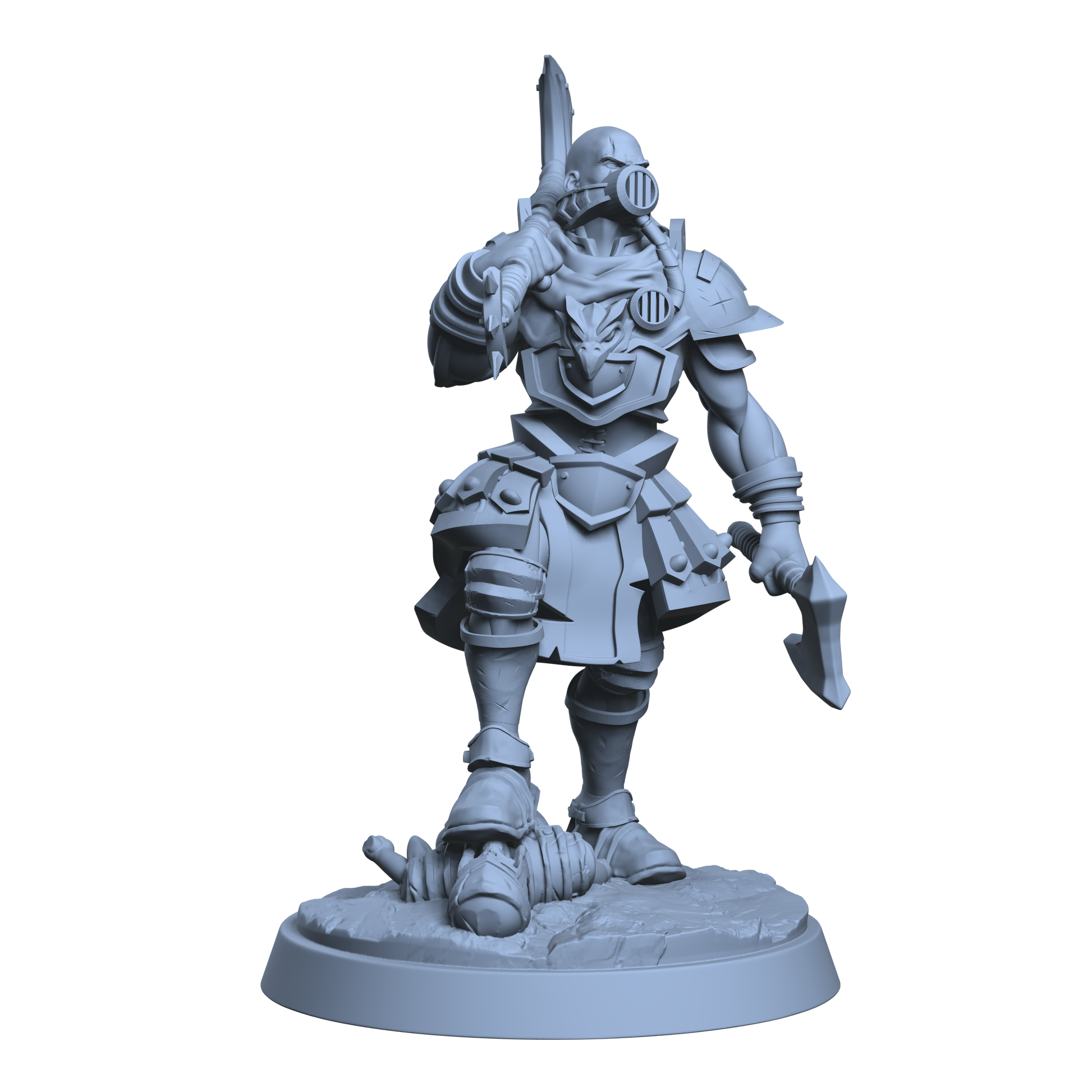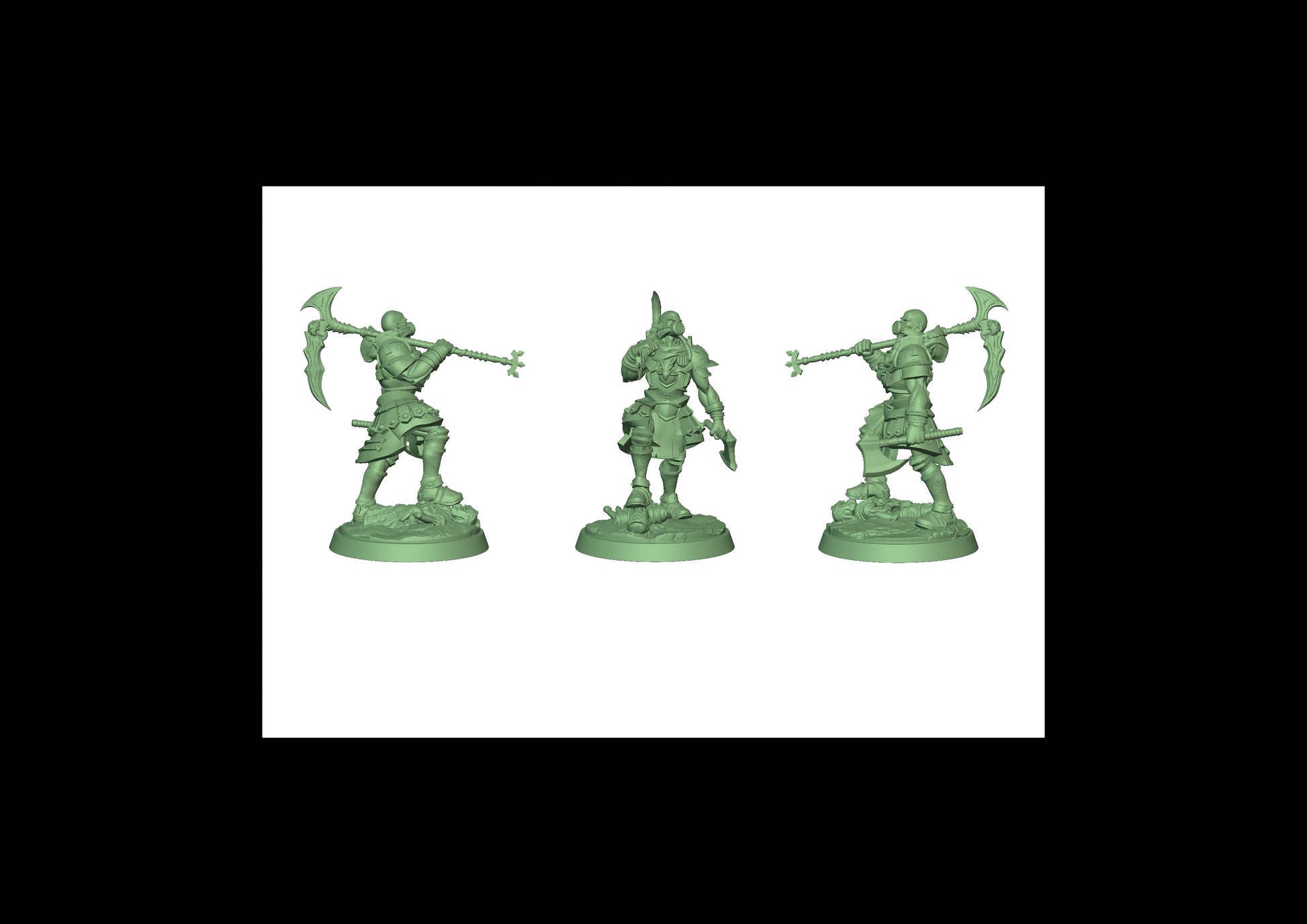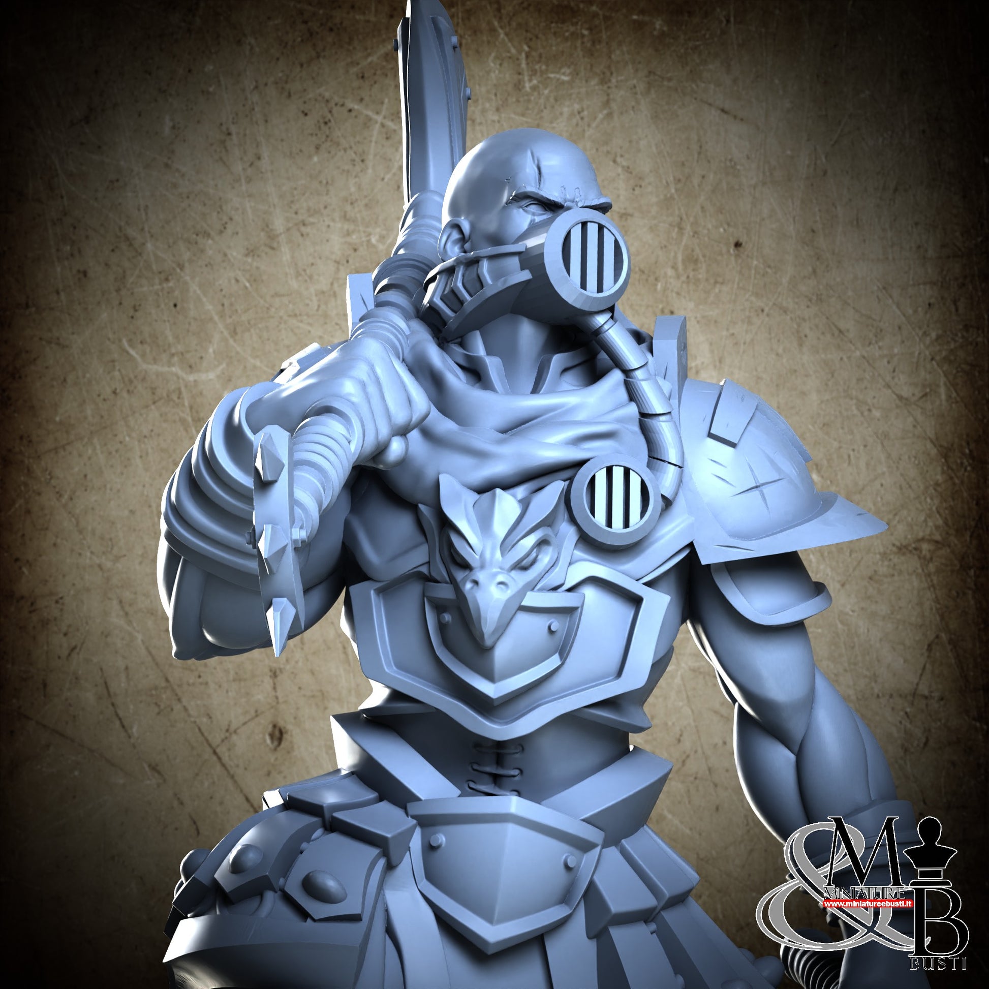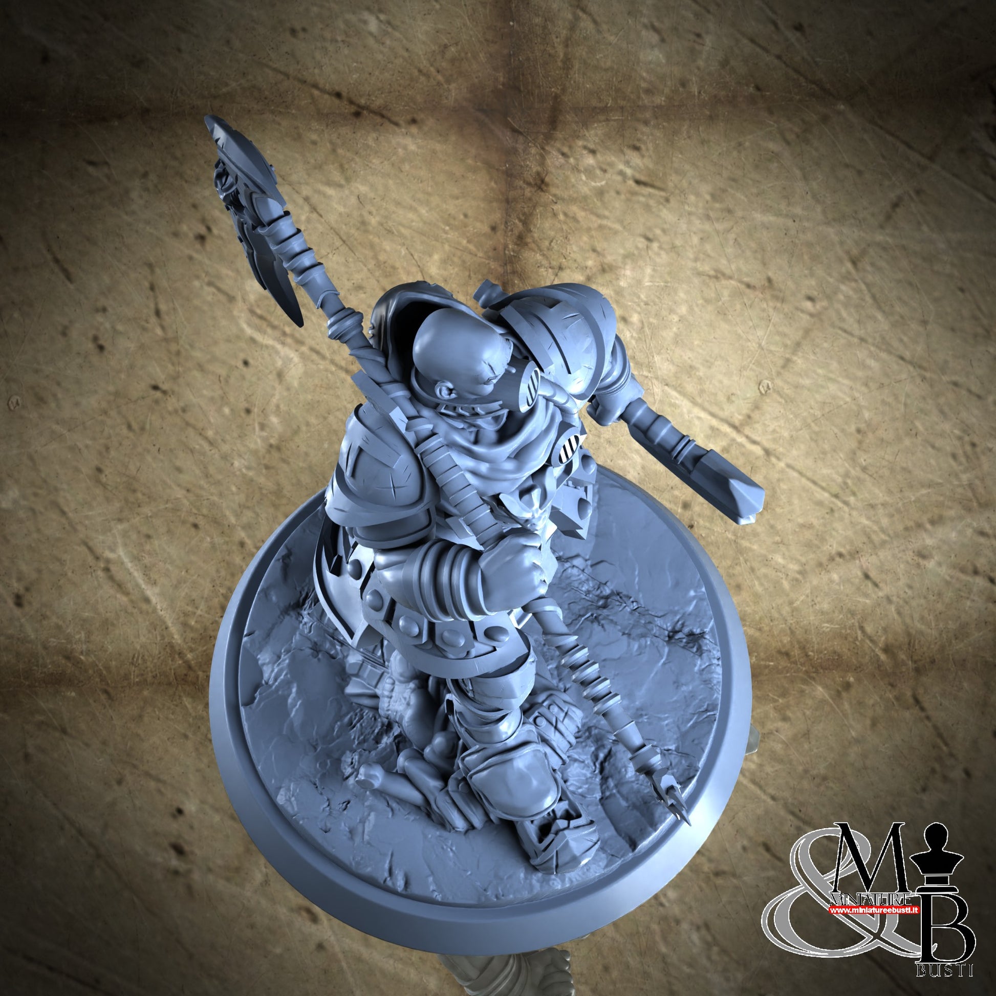 Questa è una MINIATURA. Le miniatura sono modelli pensati per i giochi di ruolo, ad esempio dungeons & Dragons, che poi ridimensioniamo in alto o in basso per le differenti scale. Di solito sono originariamente scolpiti per sistemi a 32mm (dove un uomo standard è alto 32mm dai piedi alla testa). Le proporzioni sono pensate tenendo in considerazione che verranno maneggiate spesso, quindi dettagli come spade e scudi sono particolarmente spessi. La miniatura viene venduta come appare nell'immagine, e dato che alcuni autori non aggiungono una base, se questa è assente nell'immagine significa che non verrà fornita con la miniatura.