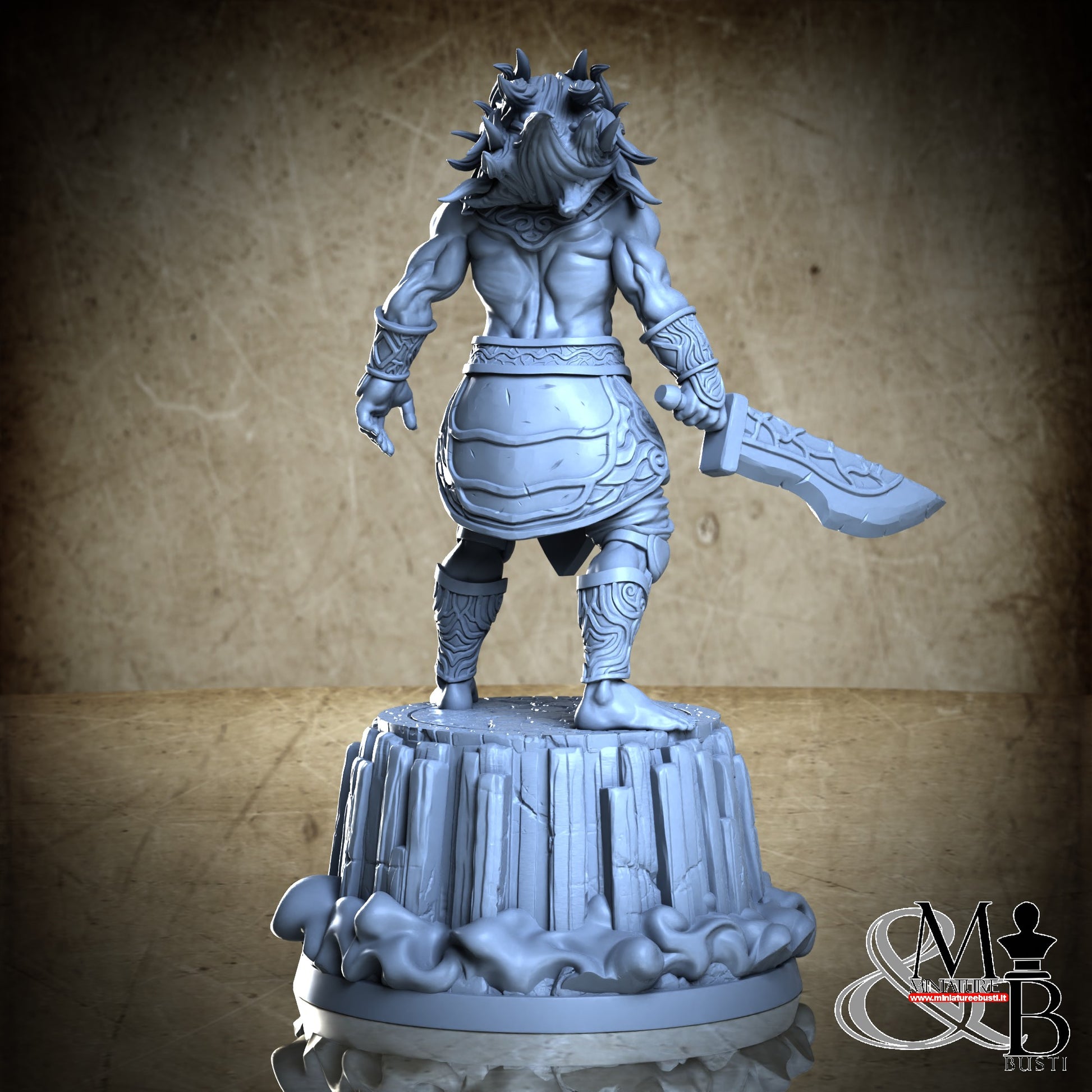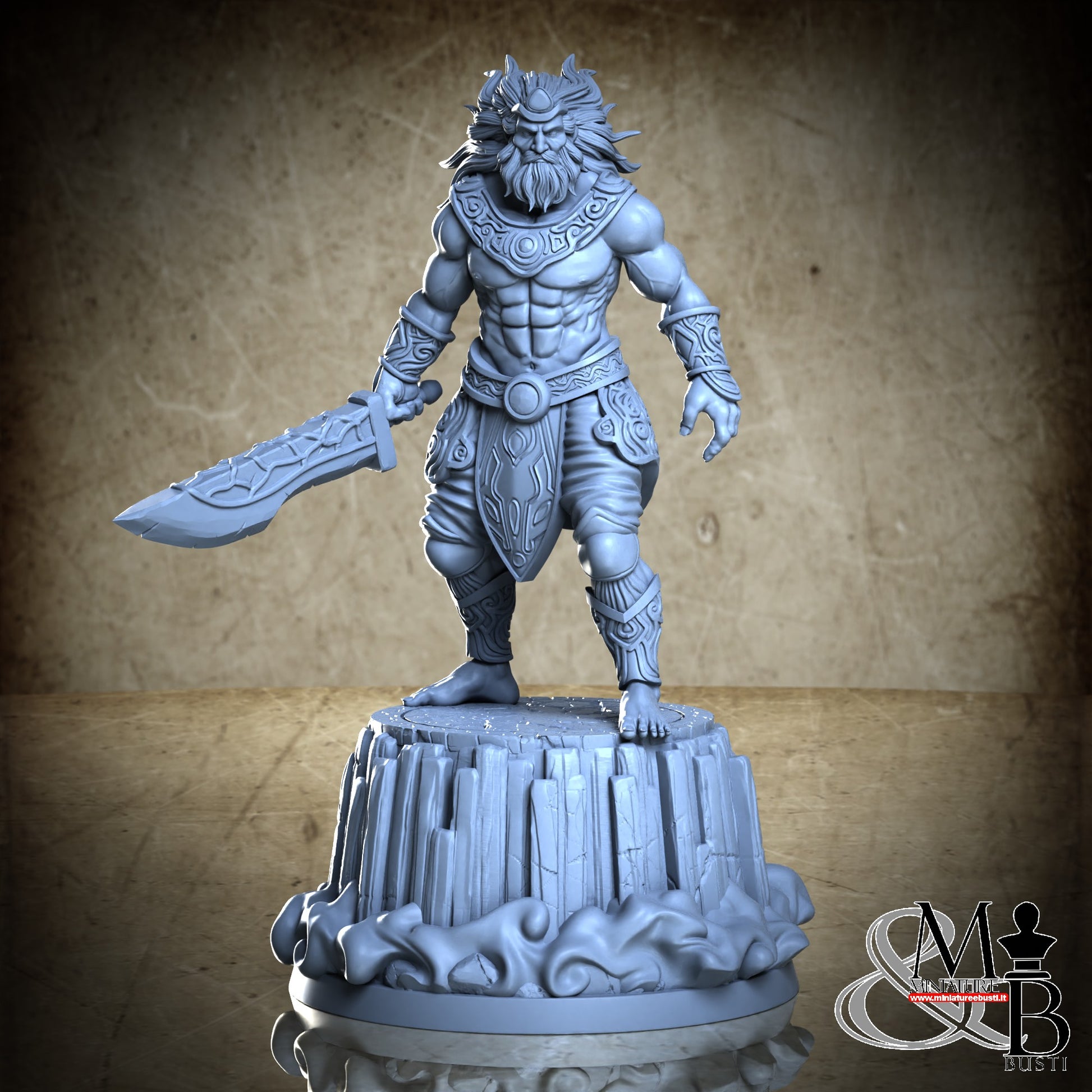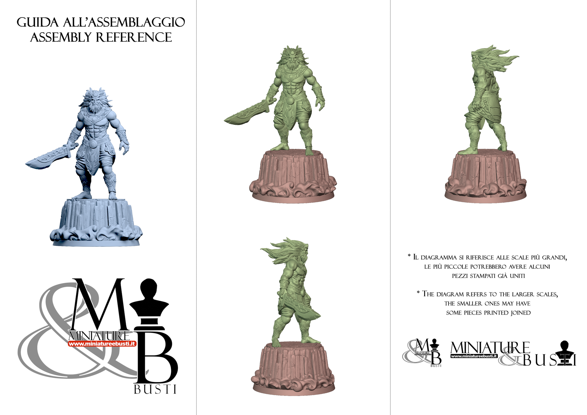 Questa è una MINIATURA. Le miniatura sono modelli pensati per i giochi di ruolo, ad esempio dungeons & Dragons, che poi ridimensioniamo in alto o in basso per le differenti scale. Di solito sono originariamente scolpiti per sistemi a 32mm (dove un uomo standard è alto 32mm dai piedi alla testa). Le proporzioni sono pensate tenendo in considerazione che verranno maneggiate spesso, quindi dettagli come spade e scudi sono particolarmente spessi. La miniatura viene venduta come appare nell'immagine, e dato che alcuni autori non aggiungono una base, se questa è assente nell'immagine significa che non verrà fornita con la miniatura.