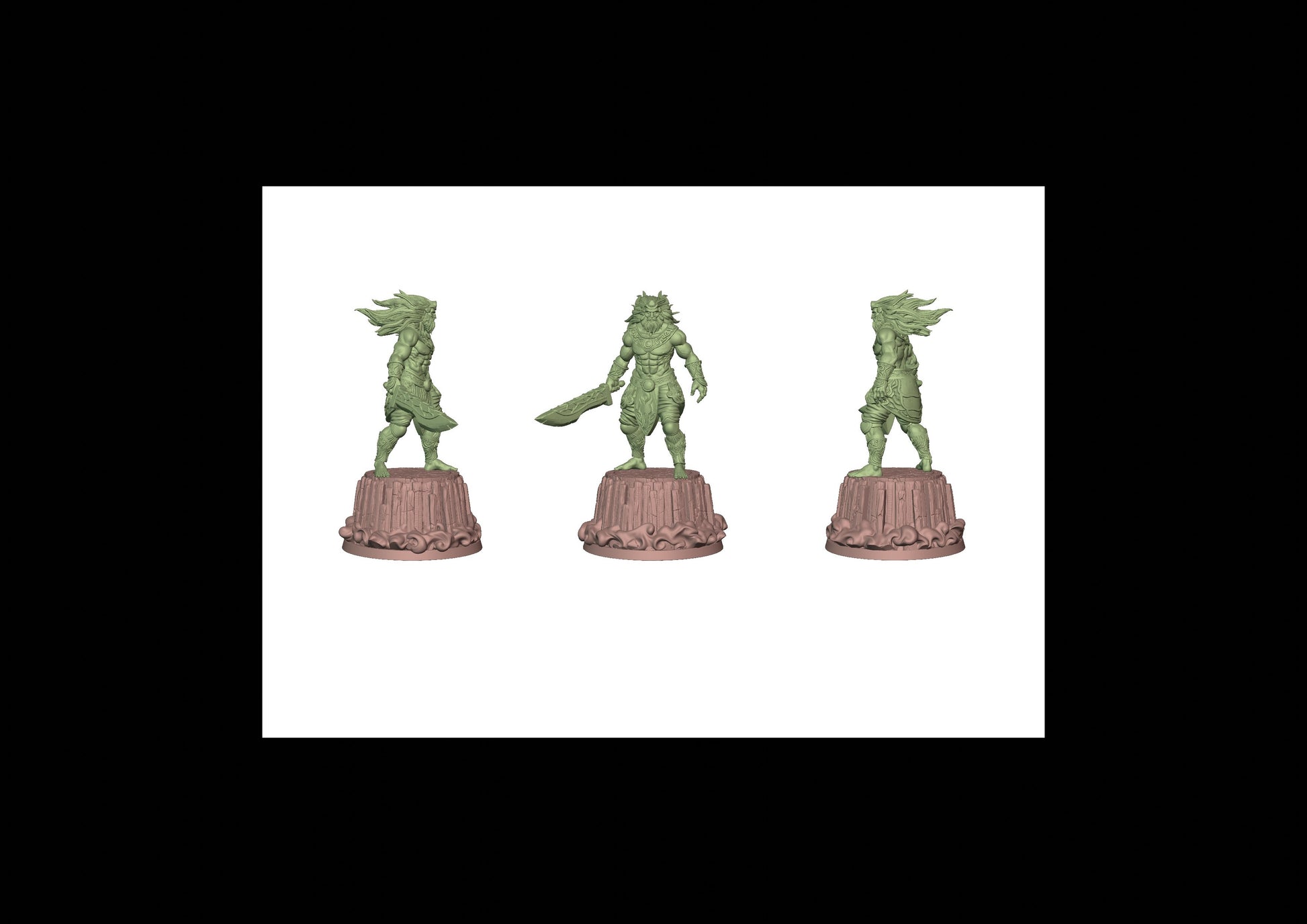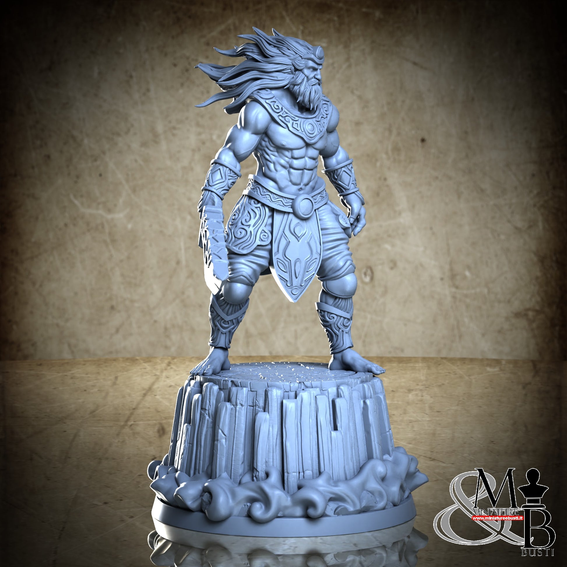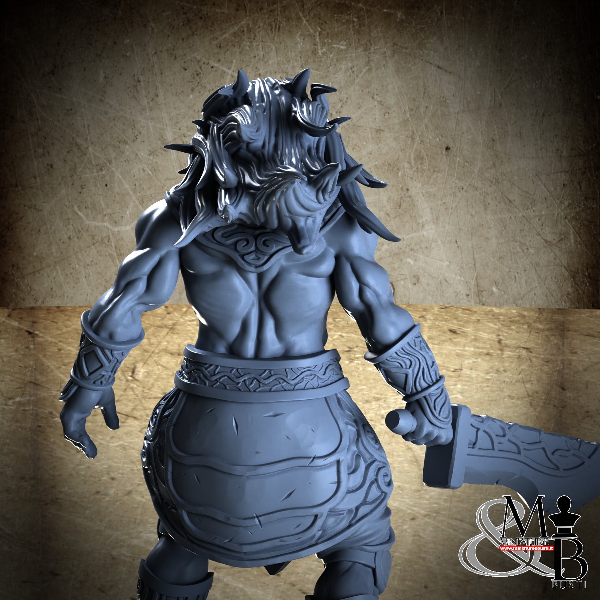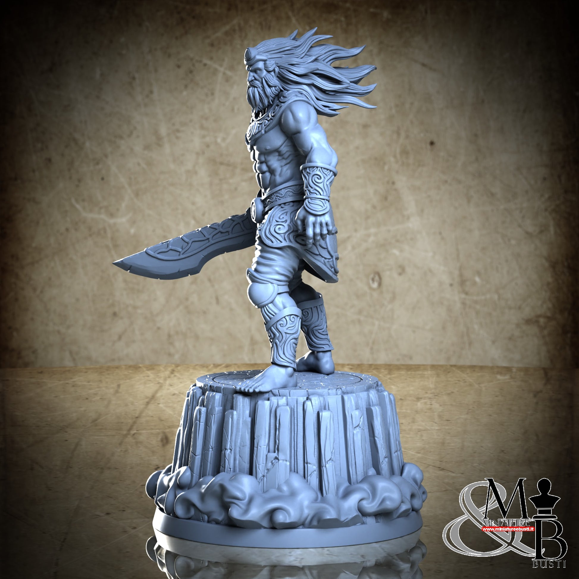 Questa è una MINIATURA. Le miniatura sono modelli pensati per i giochi di ruolo, ad esempio dungeons & Dragons, che poi ridimensioniamo in alto o in basso per le differenti scale. Di solito sono originariamente scolpiti per sistemi a 32mm (dove un uomo standard è alto 32mm dai piedi alla testa). Le proporzioni sono pensate tenendo in considerazione che verranno maneggiate spesso, quindi dettagli come spade e scudi sono particolarmente spessi. La miniatura viene venduta come appare nell'immagine, e dato che alcuni autori non aggiungono una base, se questa è assente nell'immagine significa che non verrà fornita con la miniatura.