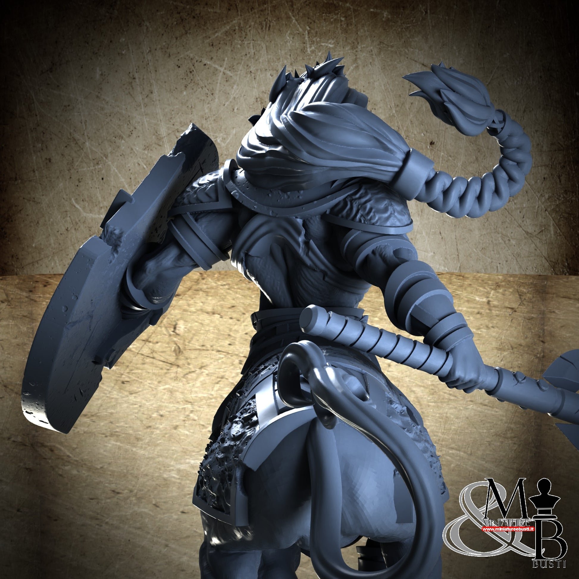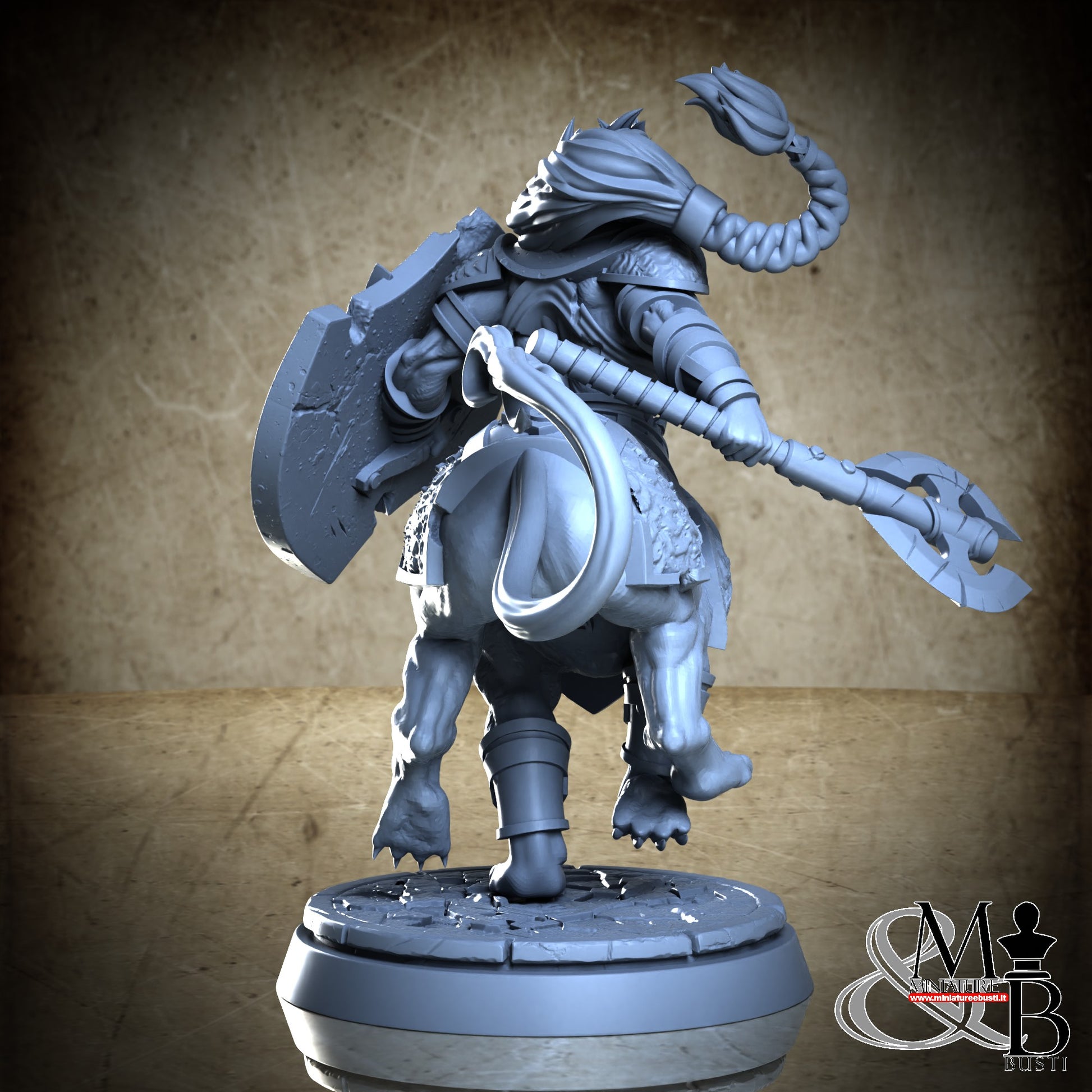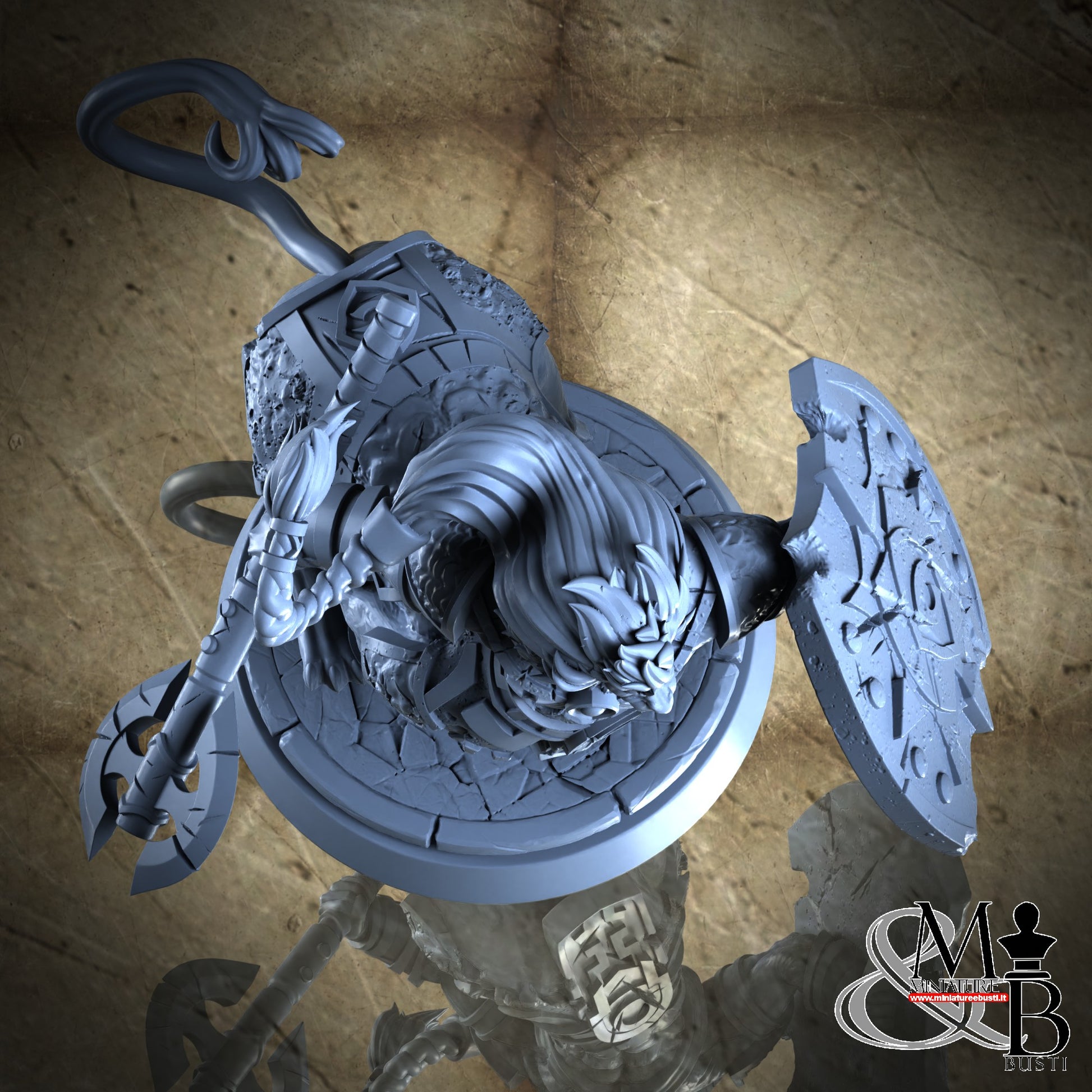 Questa è una MINIATURA. Le miniatura sono modelli pensati per i giochi di ruolo, ad esempio dungeons & Dragons, che poi ridimensioniamo in alto o in basso per le differenti scale. Di solito sono originariamente scolpiti per sistemi a 32mm (dove un uomo standard è alto 32mm dai piedi alla testa). Le proporzioni sono pensate tenendo in considerazione che verranno maneggiate spesso, quindi dettagli come spade e scudi sono particolarmente spessi. La miniatura viene venduta come appare nell'immagine, e dato che alcuni autori non aggiungono una base, se questa è assente nell'immagine significa che non verrà fornita con la miniatura.