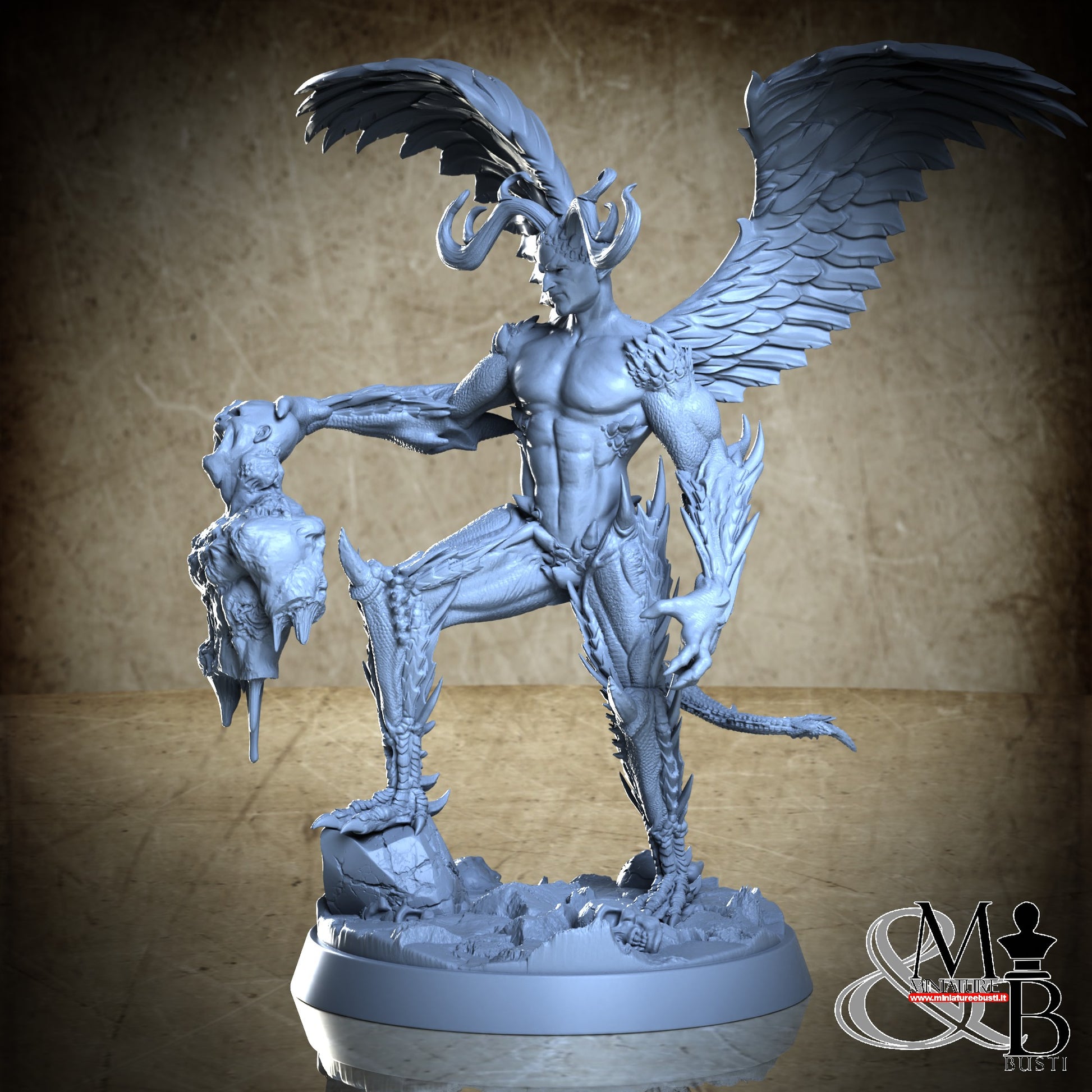 Questa è una MINIATURA. Le miniatura sono modelli pensati per i giochi di ruolo, ad esempio dungeons & Dragons, che poi ridimensioniamo in alto o in basso per le differenti scale. Di solito sono originariamente scolpiti per sistemi a 32mm (dove un uomo standard è alto 32mm dai piedi alla testa). Le proporzioni sono pensate tenendo in considerazione che verranno maneggiate spesso, quindi dettagli come spade e scudi sono particolarmente spessi. La miniatura viene venduta come appare nell'immagine, e dato che alcuni autori non aggiungono una base, se questa è assente nell'immagine significa che non verrà fornita con la miniatura.