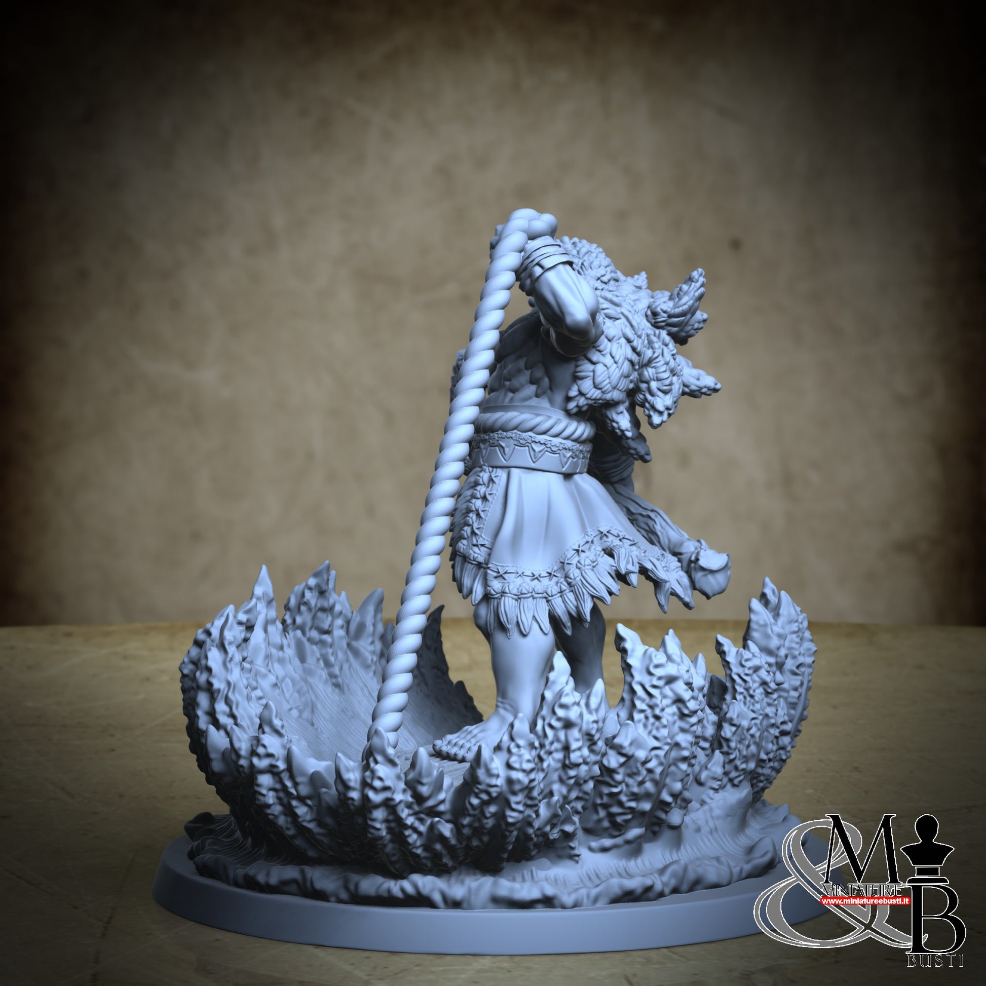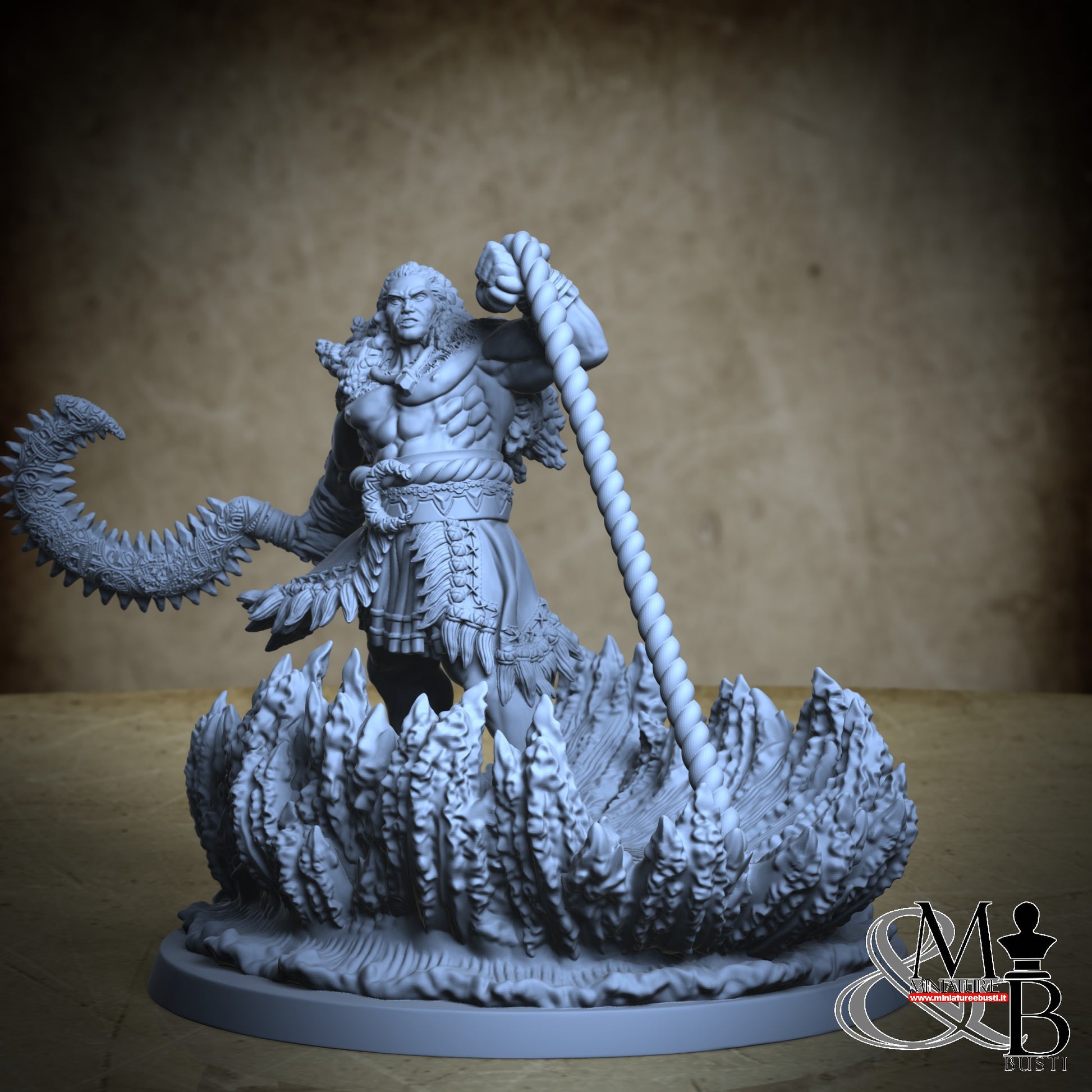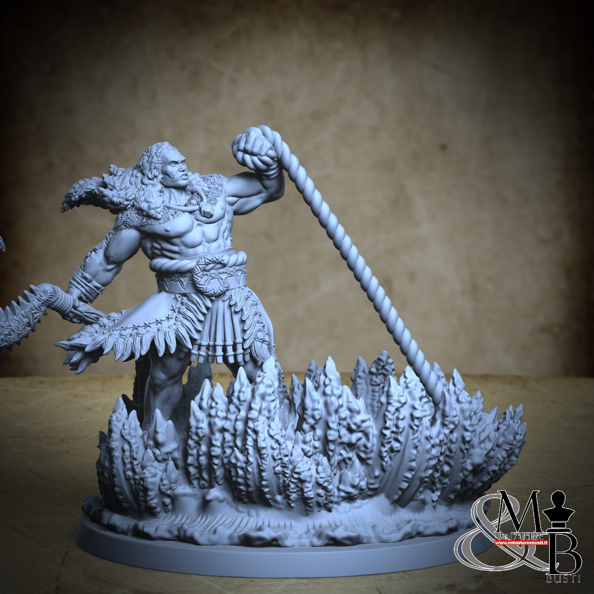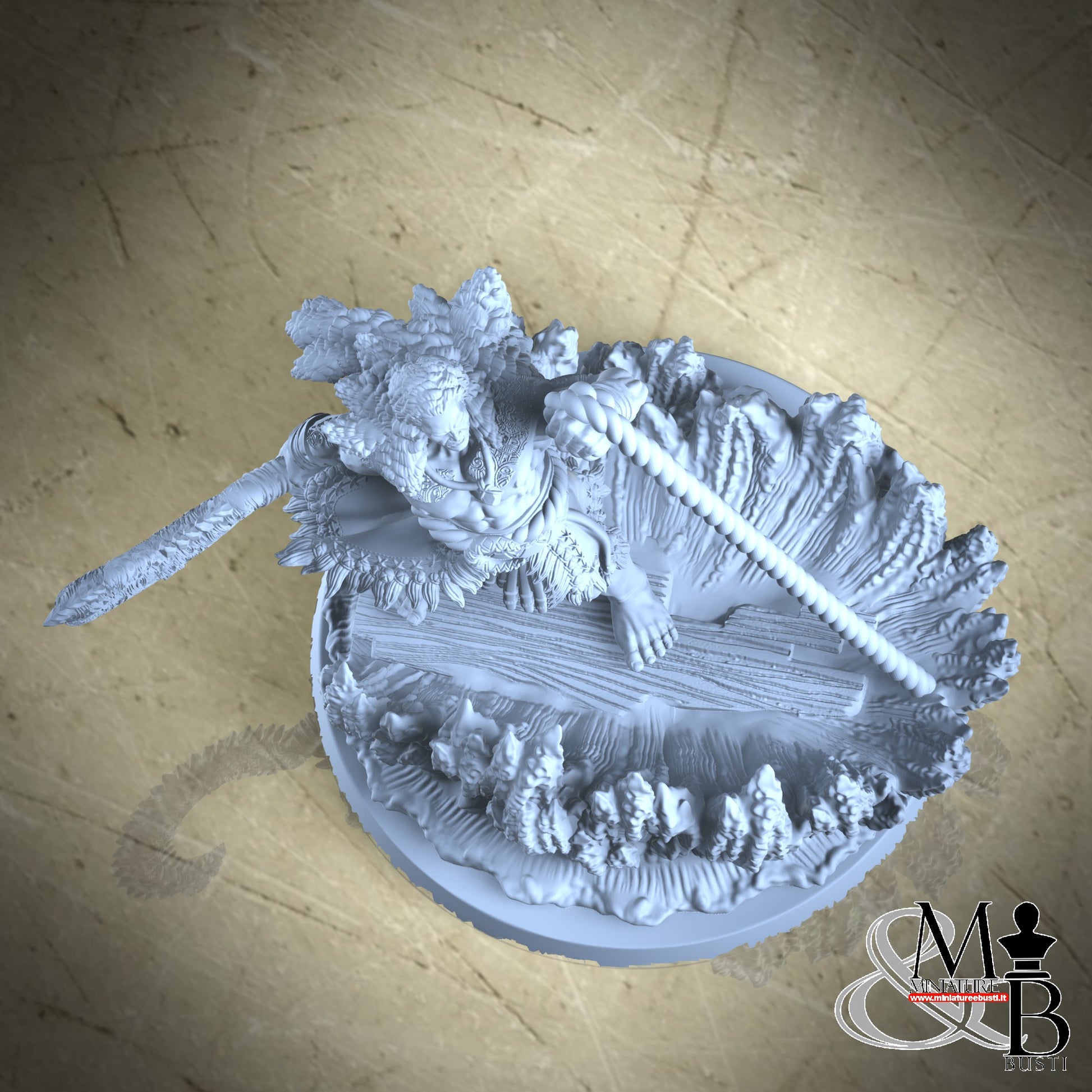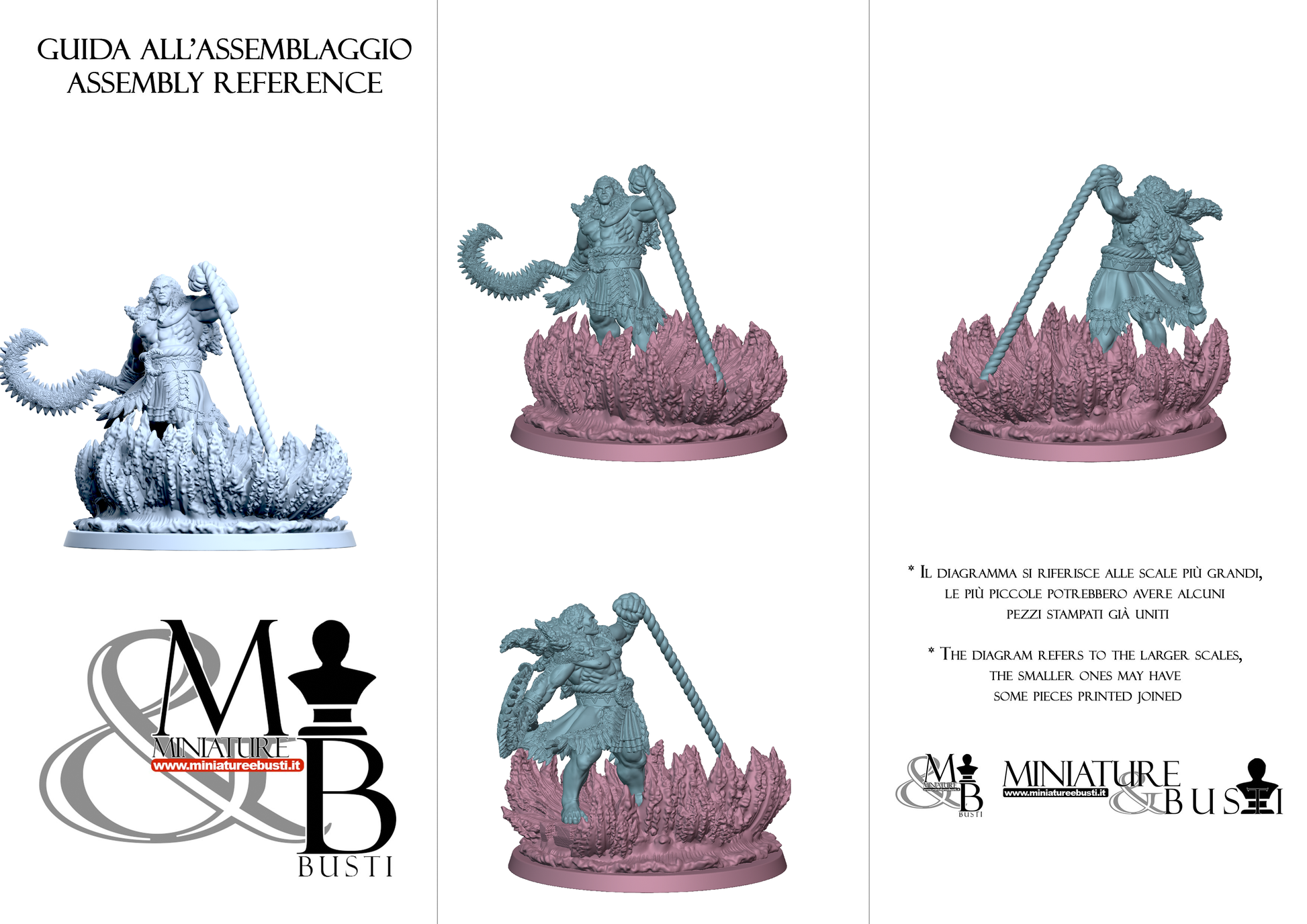 Questa è una MINIATURA. Le miniatura sono modelli pensati per i giochi di ruolo, ad esempio dungeons & Dragons, che poi ridimensioniamo in alto o in basso per le differenti scale. Di solito sono originariamente scolpiti per sistemi a 32mm (dove un uomo standard è alto 32mm dai piedi alla testa). Le proporzioni sono pensate tenendo in considerazione che verranno maneggiate spesso, quindi dettagli come spade e scudi sono particolarmente spessi. La miniatura viene venduta come appare nell'immagine, e dato che alcuni autori non aggiungono una base, se questa è assente nell'immagine significa che non verrà fornita con la miniatura.