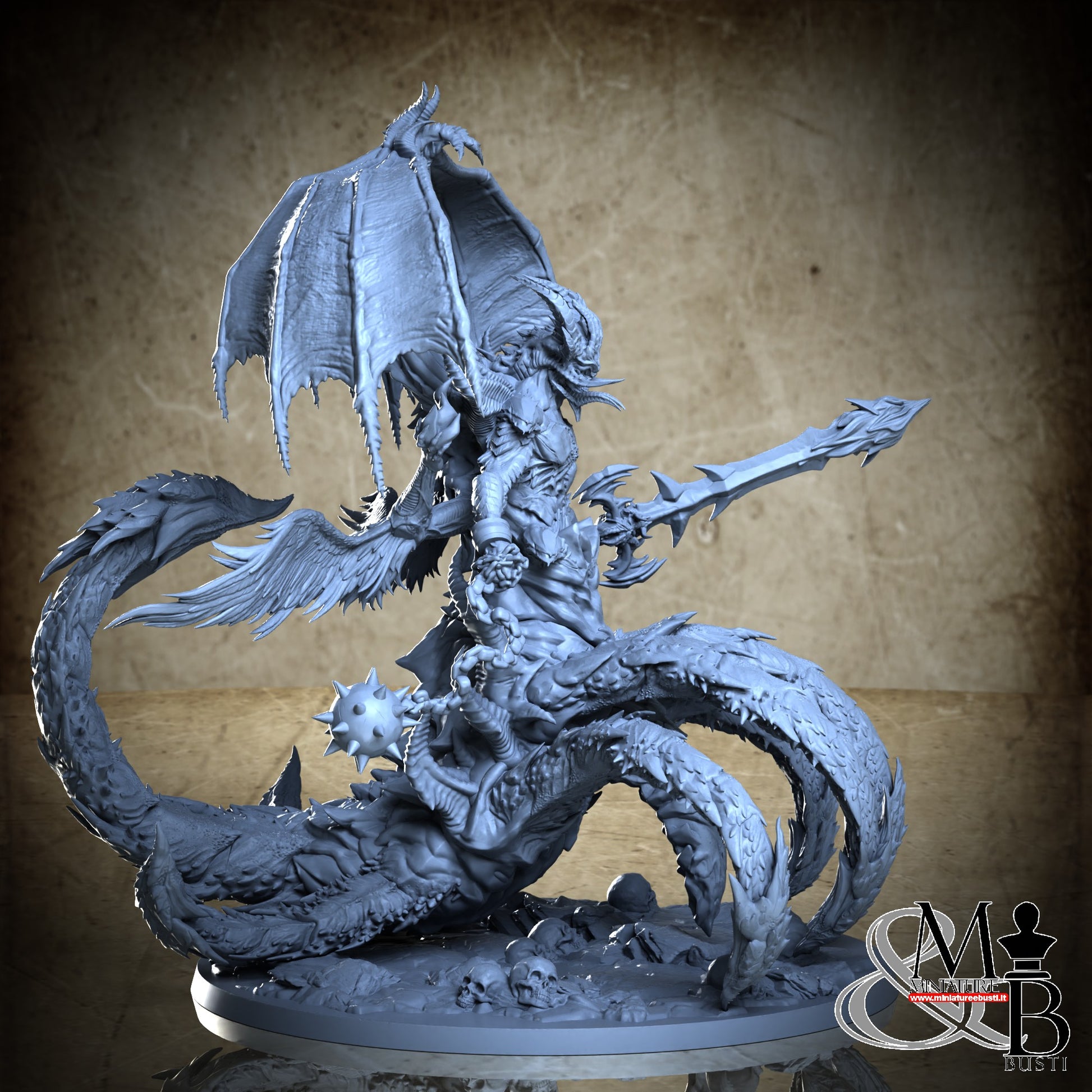 Questa è una MINIATURA. Le miniatura sono modelli pensati per i giochi di ruolo, ad esempio dungeons & Dragons, che poi ridimensioniamo in alto o in basso per le differenti scale. Di solito sono originariamente scolpiti per sistemi a 32mm (dove un uomo standard è alto 32mm dai piedi alla testa). Le proporzioni sono pensate tenendo in considerazione che verranno maneggiate spesso, quindi dettagli come spade e scudi sono particolarmente spessi. La miniatura viene venduta come appare nell'immagine, e dato che alcuni autori non aggiungono una base, se questa è assente nell'immagine significa che non verrà fornita con la miniatura.