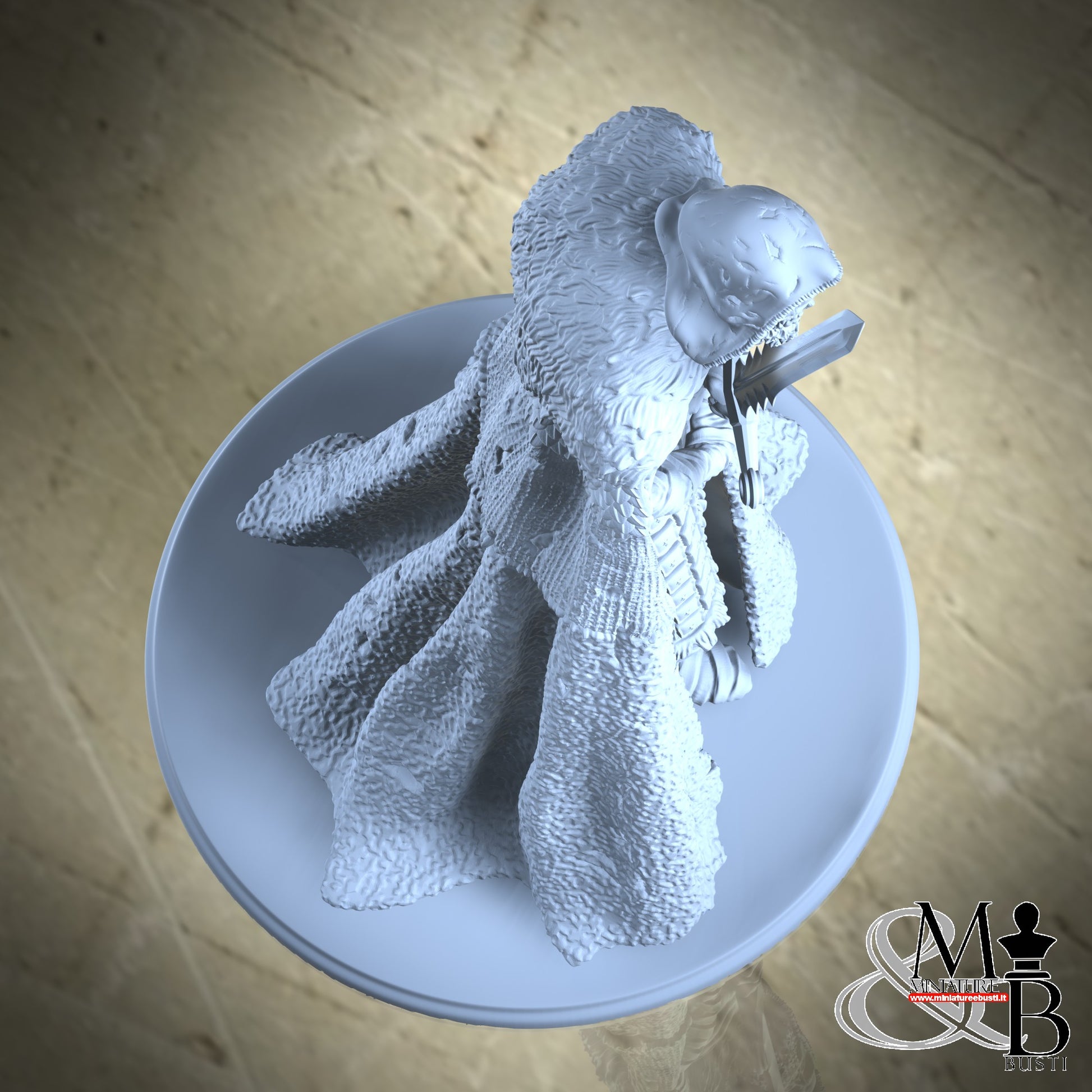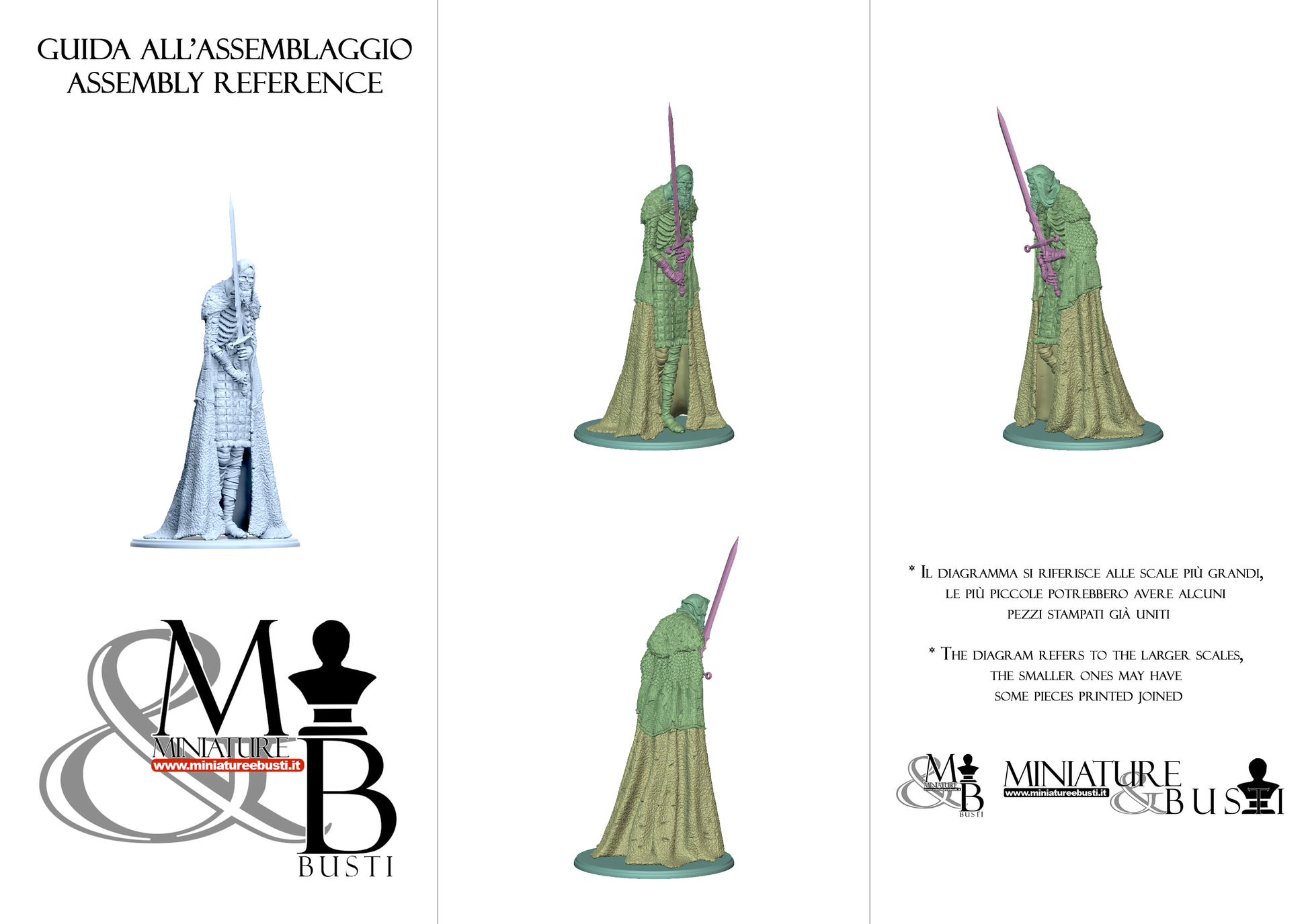 Questa è una STATUA. Le statue sono modelli originariamente scolpiti solitamente in scala 1:12, 1:8 o 1:10, che poi ridimensioniamo in alto o in basso per le differenti scale. Data la grande scala iniziale, nelle scale più piccole i dettagli potrebbero perdersi o spade e altri componenti sottili potrebbero essere molto fragili.