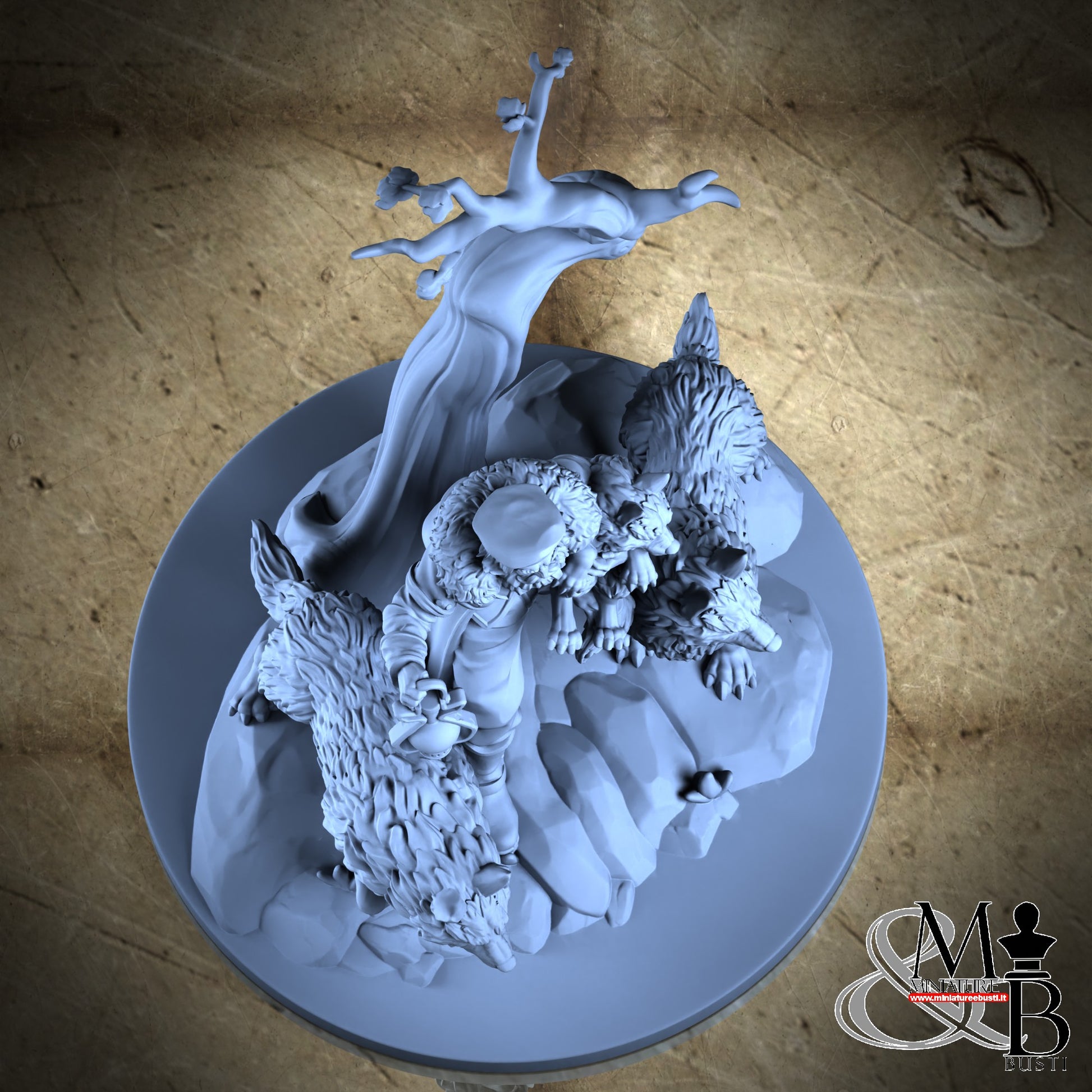 Questa è una MINIATURA. Le miniatura sono modelli pensati per i giochi di ruolo, ad esempio dungeons & Dragons, che poi ridimensioniamo in alto o in basso per le differenti scale. Di solito sono originariamente scolpiti per sistemi a 32mm (dove un uomo standard è alto 32mm dai piedi alla testa). Le proporzioni sono pensate tenendo in considerazione che verranno maneggiate spesso, quindi dettagli come spade e scudi sono particolarmente spessi. La miniatura viene venduta come appare nell'immagine, e dato che alcuni autori non aggiungono una base, se questa è assente nell'immagine significa che non verrà fornita con la miniatura.
