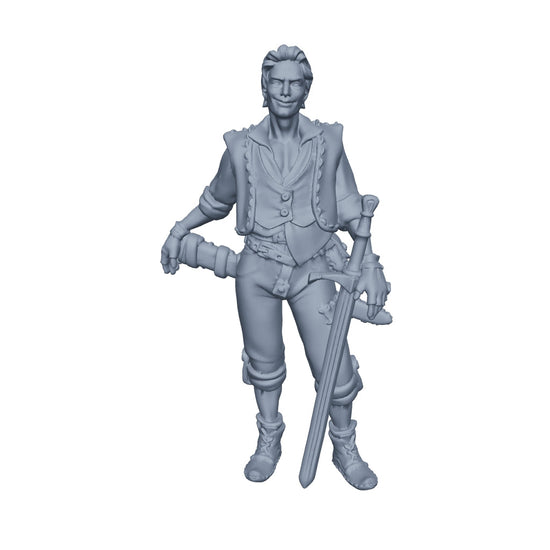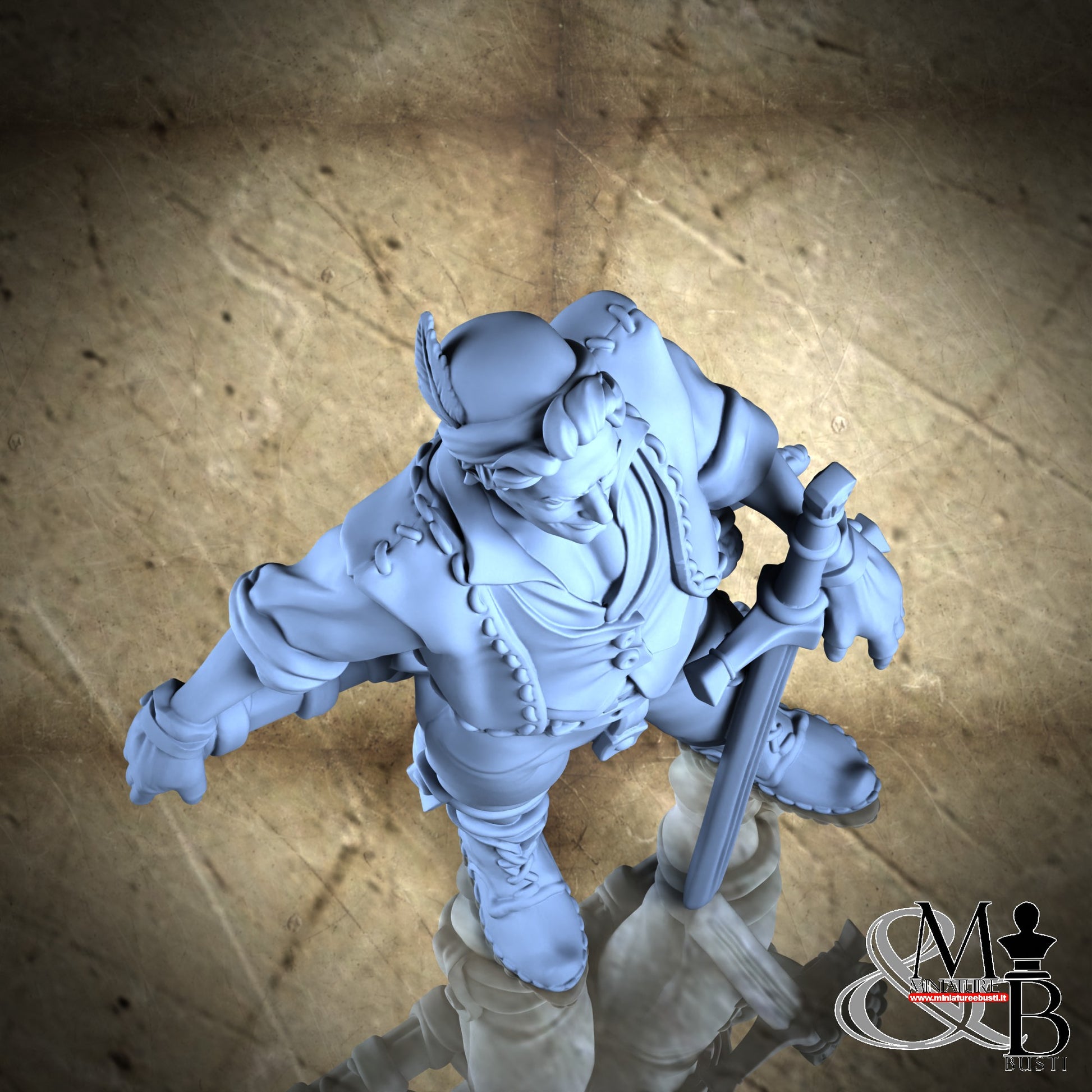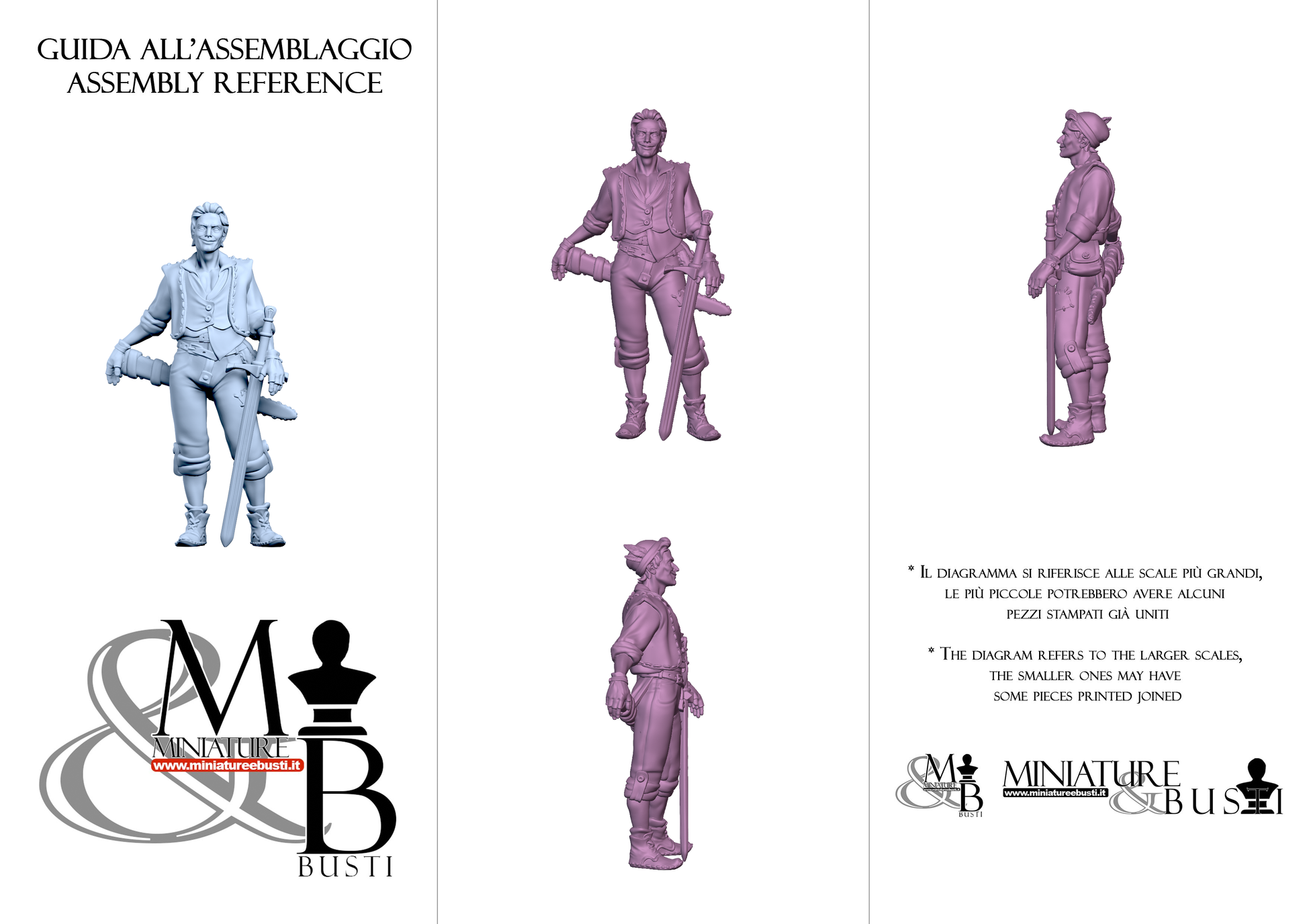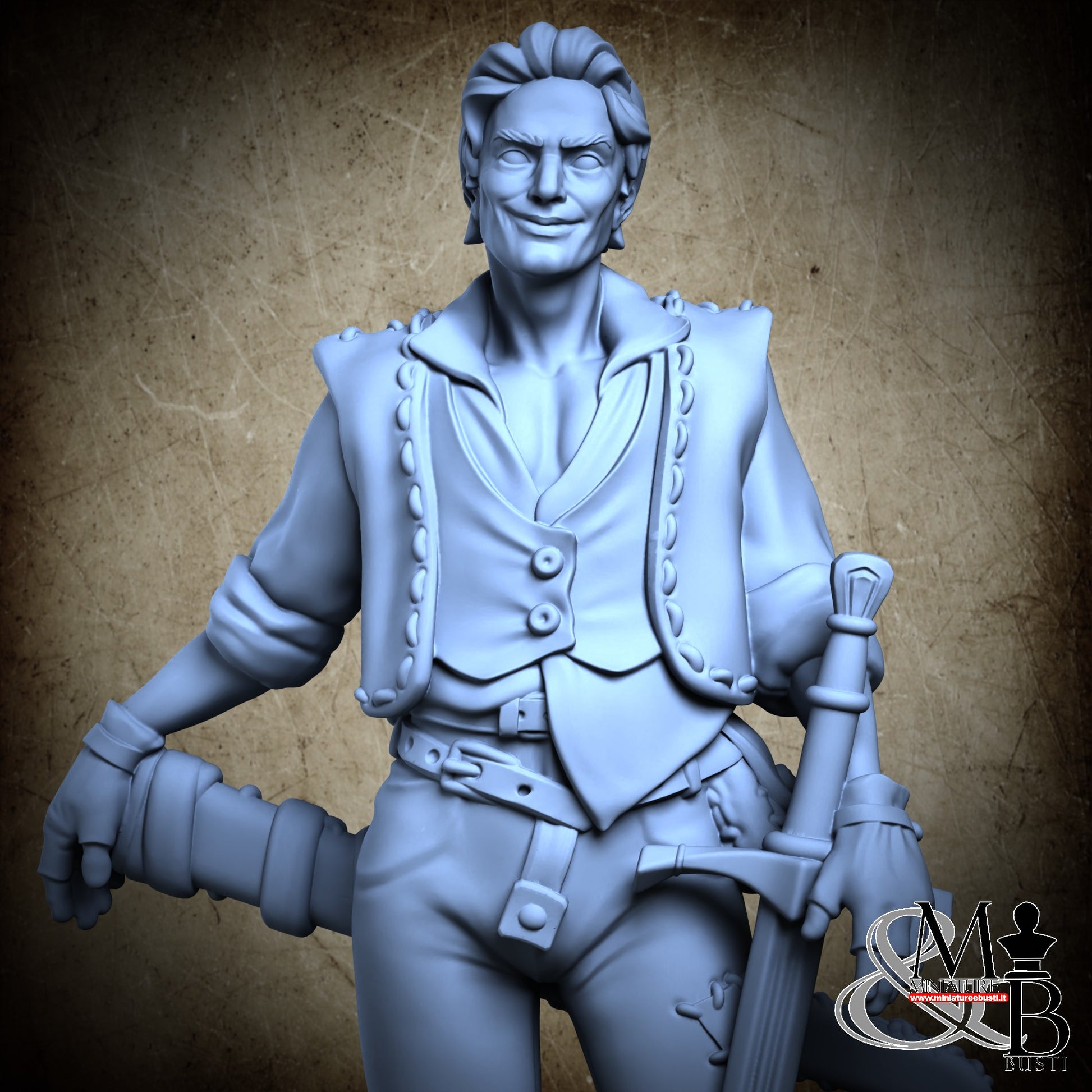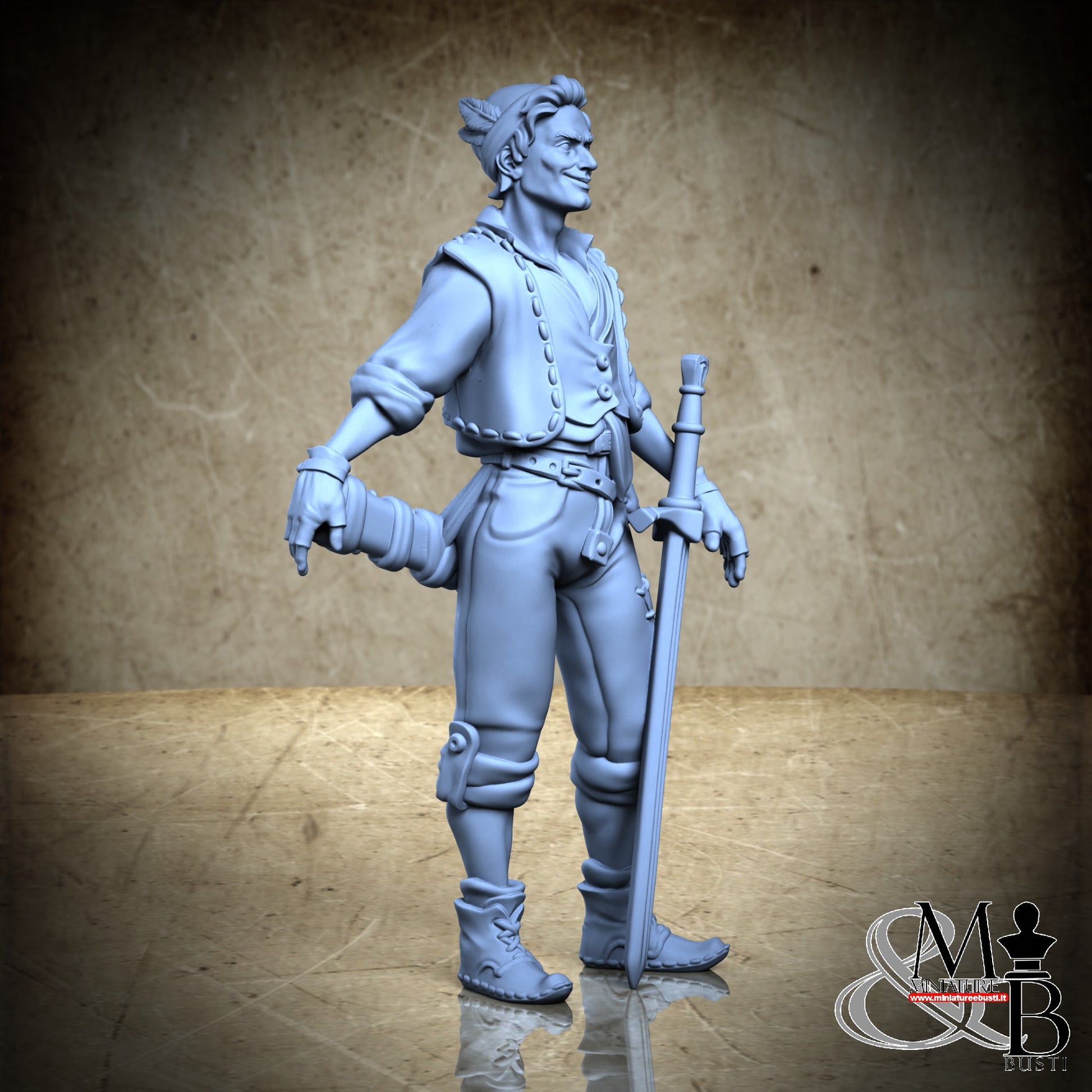 Questa è una MINIATURA. Le miniatura sono modelli pensati per i giochi di ruolo, ad esempio dungeons & Dragons, che poi ridimensioniamo in alto o in basso per le differenti scale. Di solito sono originariamente scolpiti per sistemi a 32mm (dove un uomo standard è alto 32mm dai piedi alla testa). Le proporzioni sono pensate tenendo in considerazione che verranno maneggiate spesso, quindi dettagli come spade e scudi sono particolarmente spessi. La miniatura viene venduta come appare nell'immagine, e dato che alcuni autori non aggiungono una base, se questa è assente nell'immagine significa che non verrà fornita con la miniatura.