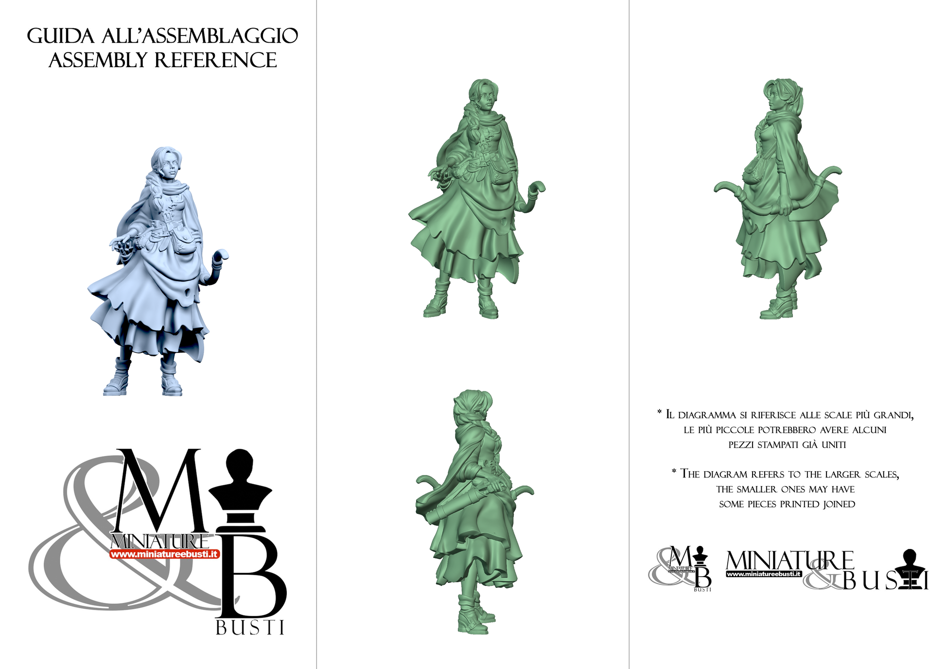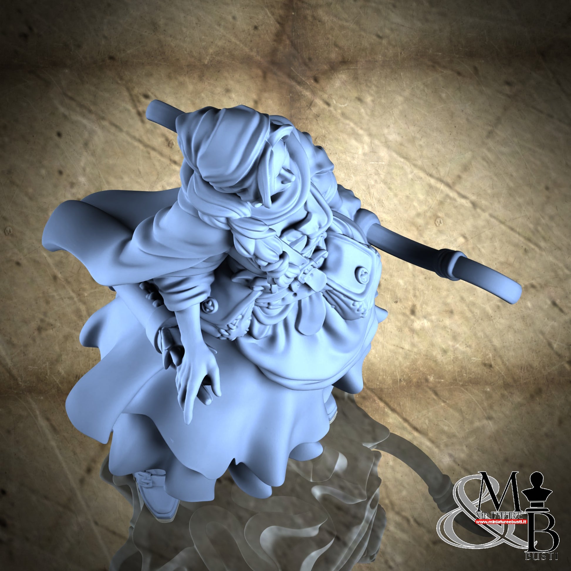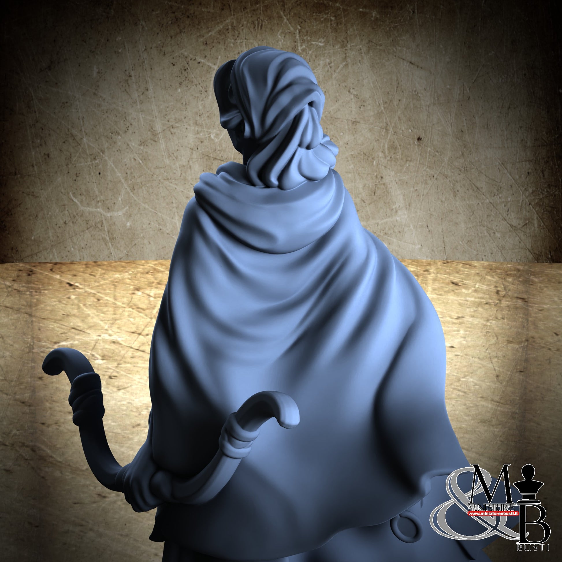 Questa è una MINIATURA. Le miniatura sono modelli pensati per i giochi di ruolo, ad esempio dungeons & Dragons, che poi ridimensioniamo in alto o in basso per le differenti scale. Di solito sono originariamente scolpiti per sistemi a 32mm (dove un uomo standard è alto 32mm dai piedi alla testa). Le proporzioni sono pensate tenendo in considerazione che verranno maneggiate spesso, quindi dettagli come spade e scudi sono particolarmente spessi. La miniatura viene venduta come appare nell'immagine, e dato che alcuni autori non aggiungono una base, se questa è assente nell'immagine significa che non verrà fornita con la miniatura.