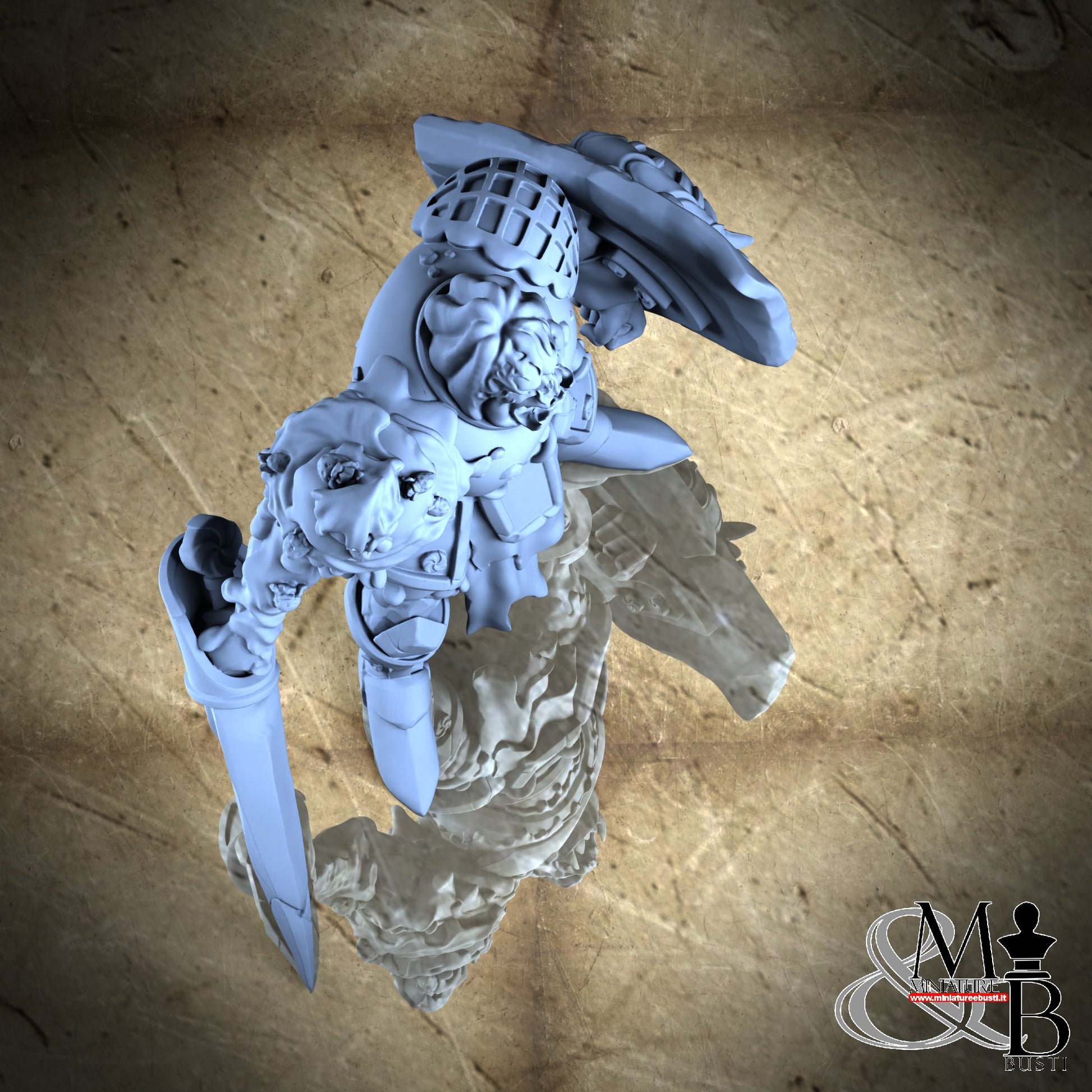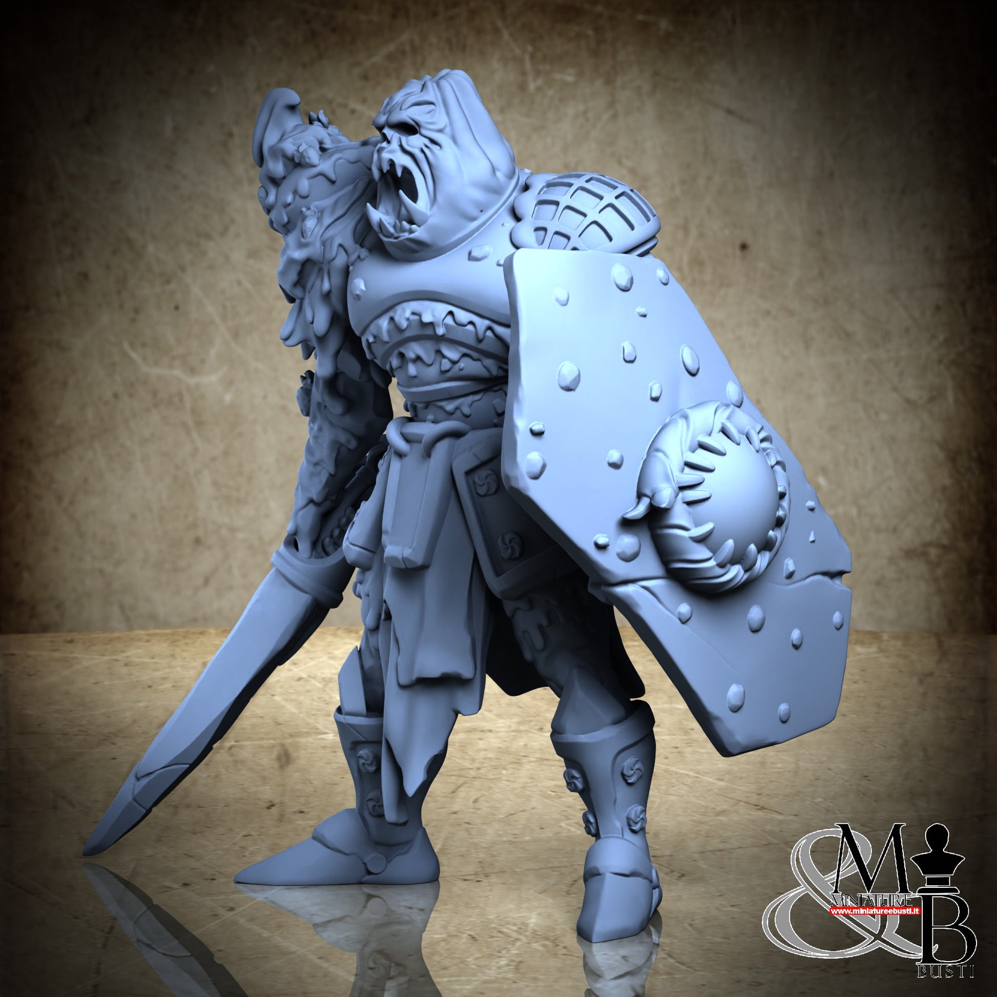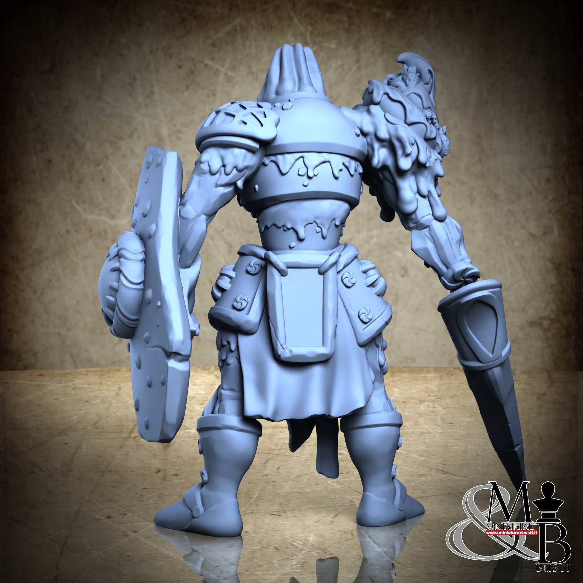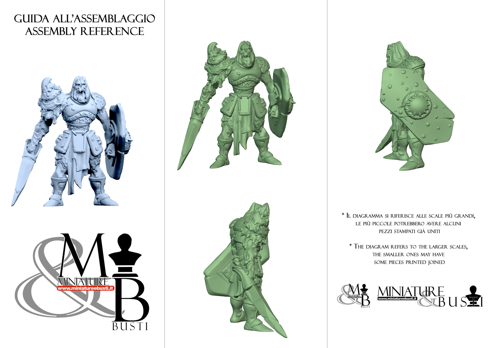 Questa è una MINIATURA. Le miniatura sono modelli pensati per i giochi di ruolo, ad esempio dungeons & Dragons, che poi ridimensioniamo in alto o in basso per le differenti scale. Di solito sono originariamente scolpiti per sistemi a 32mm (dove un uomo standard è alto 32mm dai piedi alla testa). Le proporzioni sono pensate tenendo in considerazione che verranno maneggiate spesso, quindi dettagli come spade e scudi sono particolarmente spessi. La miniatura viene venduta come appare nell'immagine, e dato che alcuni autori non aggiungono una base, se questa è assente nell'immagine significa che non verrà fornita con la miniatura.