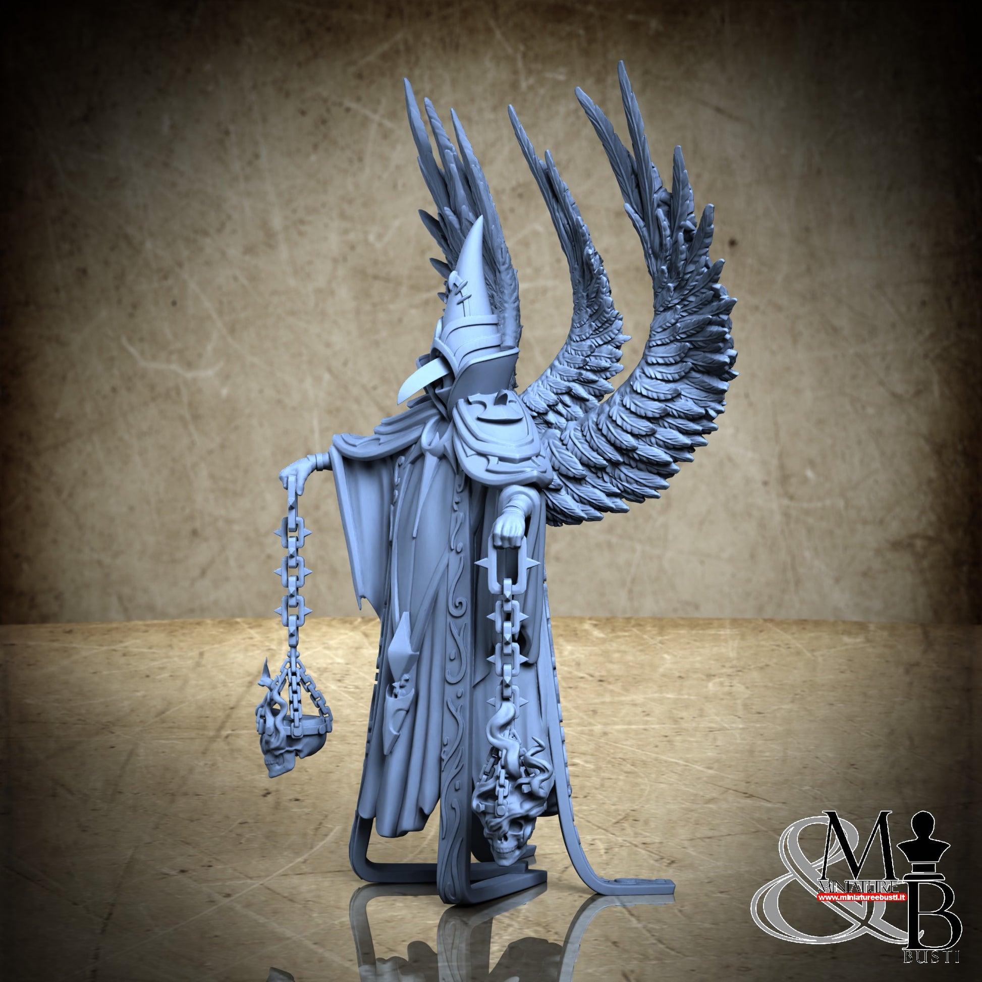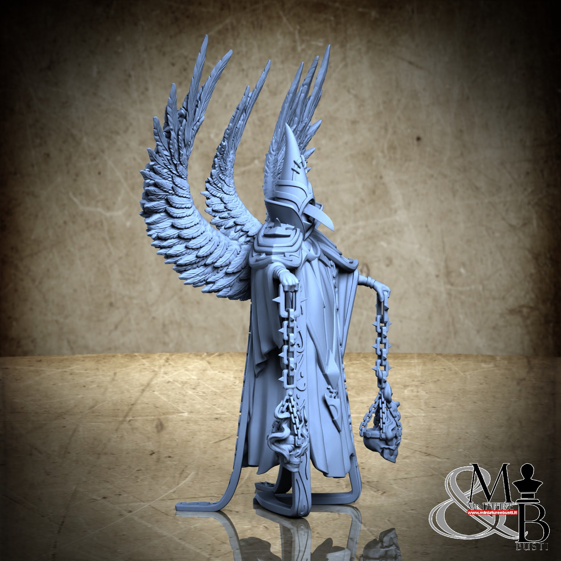 Questa è una MINIATURA. Le miniatura sono modelli pensati per i giochi di ruolo, ad esempio dungeons & Dragons, che poi ridimensioniamo in alto o in basso per le differenti scale. Di solito sono originariamente scolpiti per sistemi a 32mm (dove un uomo standard è alto 32mm dai piedi alla testa). Le proporzioni sono pensate tenendo in considerazione che verranno maneggiate spesso, quindi dettagli come spade e scudi sono particolarmente spessi. La miniatura viene venduta come appare nell'immagine, e dato che alcuni autori non aggiungono una base, se questa è assente nell'immagine significa che non verrà fornita con la miniatura.