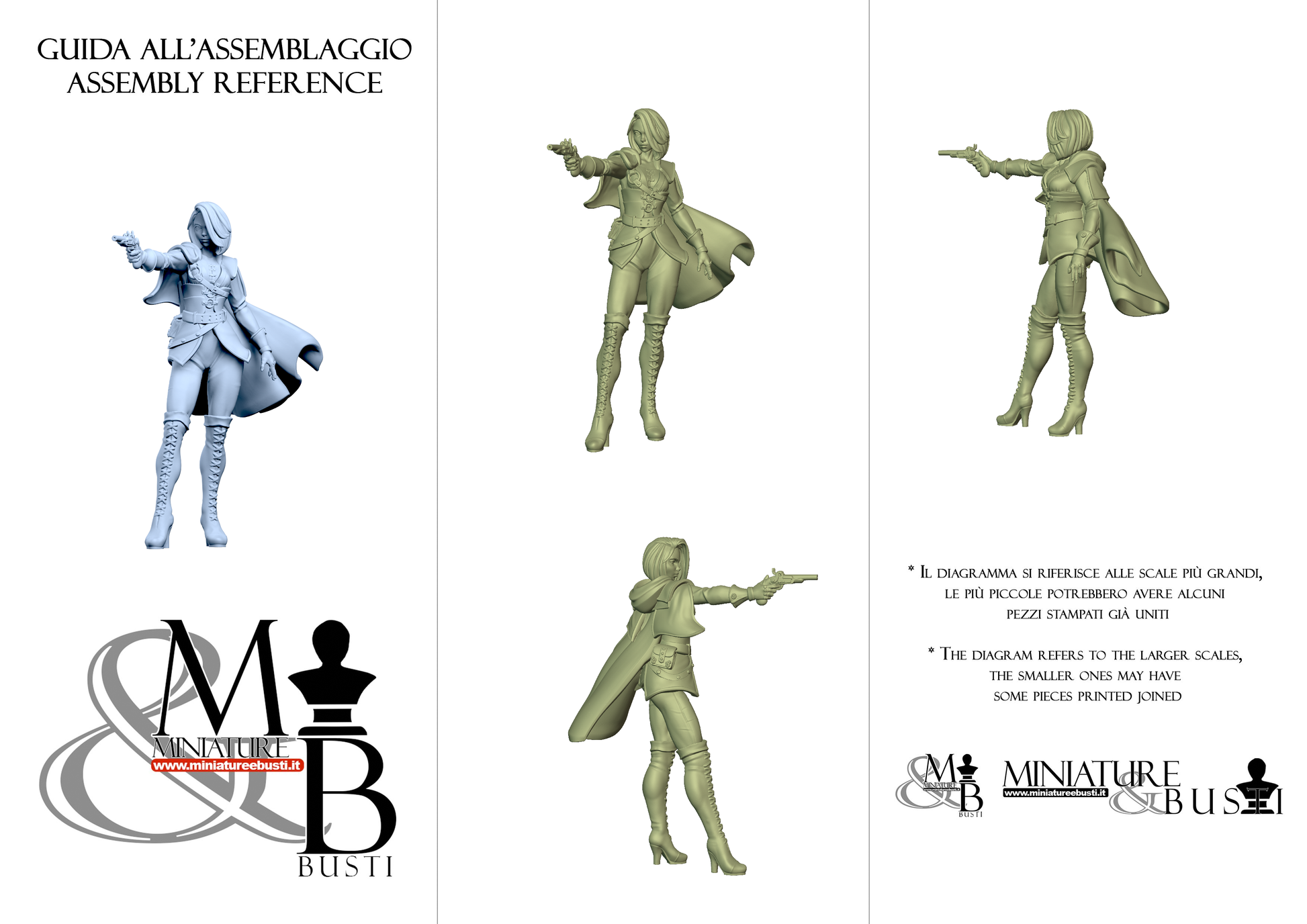 Questa è una MINIATURA. Le miniatura sono modelli pensati per i giochi di ruolo, ad esempio dungeons & Dragons, che poi ridimensioniamo in alto o in basso per le differenti scale. Di solito sono originariamente scolpiti per sistemi a 32mm (dove un uomo standard è alto 32mm dai piedi alla testa). Le proporzioni sono pensate tenendo in considerazione che verranno maneggiate spesso, quindi dettagli come spade e scudi sono particolarmente spessi. La miniatura viene venduta come appare nell'immagine, e dato che alcuni autori non aggiungono una base, se questa è assente nell'immagine significa che non verrà fornita con la miniatura.