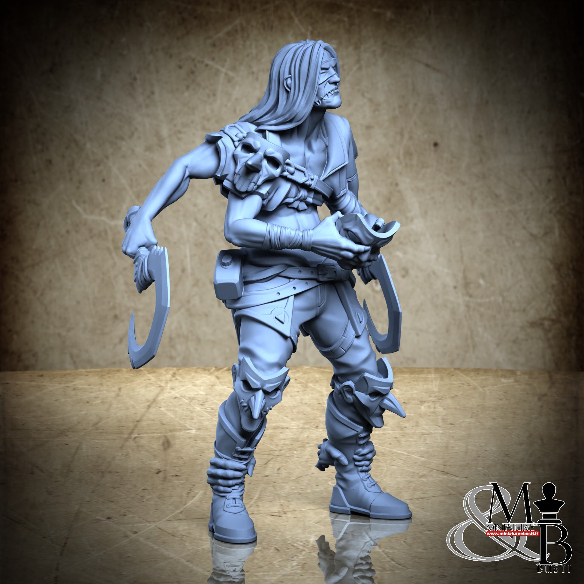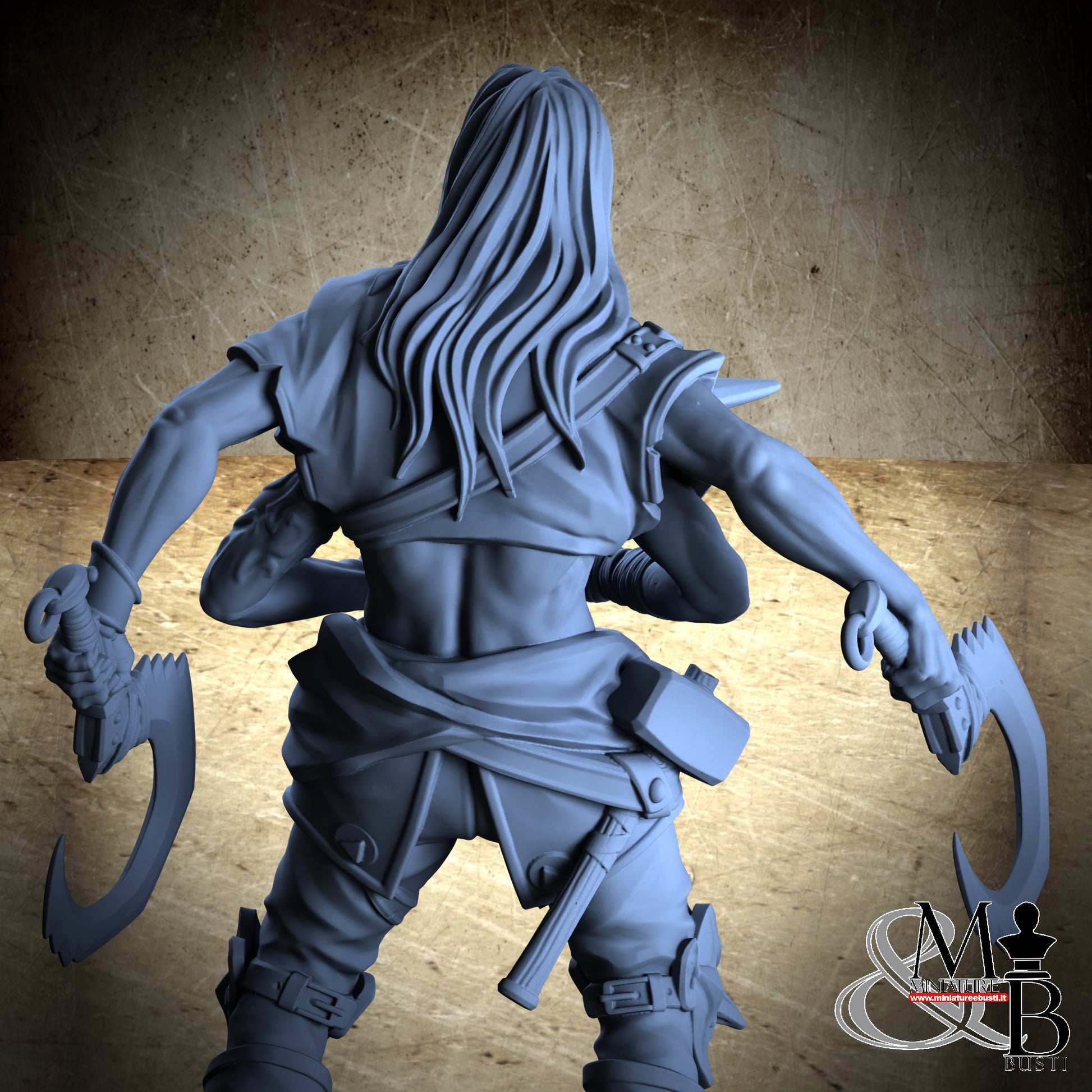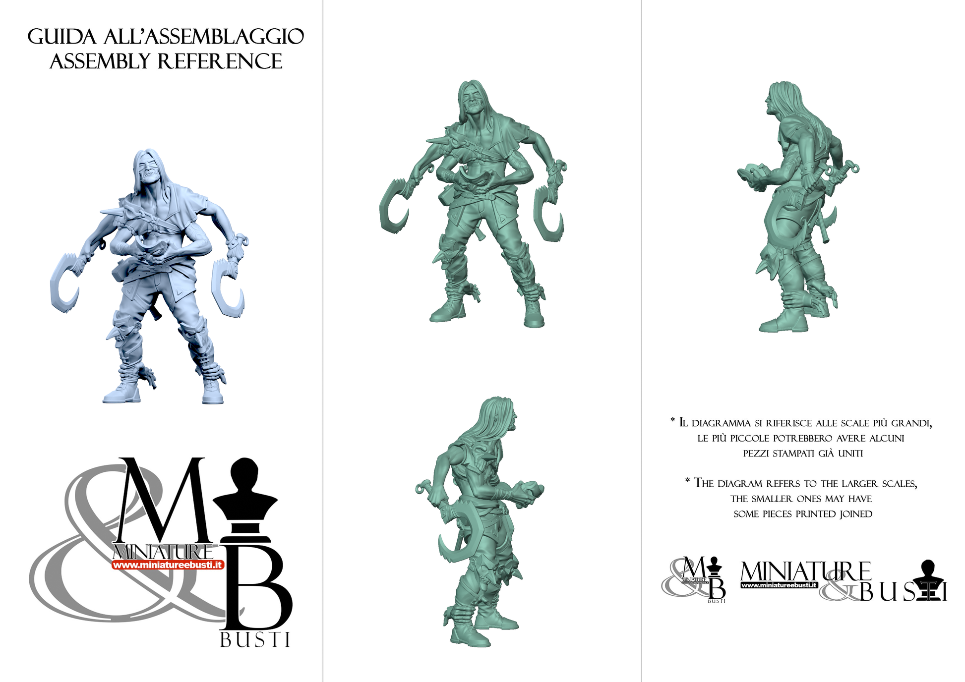 Questa è una MINIATURA. Le miniatura sono modelli pensati per i giochi di ruolo, ad esempio dungeons & Dragons, che poi ridimensioniamo in alto o in basso per le differenti scale. Di solito sono originariamente scolpiti per sistemi a 32mm (dove un uomo standard è alto 32mm dai piedi alla testa). Le proporzioni sono pensate tenendo in considerazione che verranno maneggiate spesso, quindi dettagli come spade e scudi sono particolarmente spessi. La miniatura viene venduta come appare nell'immagine, e dato che alcuni autori non aggiungono una base, se questa è assente nell'immagine significa che non verrà fornita con la miniatura.