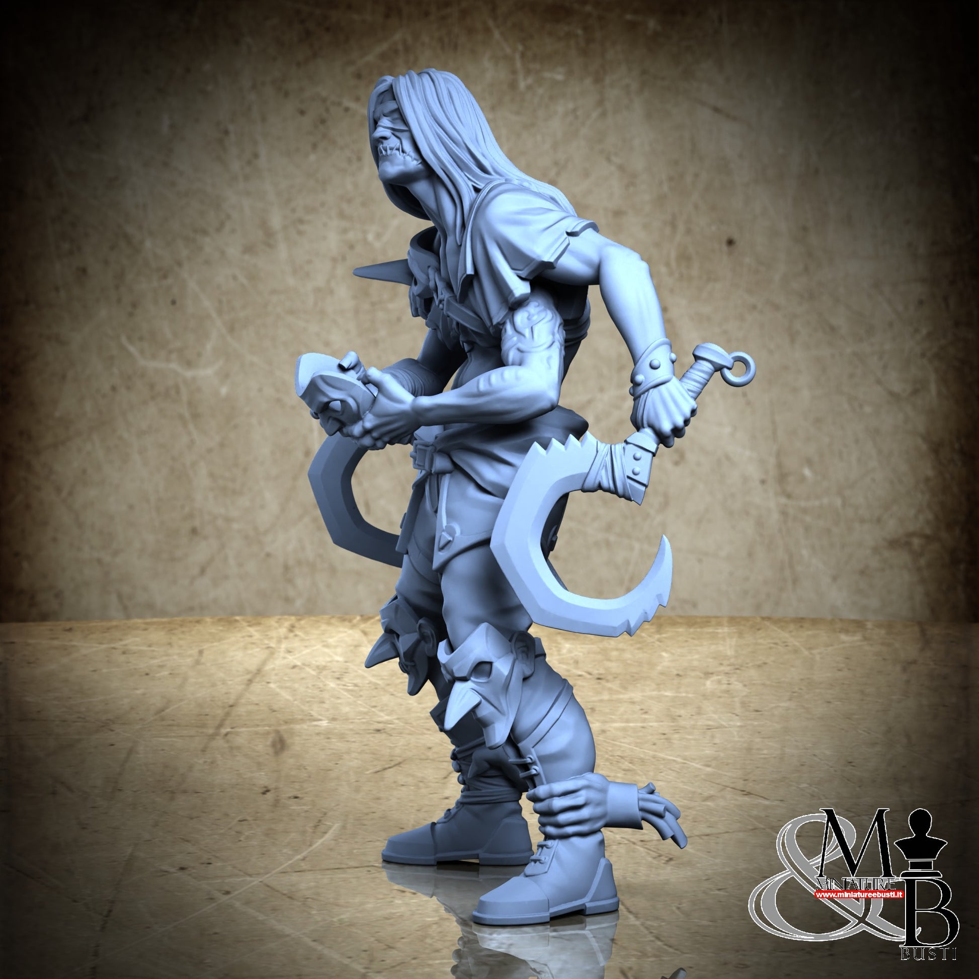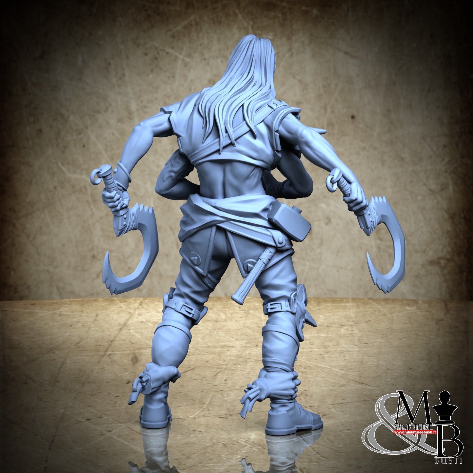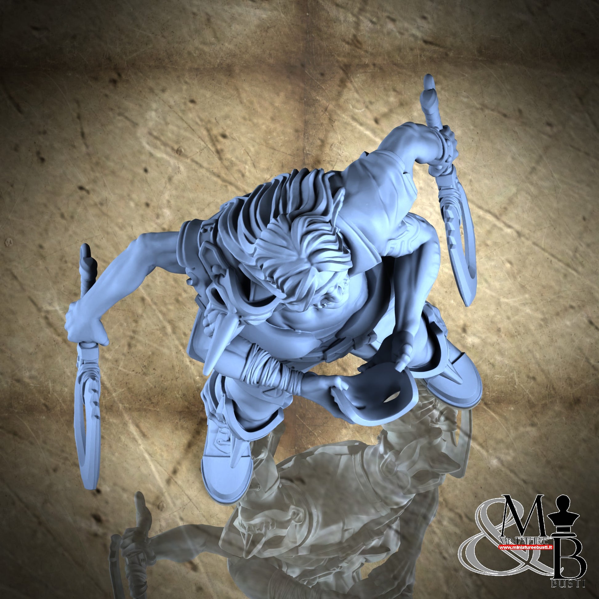 Questa è una MINIATURA. Le miniatura sono modelli pensati per i giochi di ruolo, ad esempio dungeons & Dragons, che poi ridimensioniamo in alto o in basso per le differenti scale. Di solito sono originariamente scolpiti per sistemi a 32mm (dove un uomo standard è alto 32mm dai piedi alla testa). Le proporzioni sono pensate tenendo in considerazione che verranno maneggiate spesso, quindi dettagli come spade e scudi sono particolarmente spessi. La miniatura viene venduta come appare nell'immagine, e dato che alcuni autori non aggiungono una base, se questa è assente nell'immagine significa che non verrà fornita con la miniatura.