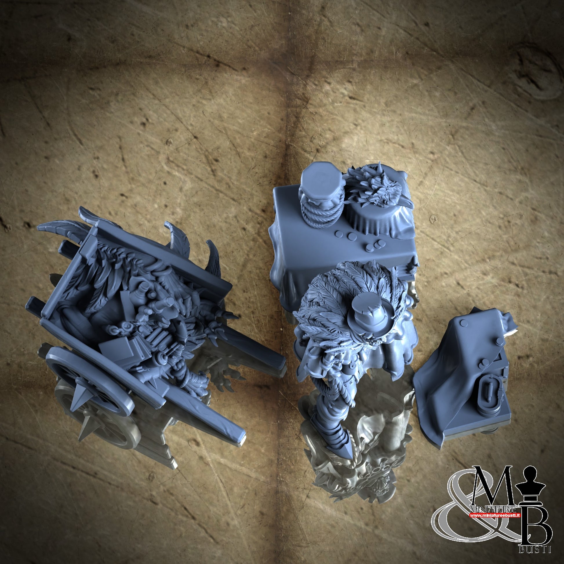 Questa è una MINIATURA. Le miniatura sono modelli pensati per i giochi di ruolo, ad esempio dungeons & Dragons, che poi ridimensioniamo in alto o in basso per le differenti scale. Di solito sono originariamente scolpiti per sistemi a 32mm (dove un uomo standard è alto 32mm dai piedi alla testa). Le proporzioni sono pensate tenendo in considerazione che verranno maneggiate spesso, quindi dettagli come spade e scudi sono particolarmente spessi. La miniatura viene venduta come appare nell'immagine, e dato che alcuni autori non aggiungono una base, se questa è assente nell'immagine significa che non verrà fornita con la miniatura.