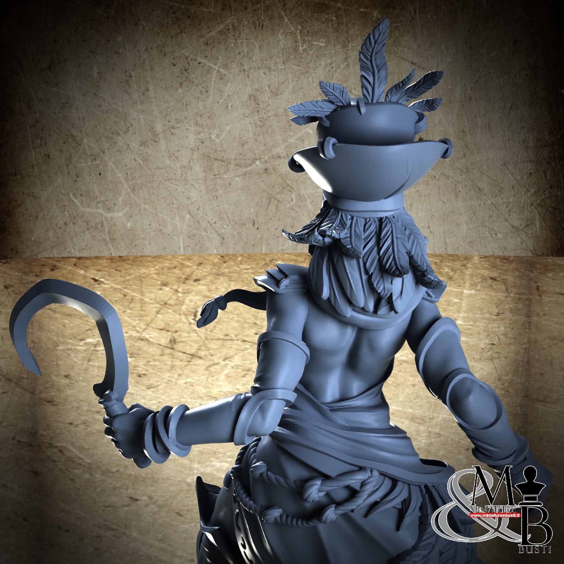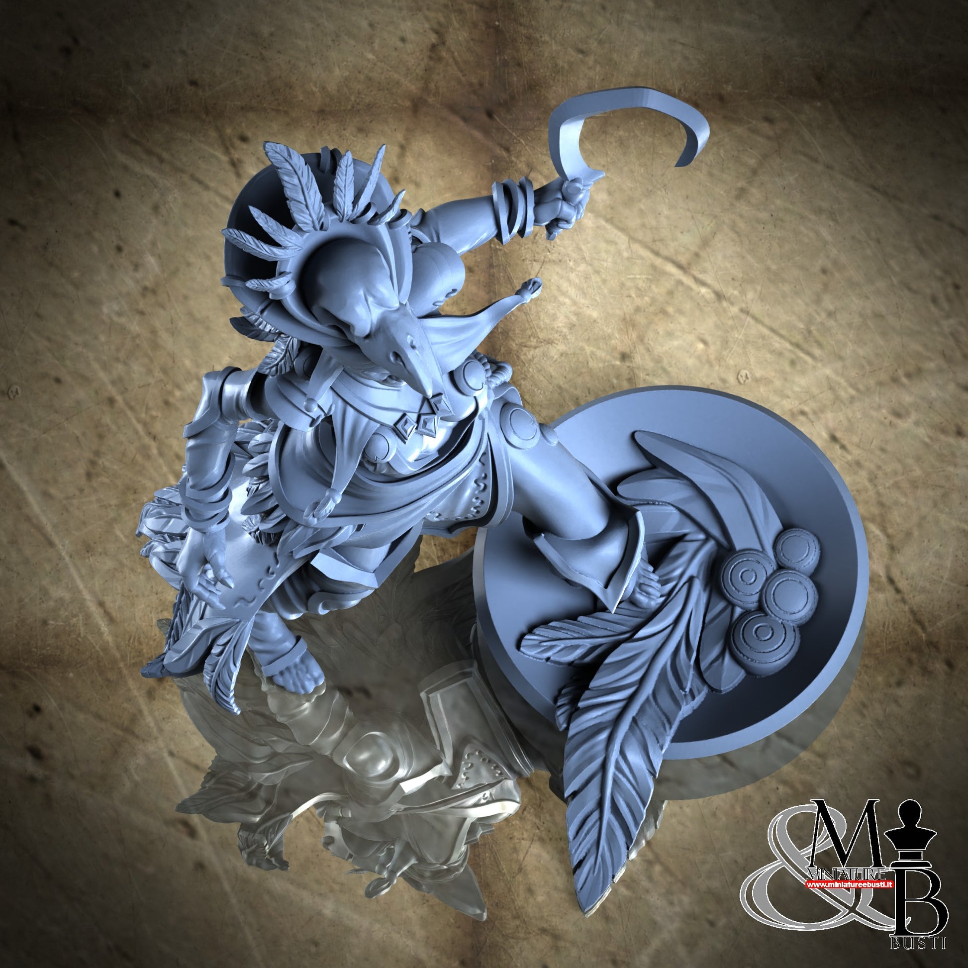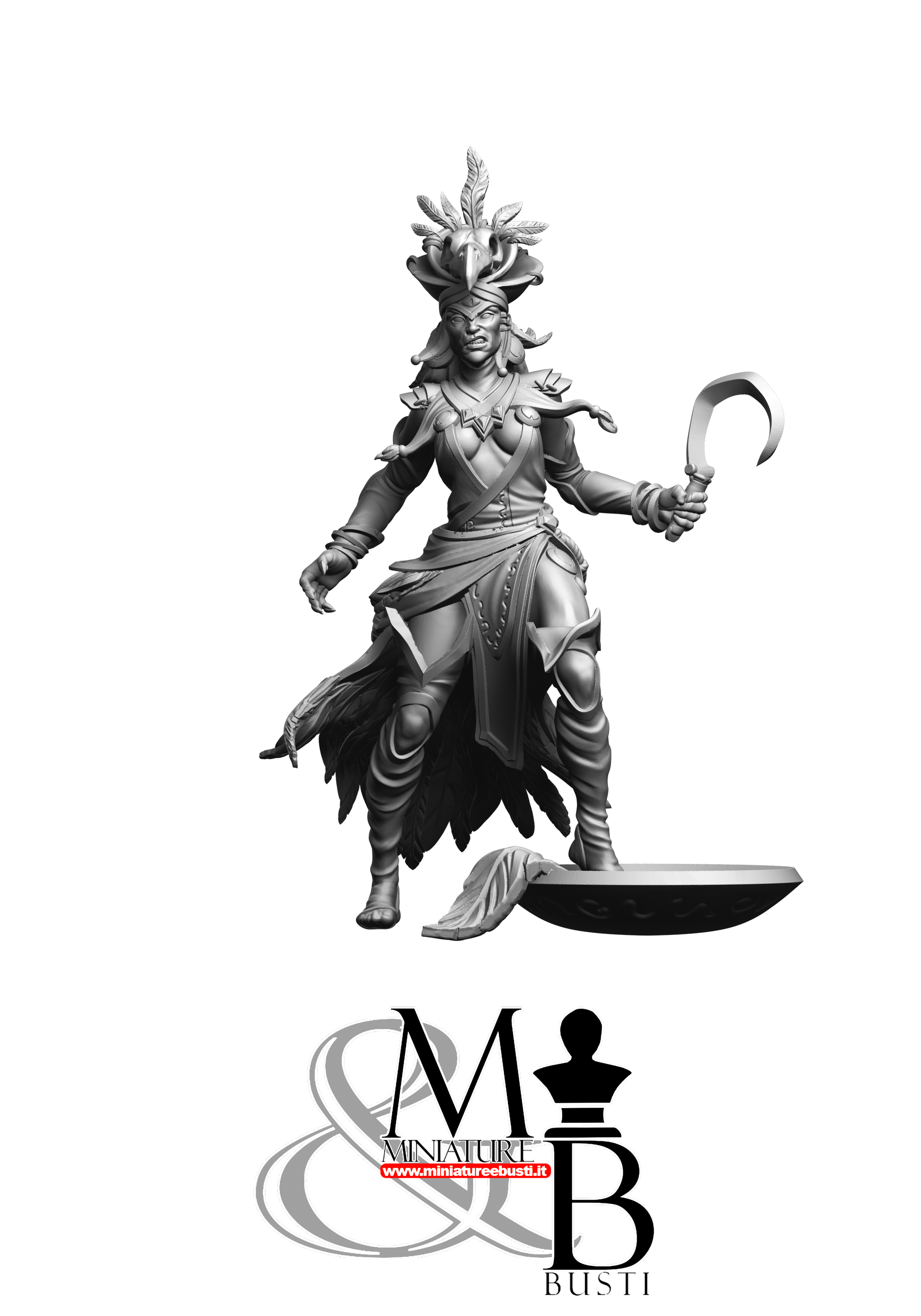 Questa è una MINIATURA. Le miniatura sono modelli pensati per i giochi di ruolo, ad esempio dungeons & Dragons, che poi ridimensioniamo in alto o in basso per le differenti scale. Di solito sono originariamente scolpiti per sistemi a 32mm (dove un uomo standard è alto 32mm dai piedi alla testa). Le proporzioni sono pensate tenendo in considerazione che verranno maneggiate spesso, quindi dettagli come spade e scudi sono particolarmente spessi. La miniatura viene venduta come appare nell'immagine, e dato che alcuni autori non aggiungono una base, se questa è assente nell'immagine significa che non verrà fornita con la miniatura.