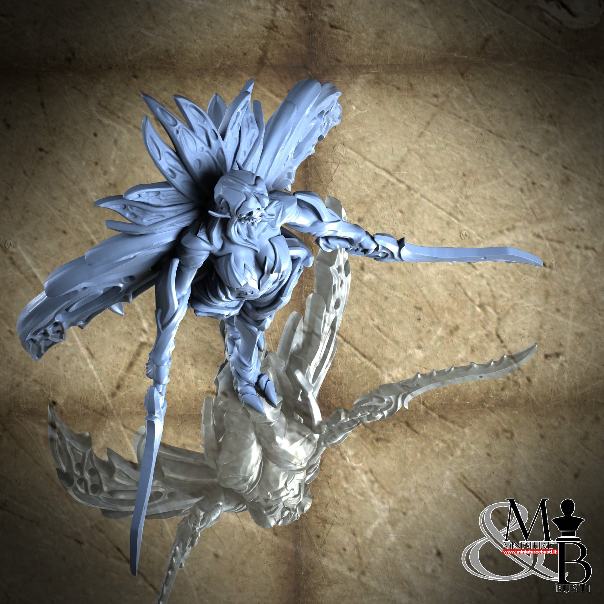 Questa è una MINIATURA. Le miniatura sono modelli pensati per i giochi di ruolo, ad esempio dungeons & Dragons, che poi ridimensioniamo in alto o in basso per le differenti scale. Di solito sono originariamente scolpiti per sistemi a 32mm (dove un uomo standard è alto 32mm dai piedi alla testa). Le proporzioni sono pensate tenendo in considerazione che verranno maneggiate spesso, quindi dettagli come spade e scudi sono particolarmente spessi. La miniatura viene venduta come appare nell'immagine, e dato che alcuni autori non aggiungono una base, se questa è assente nell'immagine significa che non verrà fornita con la miniatura.