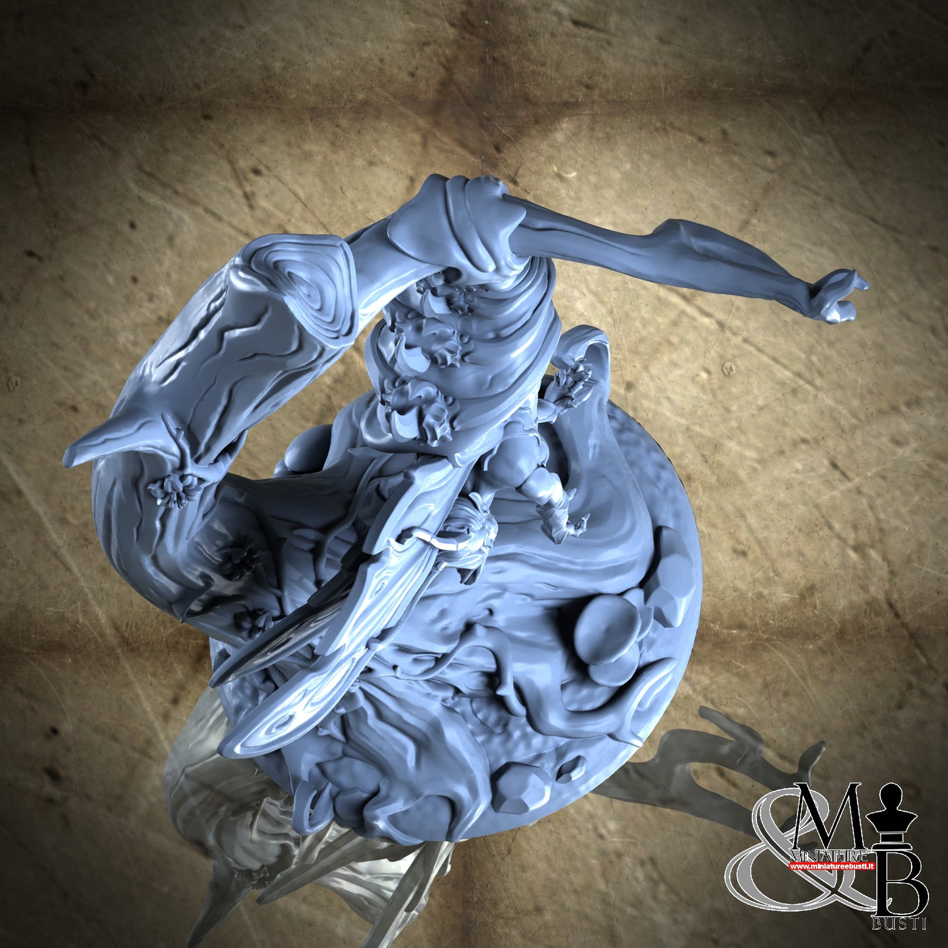 Questa è una MINIATURA. Le miniatura sono modelli pensati per i giochi di ruolo, ad esempio dungeons & Dragons, che poi ridimensioniamo in alto o in basso per le differenti scale. Di solito sono originariamente scolpiti per sistemi a 32mm (dove un uomo standard è alto 32mm dai piedi alla testa). Le proporzioni sono pensate tenendo in considerazione che verranno maneggiate spesso, quindi dettagli come spade e scudi sono particolarmente spessi. La miniatura viene venduta come appare nell'immagine, e dato che alcuni autori non aggiungono una base, se questa è assente nell'immagine significa che non verrà fornita con la miniatura.