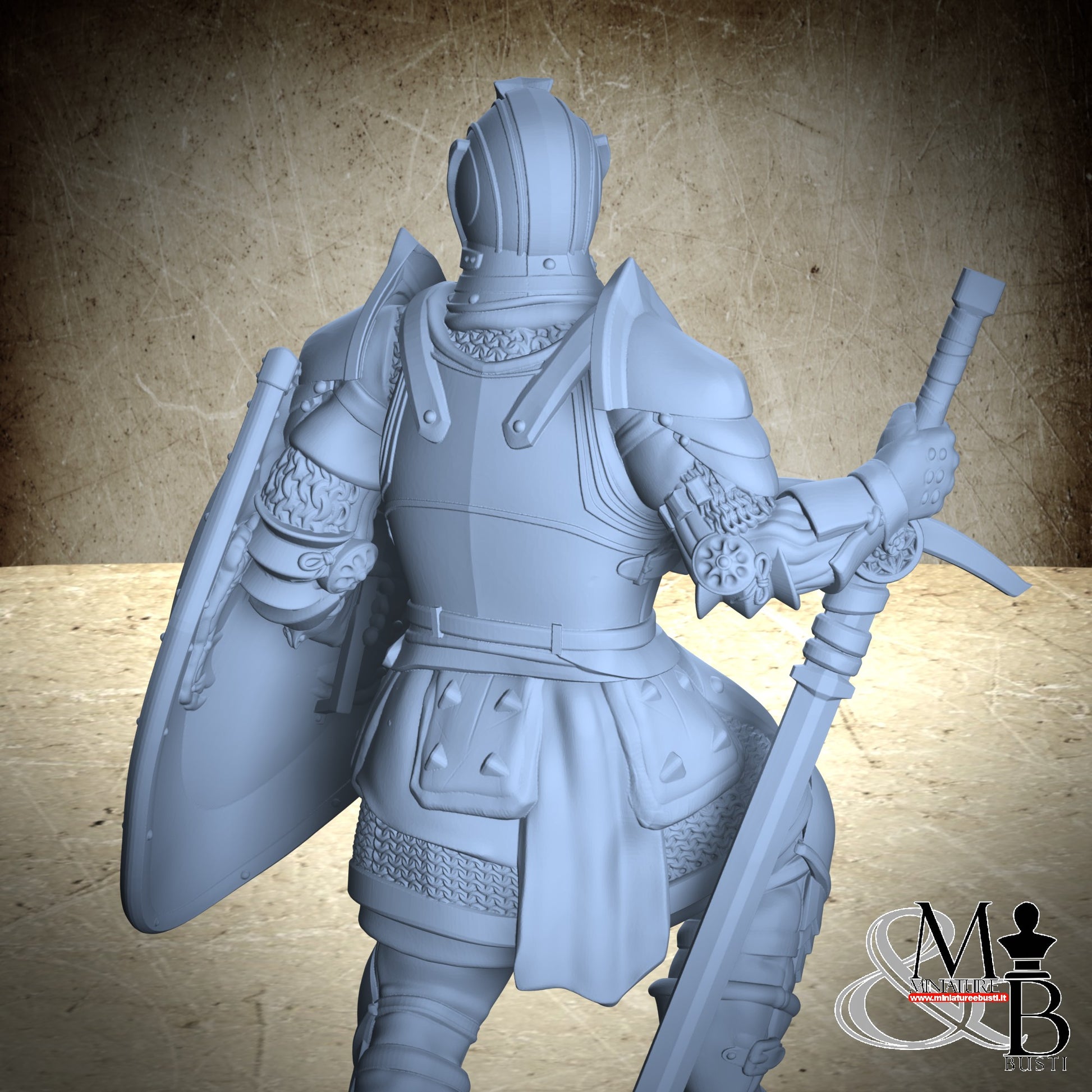 Questa è una MINIATURA. Le miniatura sono modelli pensati per i giochi di ruolo, ad esempio dungeons & Dragons, che poi ridimensioniamo in alto o in basso per le differenti scale. Di solito sono originariamente scolpiti per sistemi a 32mm (dove un uomo standard è alto 32mm dai piedi alla testa). Le proporzioni sono pensate tenendo in considerazione che verranno maneggiate spesso, quindi dettagli come spade e scudi sono particolarmente spessi. La miniatura viene venduta come appare nell'immagine, e dato che alcuni autori non aggiungono una base, se questa è assente nell'immagine significa che non verrà fornita con la miniatura.