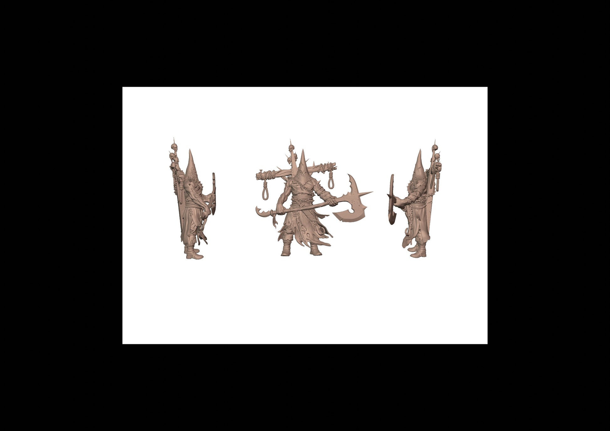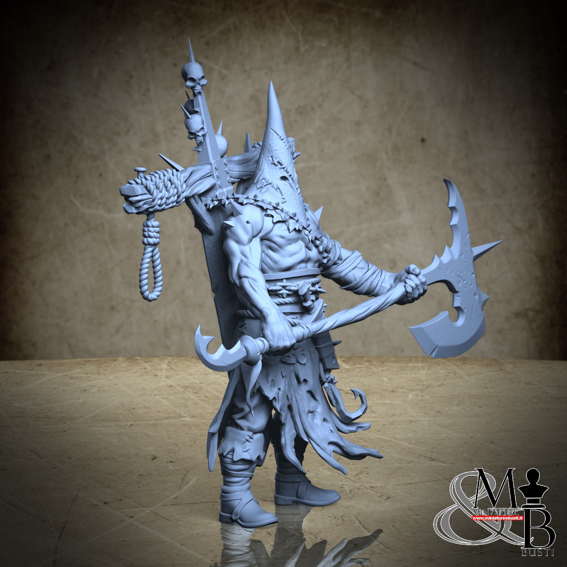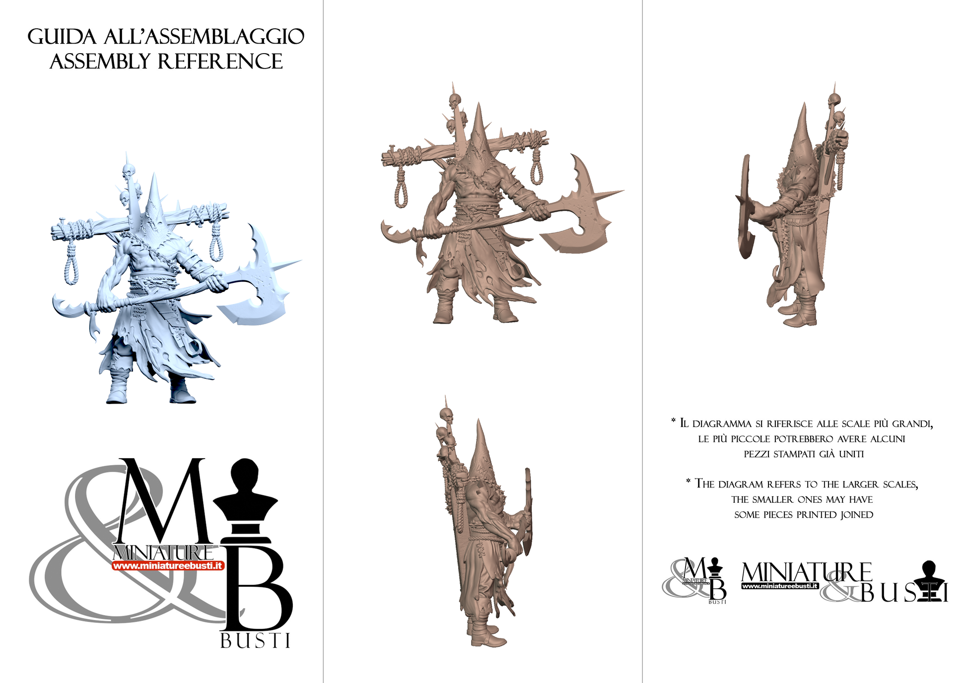 Questa è una MINIATURA. Le miniatura sono modelli pensati per i giochi di ruolo, ad esempio dungeons & Dragons, che poi ridimensioniamo in alto o in basso per le differenti scale. Di solito sono originariamente scolpiti per sistemi a 32mm (dove un uomo standard è alto 32mm dai piedi alla testa). Le proporzioni sono pensate tenendo in considerazione che verranno maneggiate spesso, quindi dettagli come spade e scudi sono particolarmente spessi. La miniatura viene venduta come appare nell'immagine, e dato che alcuni autori non aggiungono una base, se questa è assente nell'immagine significa che non verrà fornita con la miniatura.