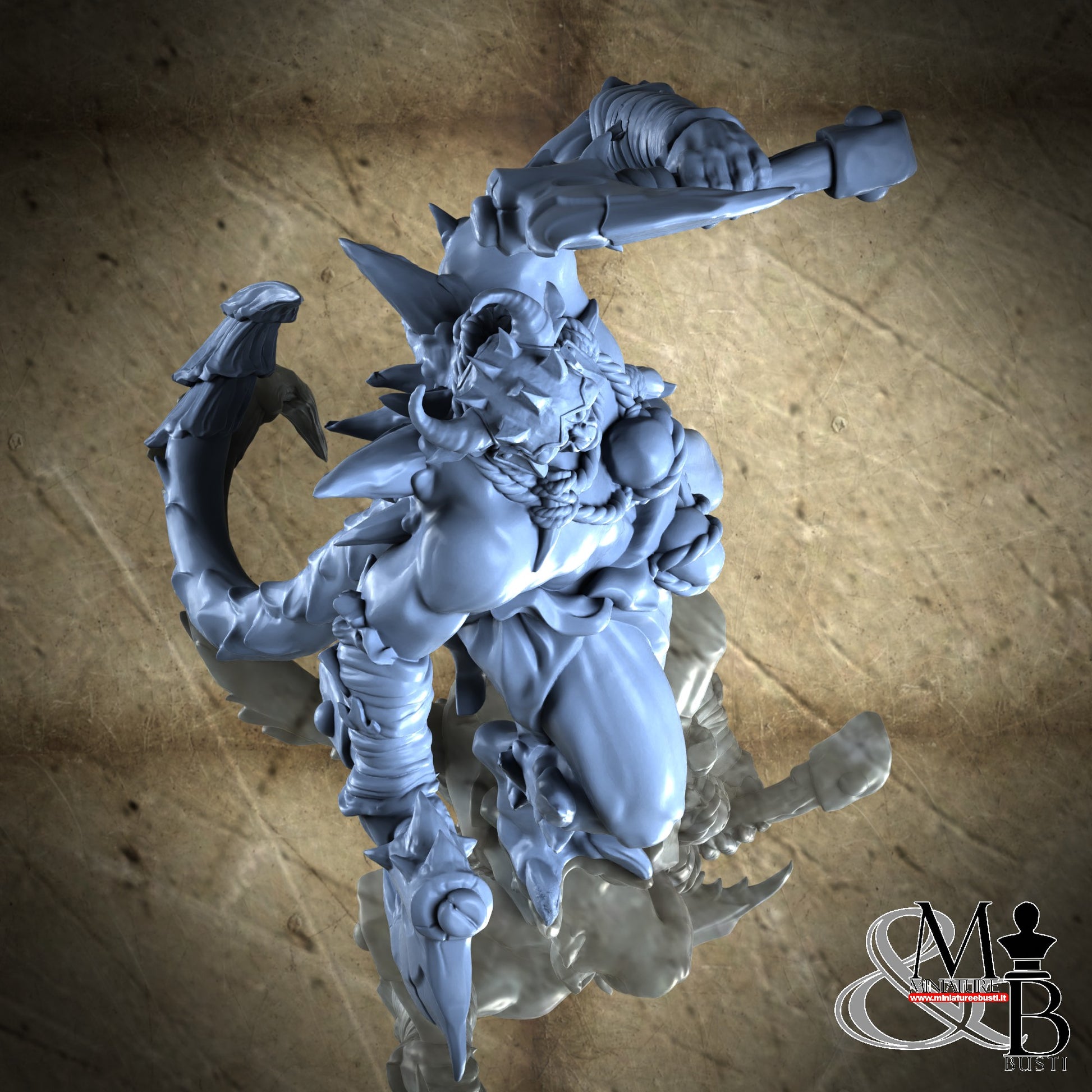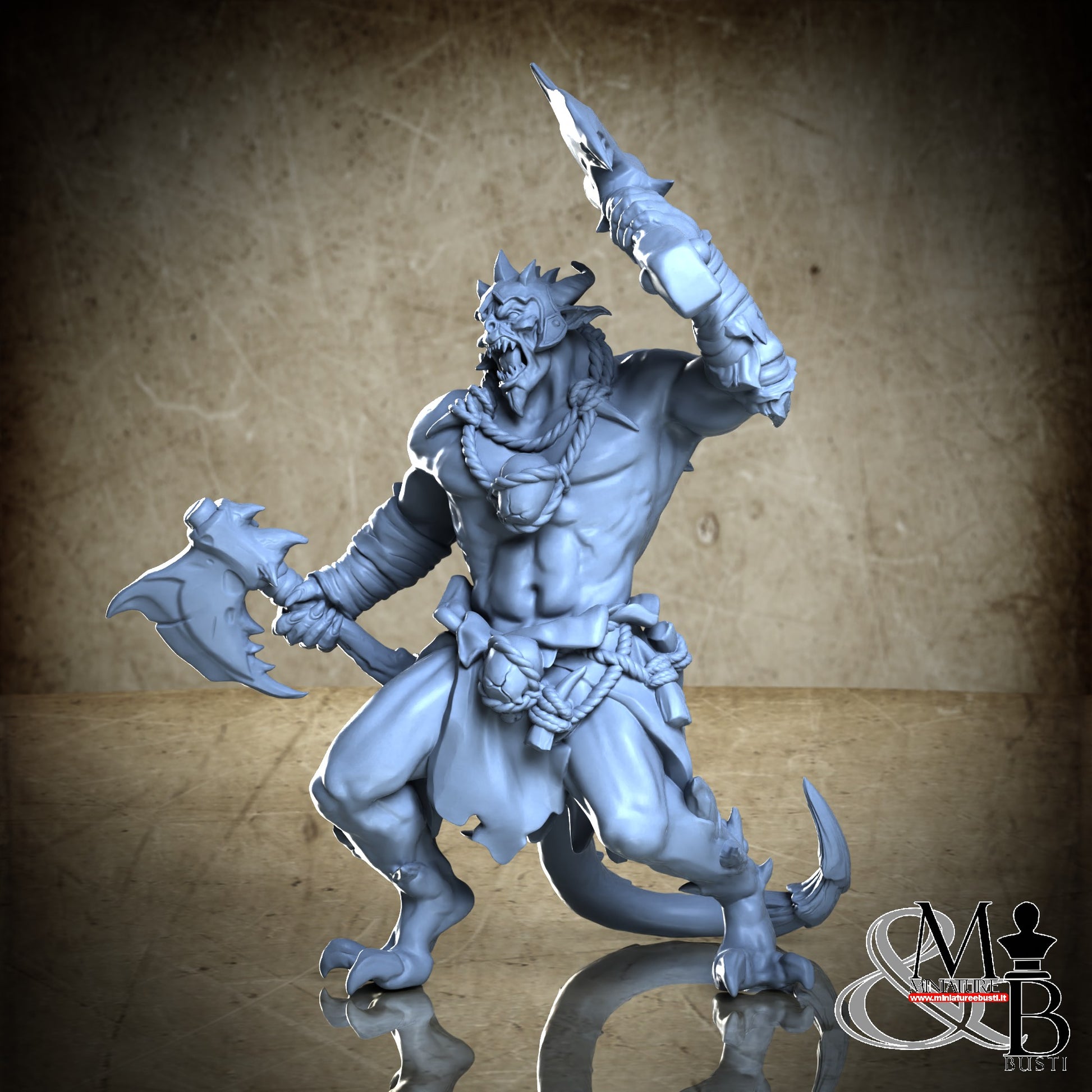 Questa è una MINIATURA. Le miniatura sono modelli pensati per i giochi di ruolo, ad esempio dungeons & Dragons, che poi ridimensioniamo in alto o in basso per le differenti scale. Di solito sono originariamente scolpiti per sistemi a 32mm (dove un uomo standard è alto 32mm dai piedi alla testa). Le proporzioni sono pensate tenendo in considerazione che verranno maneggiate spesso, quindi dettagli come spade e scudi sono particolarmente spessi. La miniatura viene venduta come appare nell'immagine, e dato che alcuni autori non aggiungono una base, se questa è assente nell'immagine significa che non verrà fornita con la miniatura.