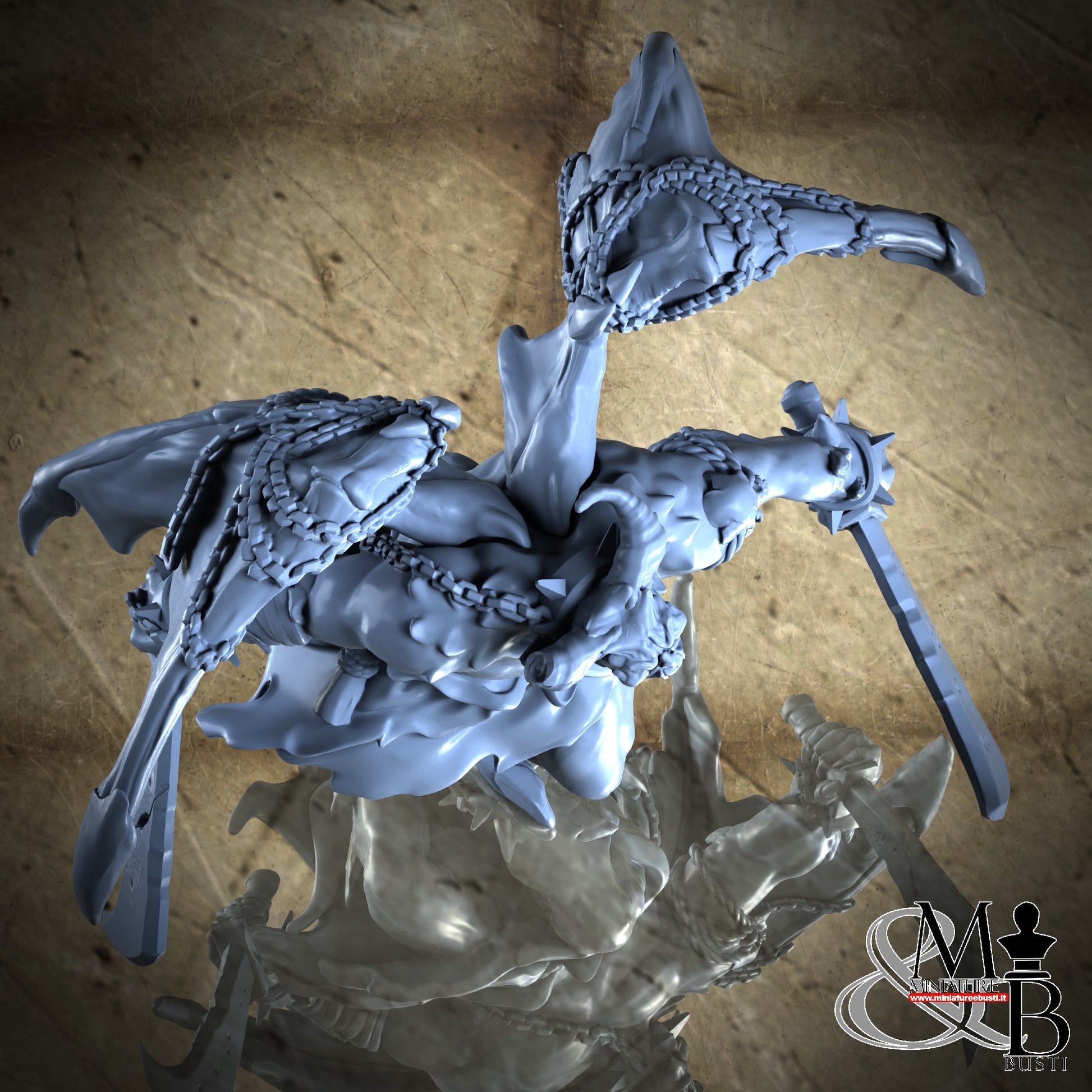 Questa è una MINIATURA. Le miniatura sono modelli pensati per i giochi di ruolo, ad esempio dungeons & Dragons, che poi ridimensioniamo in alto o in basso per le differenti scale. Di solito sono originariamente scolpiti per sistemi a 32mm (dove un uomo standard è alto 32mm dai piedi alla testa). Le proporzioni sono pensate tenendo in considerazione che verranno maneggiate spesso, quindi dettagli come spade e scudi sono particolarmente spessi. La miniatura viene venduta come appare nell'immagine, e dato che alcuni autori non aggiungono una base, se questa è assente nell'immagine significa che non verrà fornita con la miniatura.