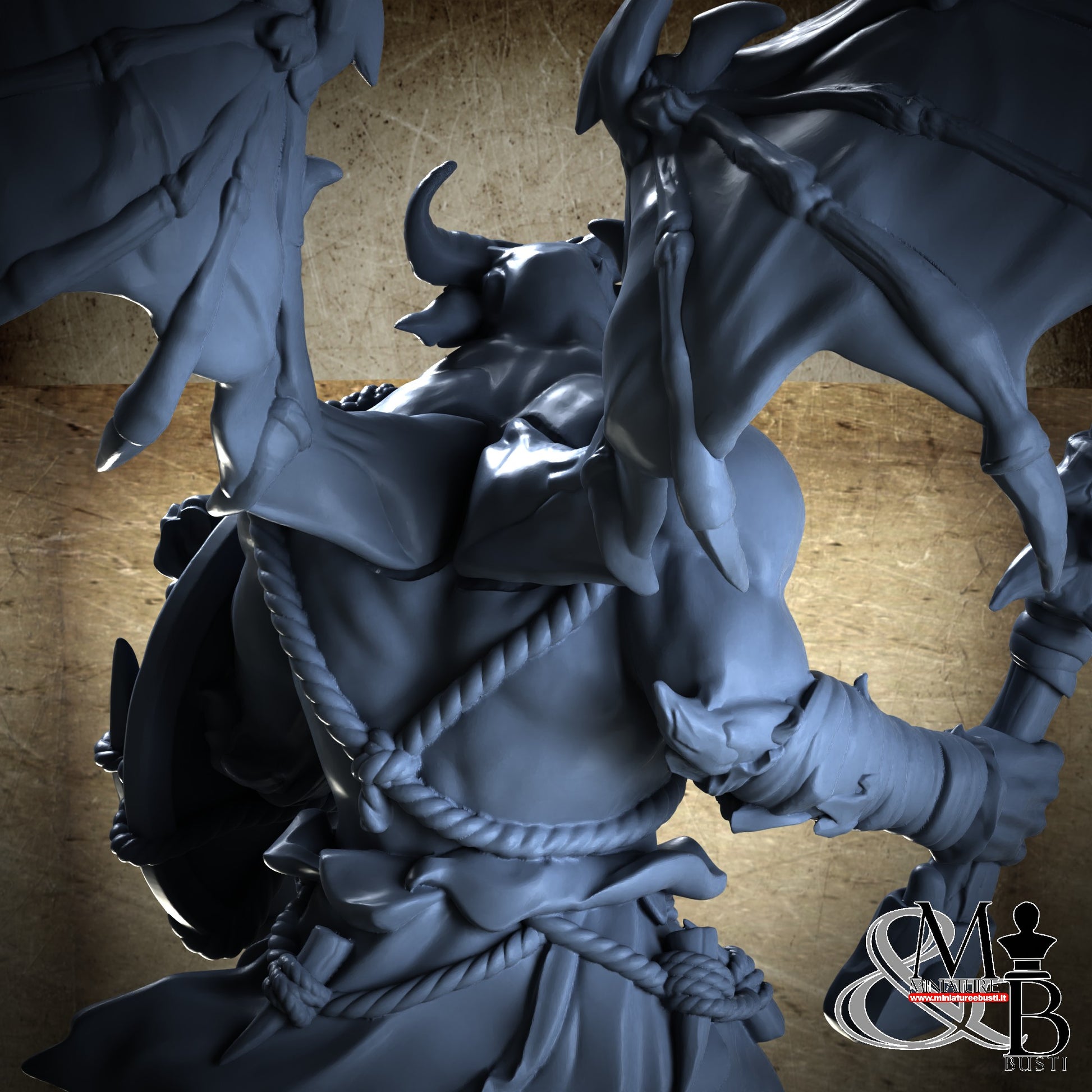 Questa è una MINIATURA. Le miniatura sono modelli pensati per i giochi di ruolo, ad esempio dungeons & Dragons, che poi ridimensioniamo in alto o in basso per le differenti scale. Di solito sono originariamente scolpiti per sistemi a 32mm (dove un uomo standard è alto 32mm dai piedi alla testa). Le proporzioni sono pensate tenendo in considerazione che verranno maneggiate spesso, quindi dettagli come spade e scudi sono particolarmente spessi. La miniatura viene venduta come appare nell'immagine, e dato che alcuni autori non aggiungono una base, se questa è assente nell'immagine significa che non verrà fornita con la miniatura.