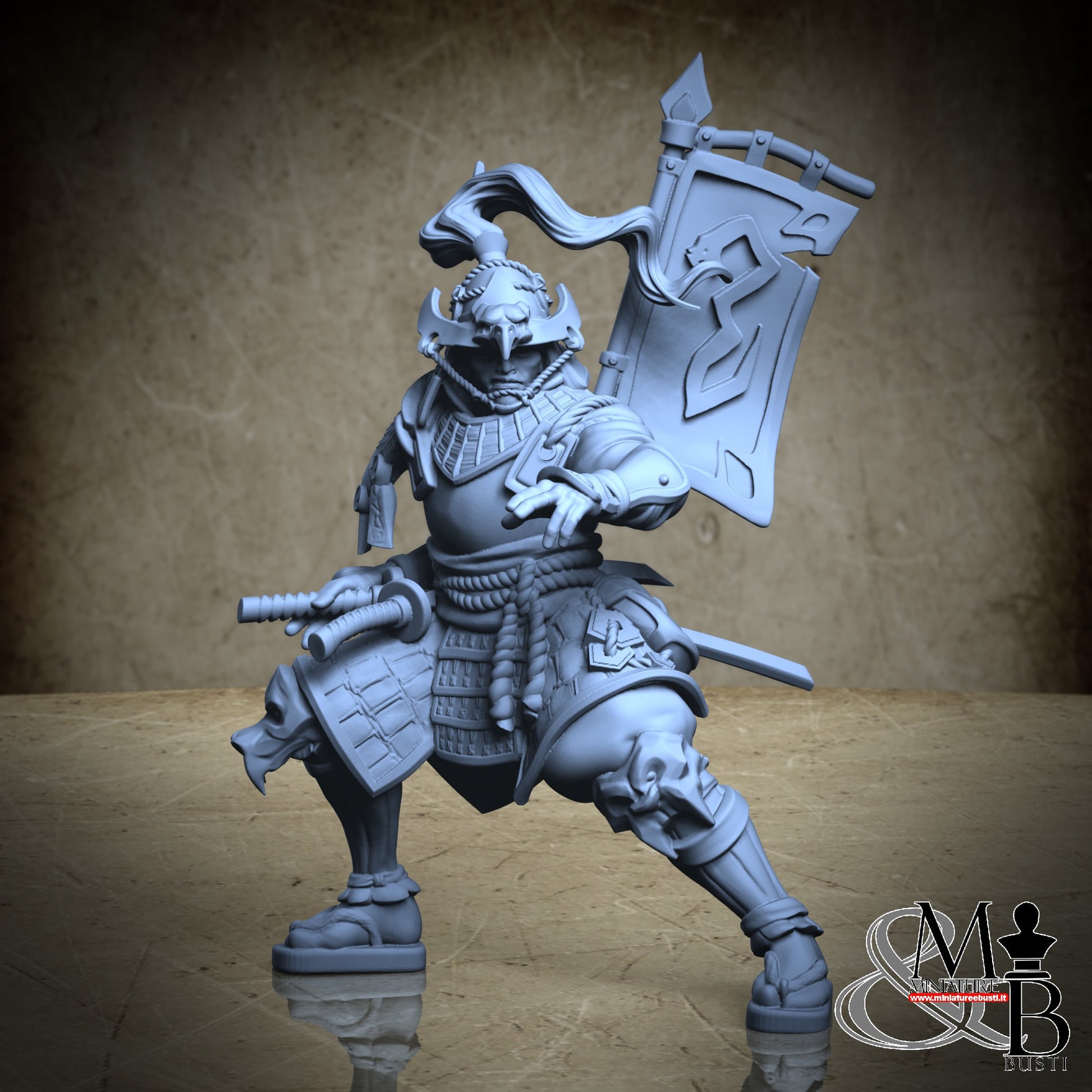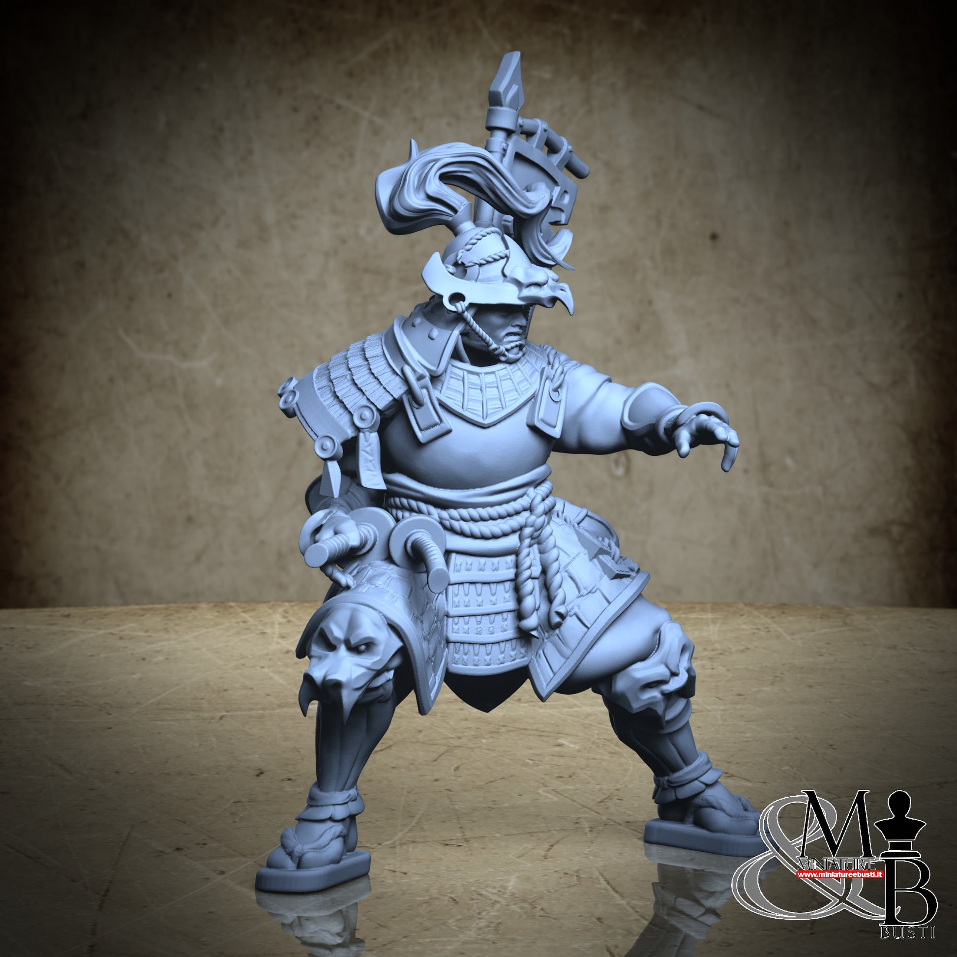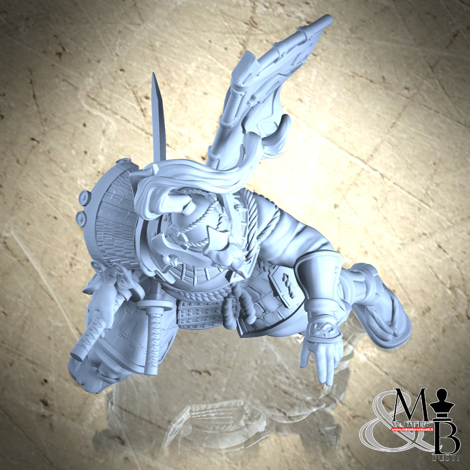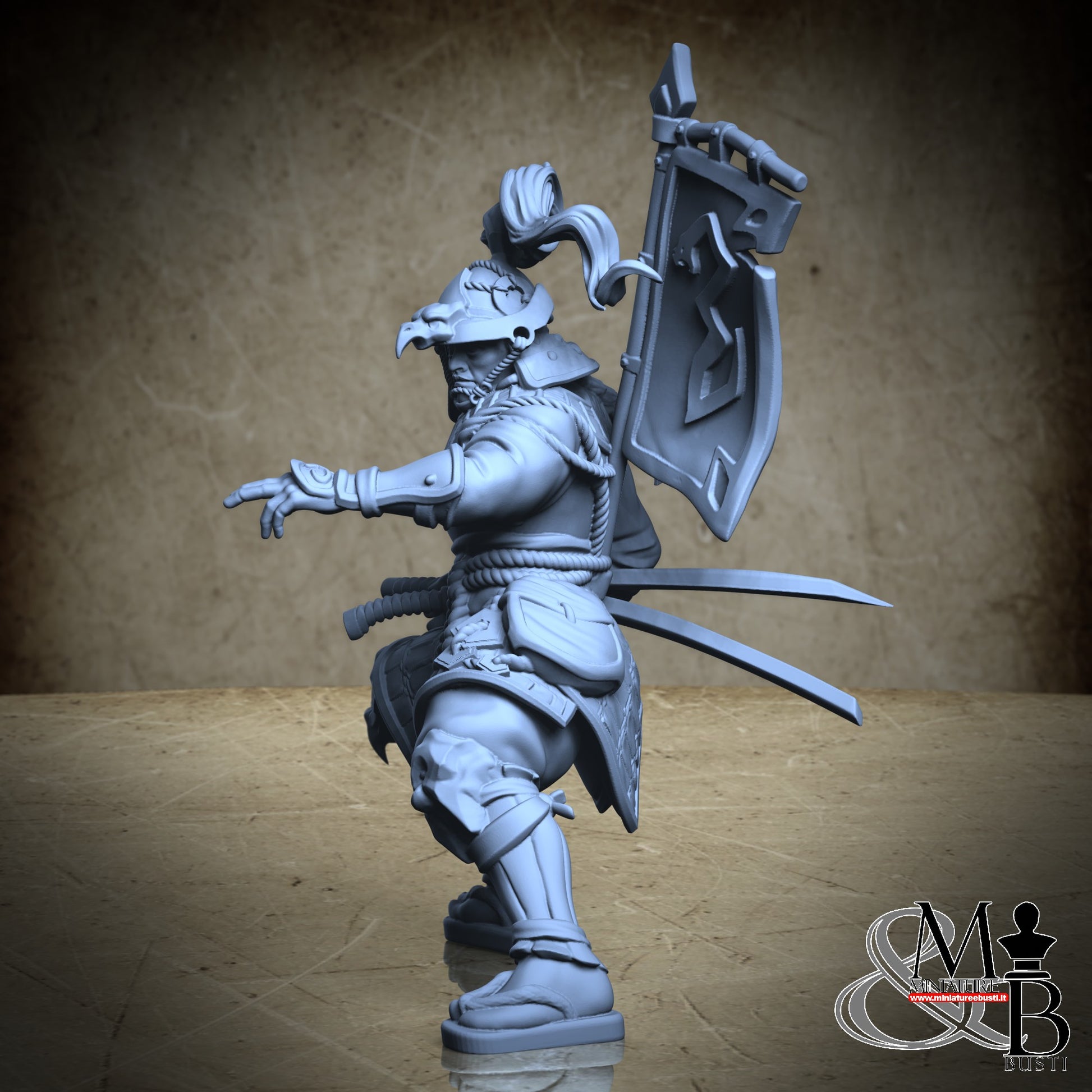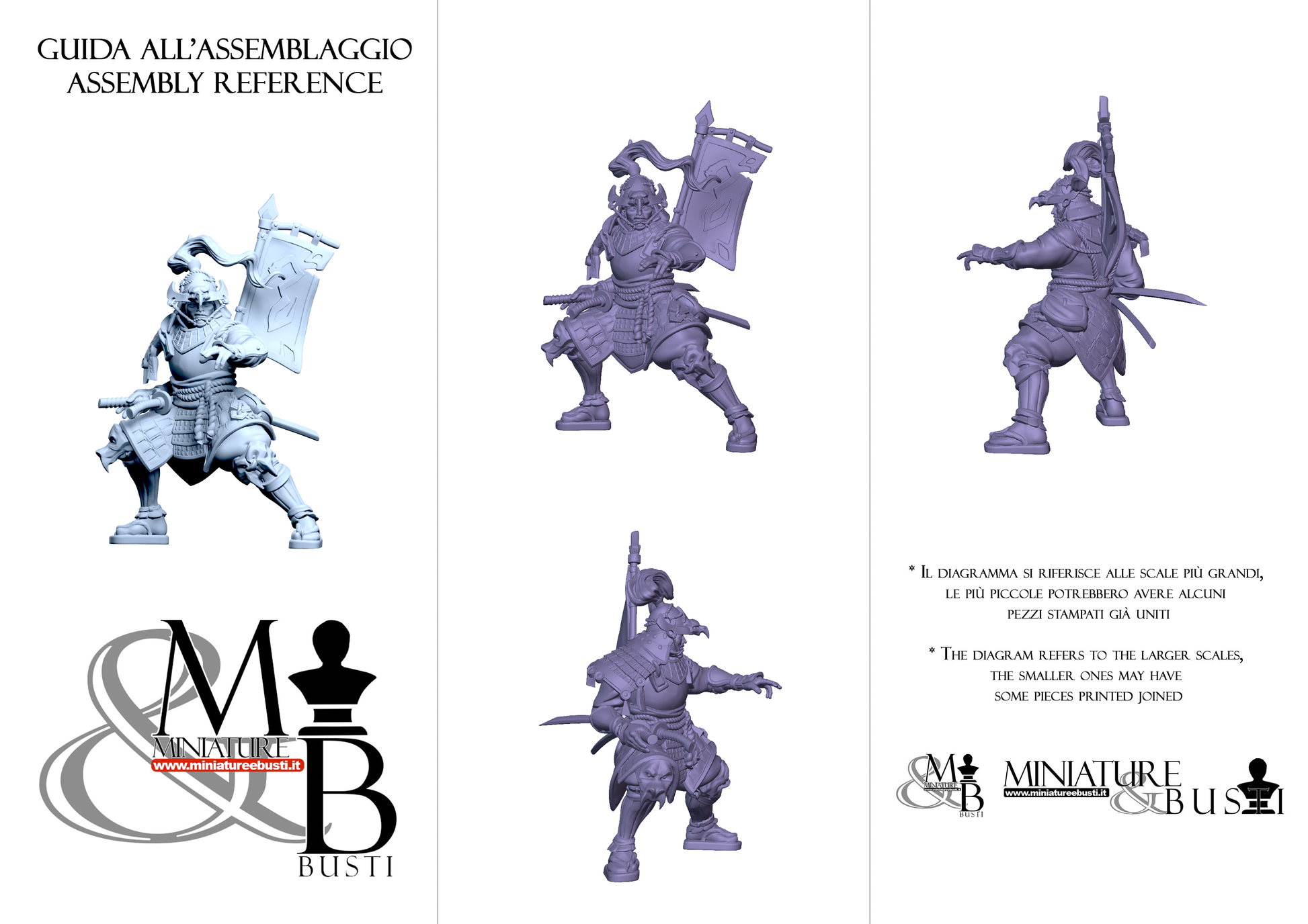 Questa è una MINIATURA. Le miniatura sono modelli pensati per i giochi di ruolo, ad esempio dungeons & Dragons, che poi ridimensioniamo in alto o in basso per le differenti scale. Di solito sono originariamente scolpiti per sistemi a 32mm (dove un uomo standard è alto 32mm dai piedi alla testa). Le proporzioni sono pensate tenendo in considerazione che verranno maneggiate spesso, quindi dettagli come spade e scudi sono particolarmente spessi. La miniatura viene venduta come appare nell'immagine, e dato che alcuni autori non aggiungono una base, se questa è assente nell'immagine significa che non verrà fornita con la miniatura.