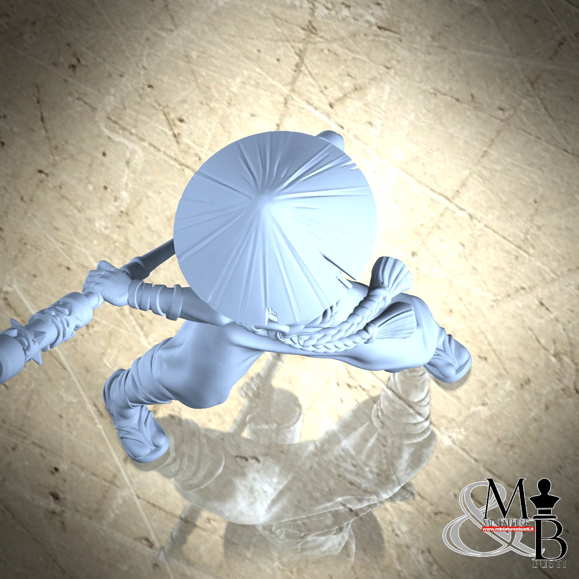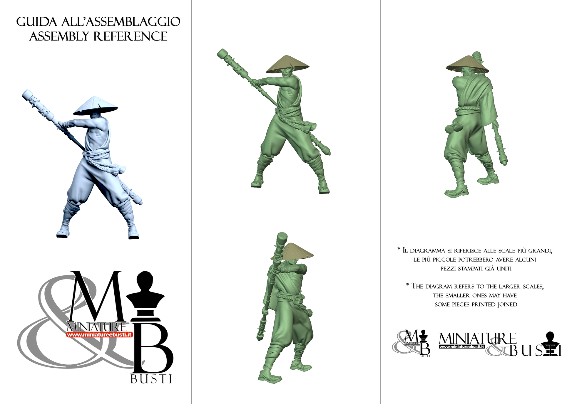 Questa è una MINIATURA. Le miniatura sono modelli pensati per i giochi di ruolo, ad esempio dungeons & Dragons, che poi ridimensioniamo in alto o in basso per le differenti scale. Di solito sono originariamente scolpiti per sistemi a 32mm (dove un uomo standard è alto 32mm dai piedi alla testa). Le proporzioni sono pensate tenendo in considerazione che verranno maneggiate spesso, quindi dettagli come spade e scudi sono particolarmente spessi. La miniatura viene venduta come appare nell'immagine, e dato che alcuni autori non aggiungono una base, se questa è assente nell'immagine significa che non verrà fornita con la miniatura.