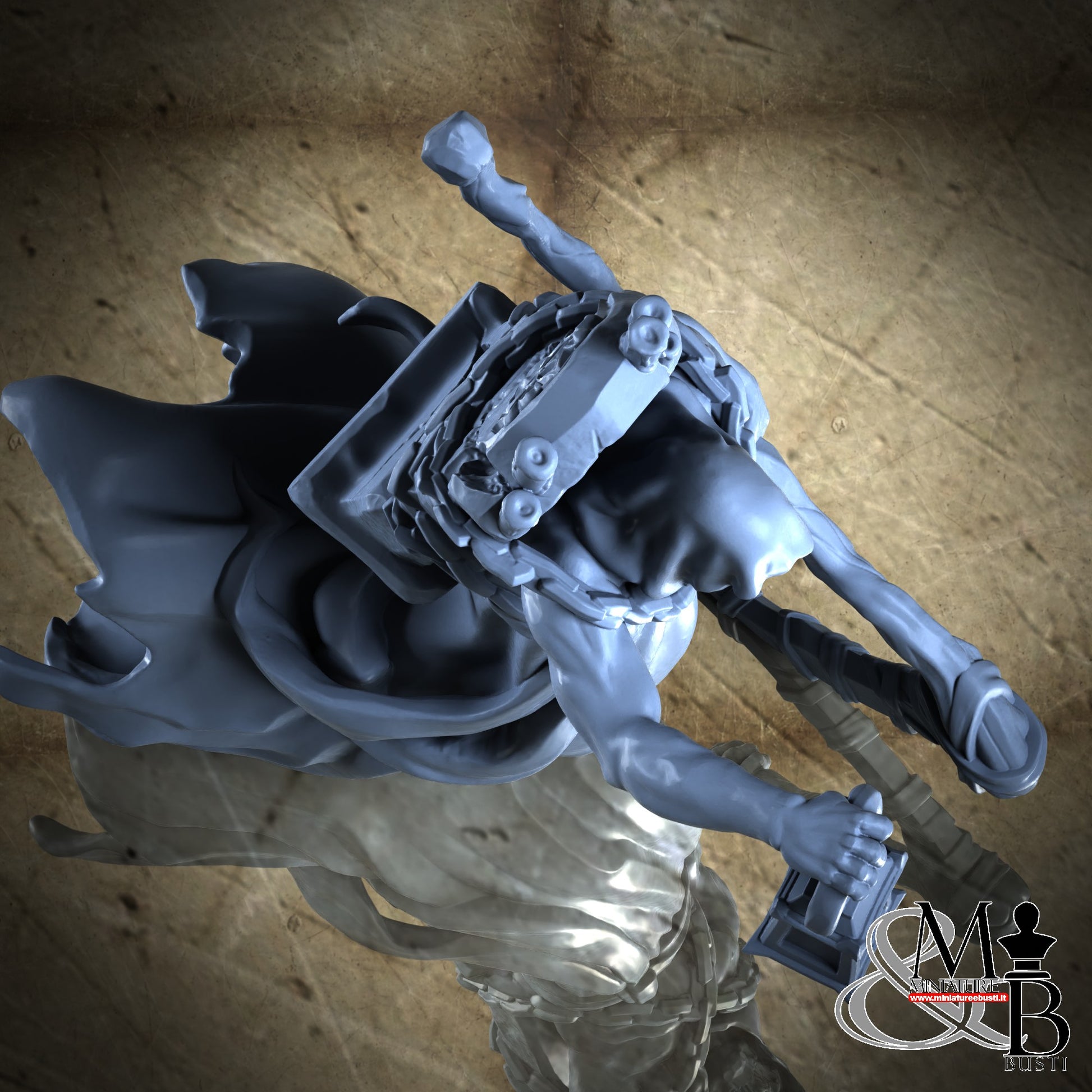 Questa è una MINIATURA. Le miniatura sono modelli pensati per i giochi di ruolo, ad esempio dungeons & Dragons, che poi ridimensioniamo in alto o in basso per le differenti scale. Di solito sono originariamente scolpiti per sistemi a 32mm (dove un uomo standard è alto 32mm dai piedi alla testa). Le proporzioni sono pensate tenendo in considerazione che verranno maneggiate spesso, quindi dettagli come spade e scudi sono particolarmente spessi. La miniatura viene venduta come appare nell'immagine, e dato che alcuni autori non aggiungono una base, se questa è assente nell'immagine significa che non verrà fornita con la miniatura.