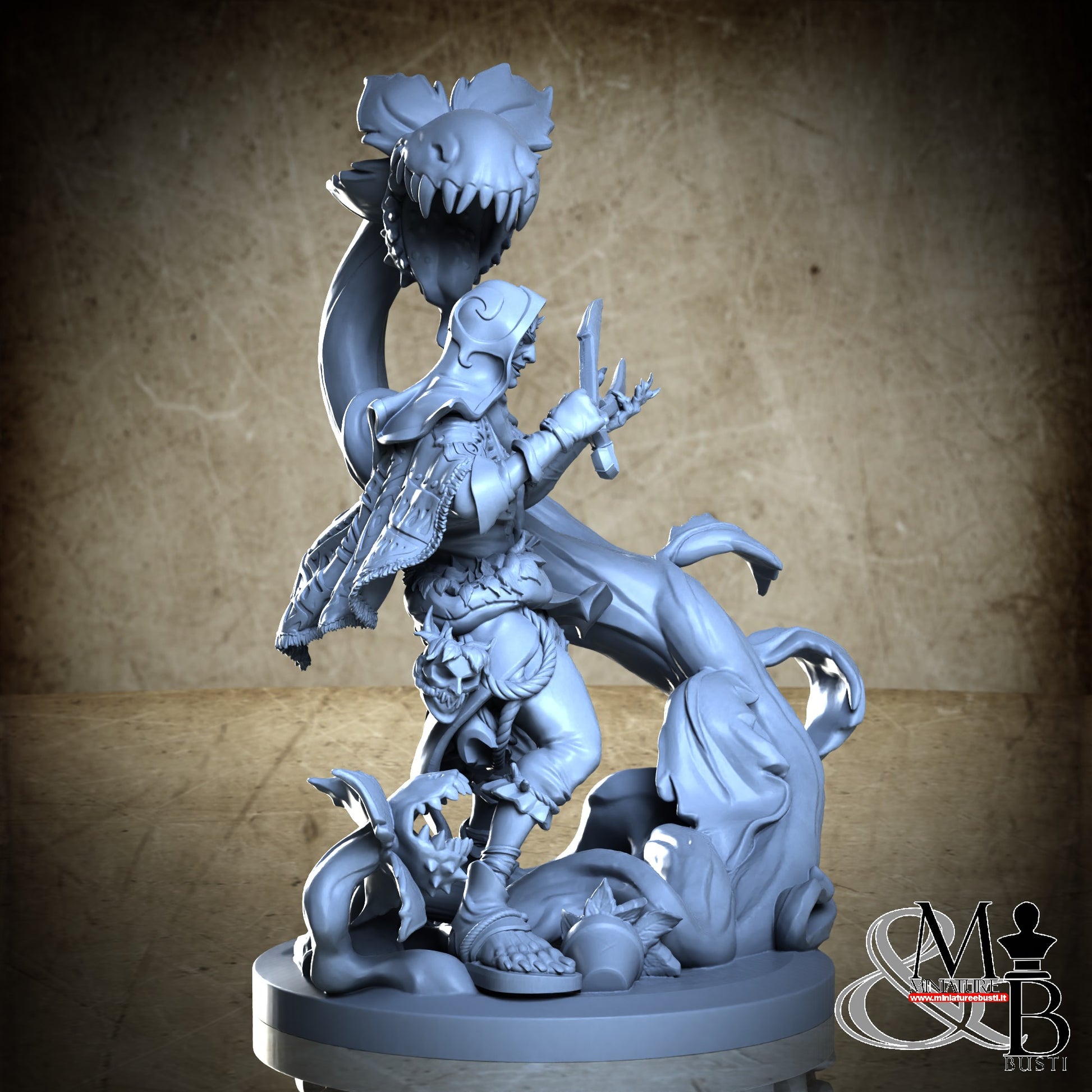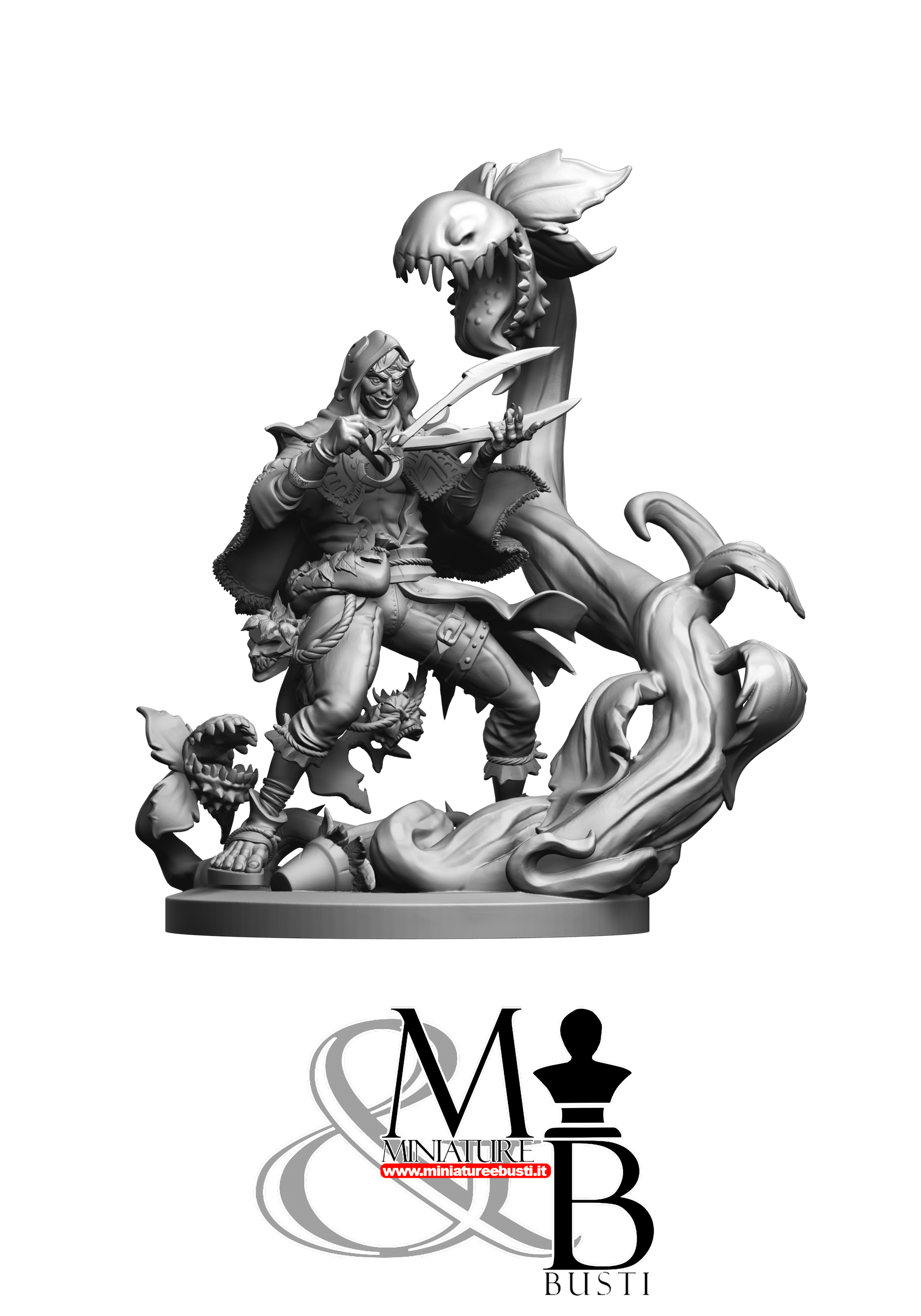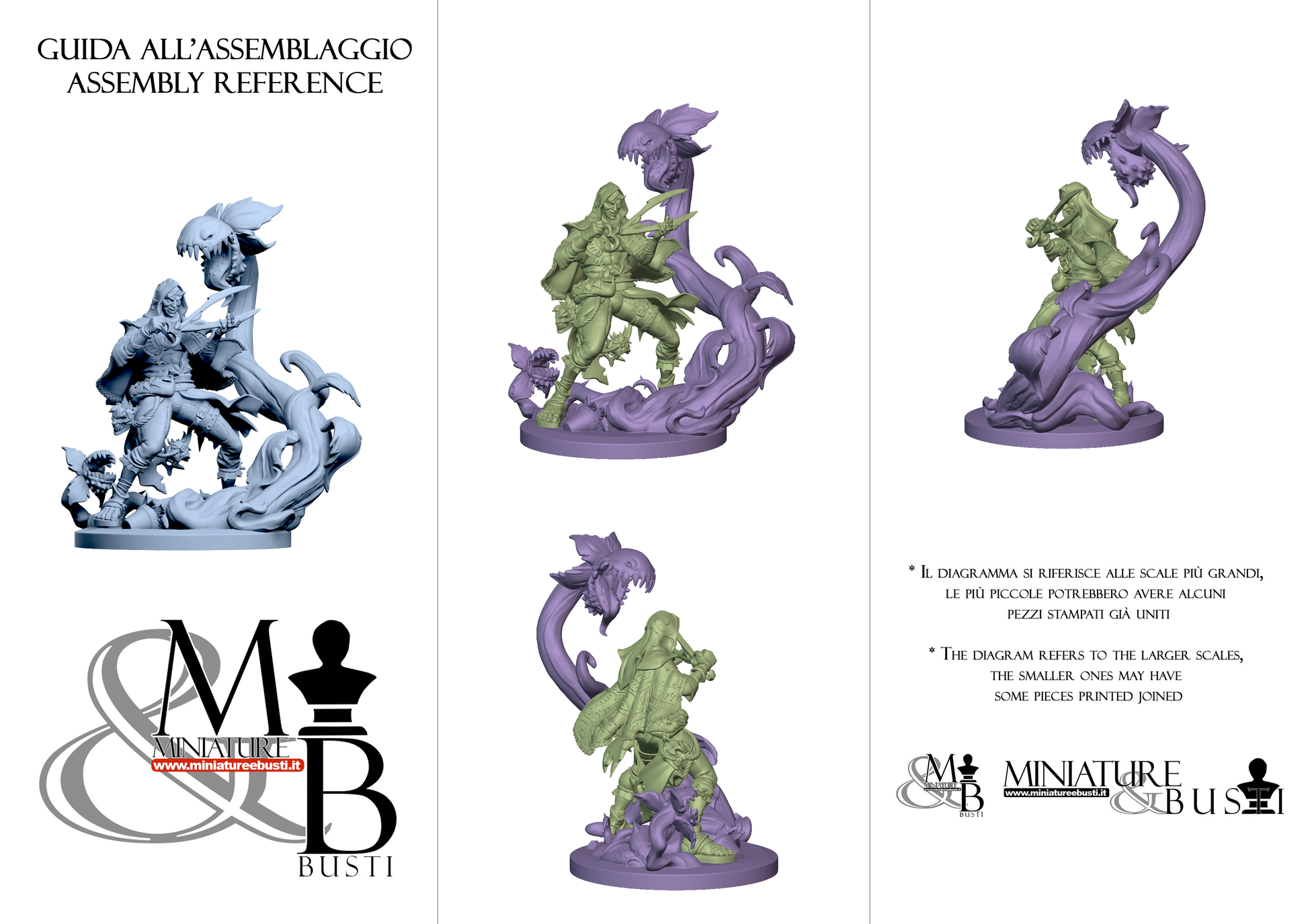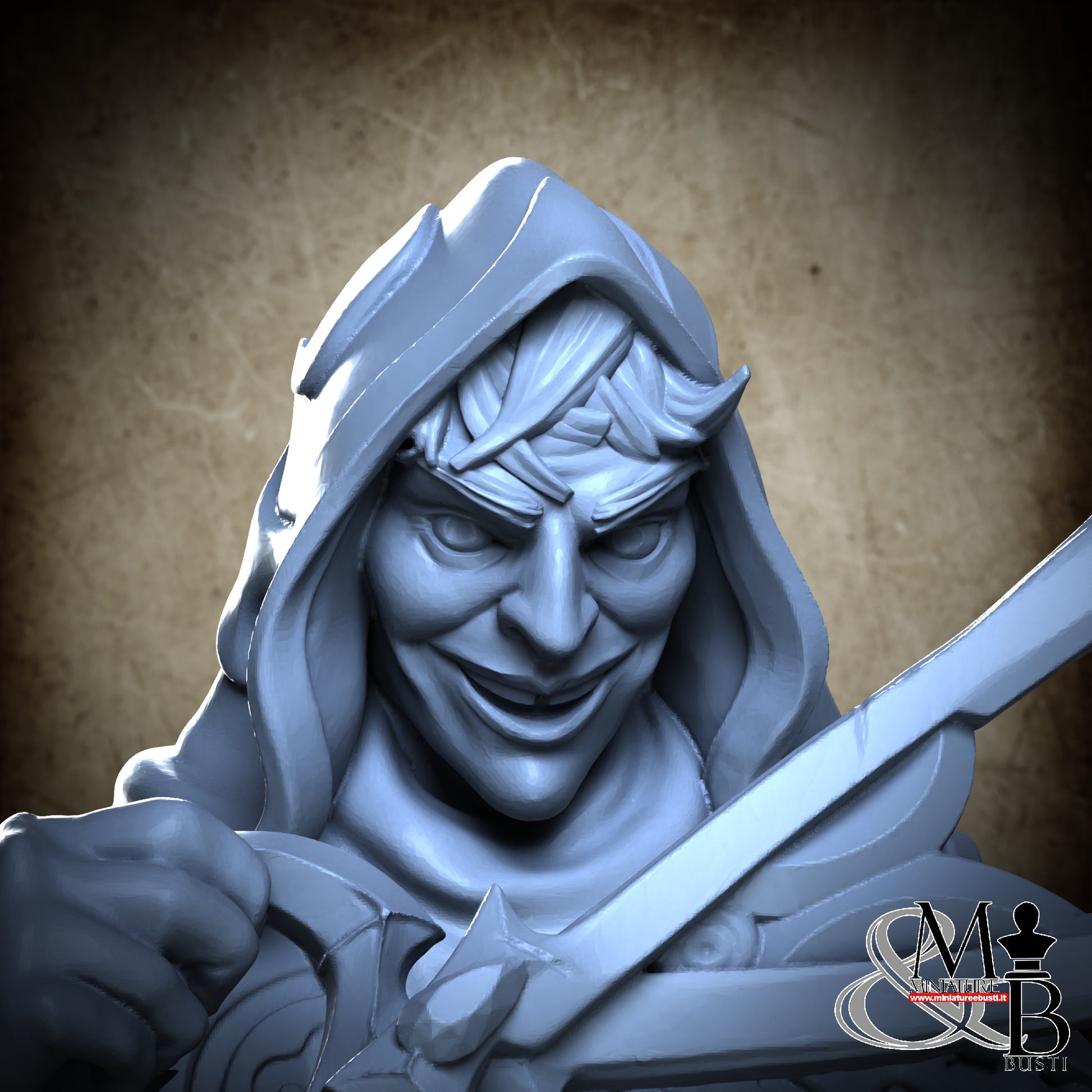 Questa è una MINIATURA. Le miniatura sono modelli pensati per i giochi di ruolo, ad esempio dungeons & Dragons, che poi ridimensioniamo in alto o in basso per le differenti scale. Di solito sono originariamente scolpiti per sistemi a 32mm (dove un uomo standard è alto 32mm dai piedi alla testa). Le proporzioni sono pensate tenendo in considerazione che verranno maneggiate spesso, quindi dettagli come spade e scudi sono particolarmente spessi. La miniatura viene venduta come appare nell'immagine, e dato che alcuni autori non aggiungono una base, se questa è assente nell'immagine significa che non verrà fornita con la miniatura.