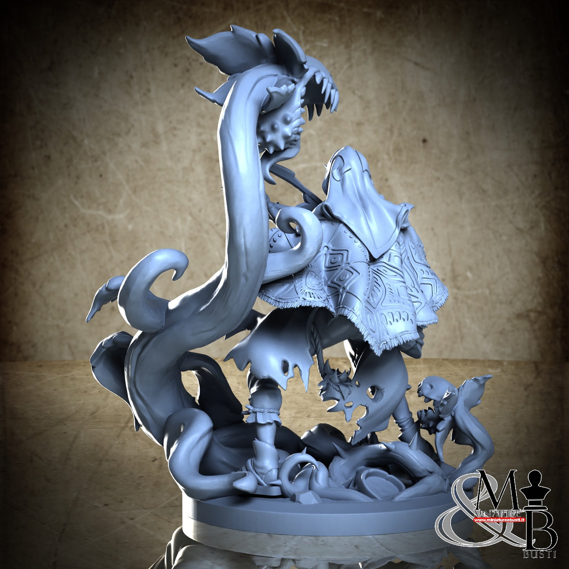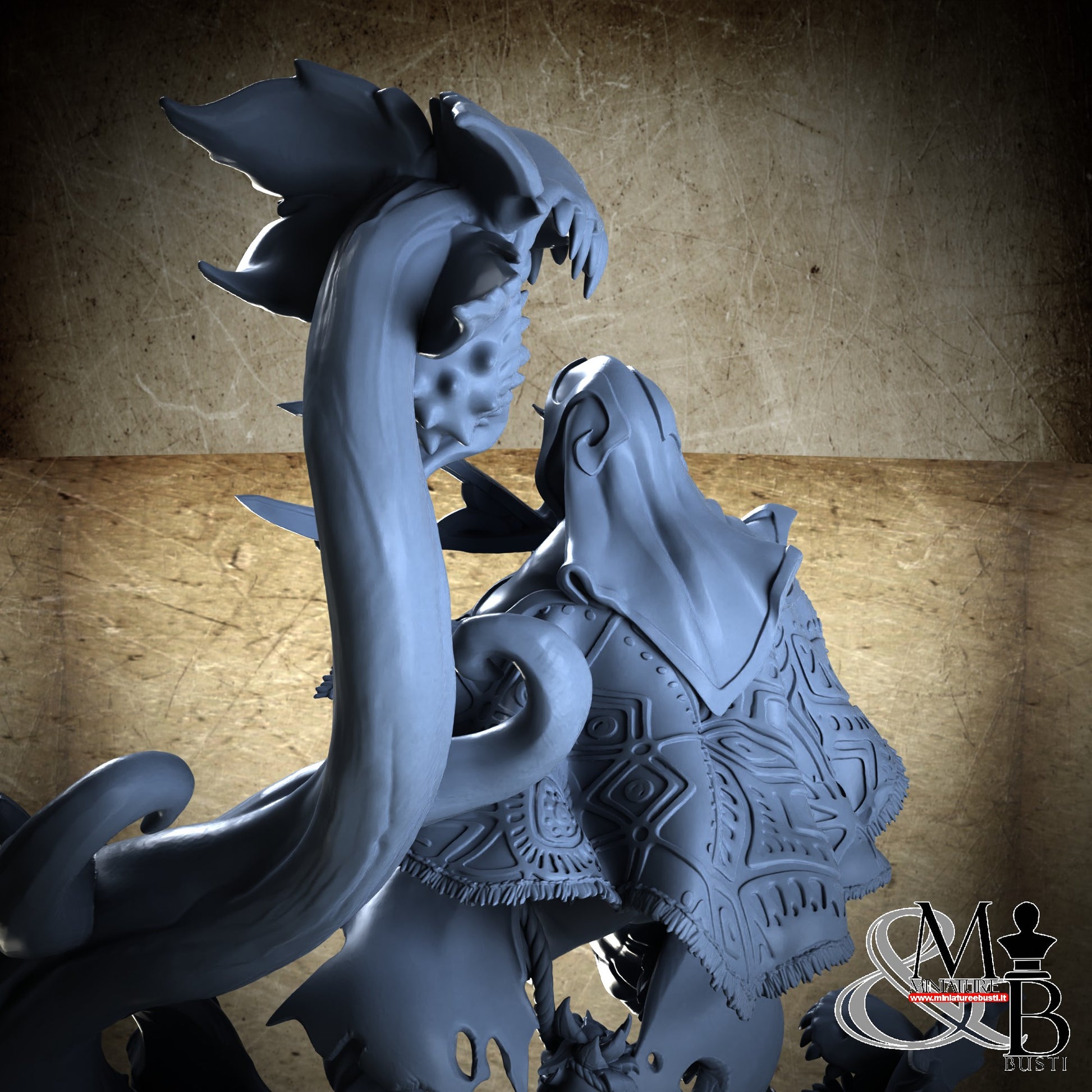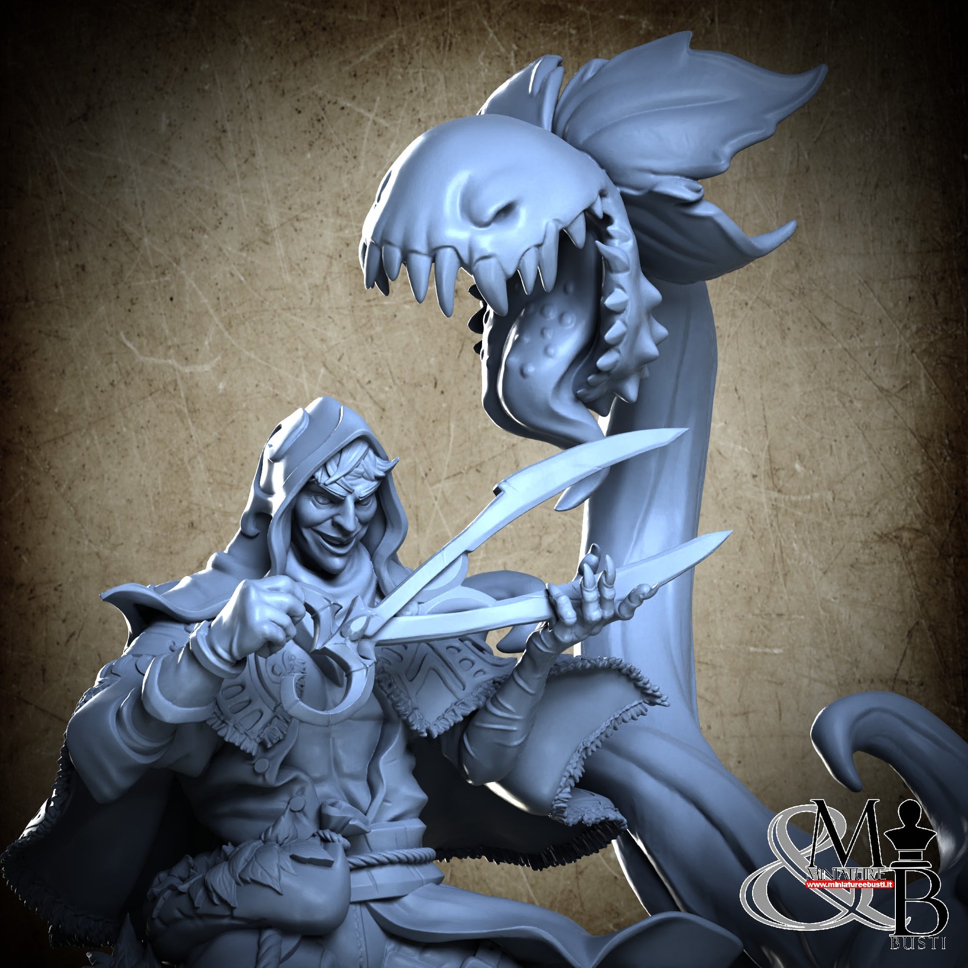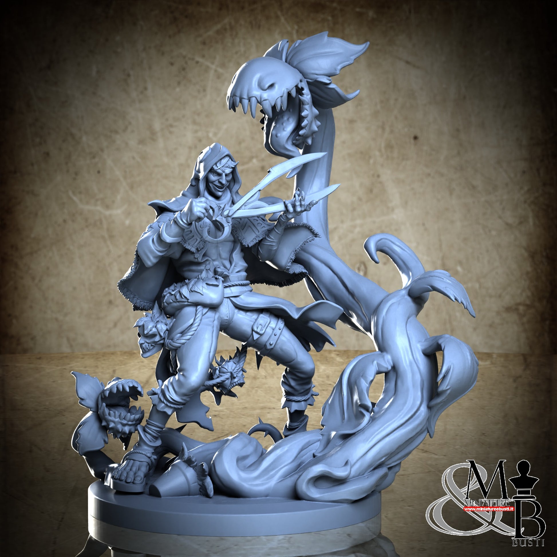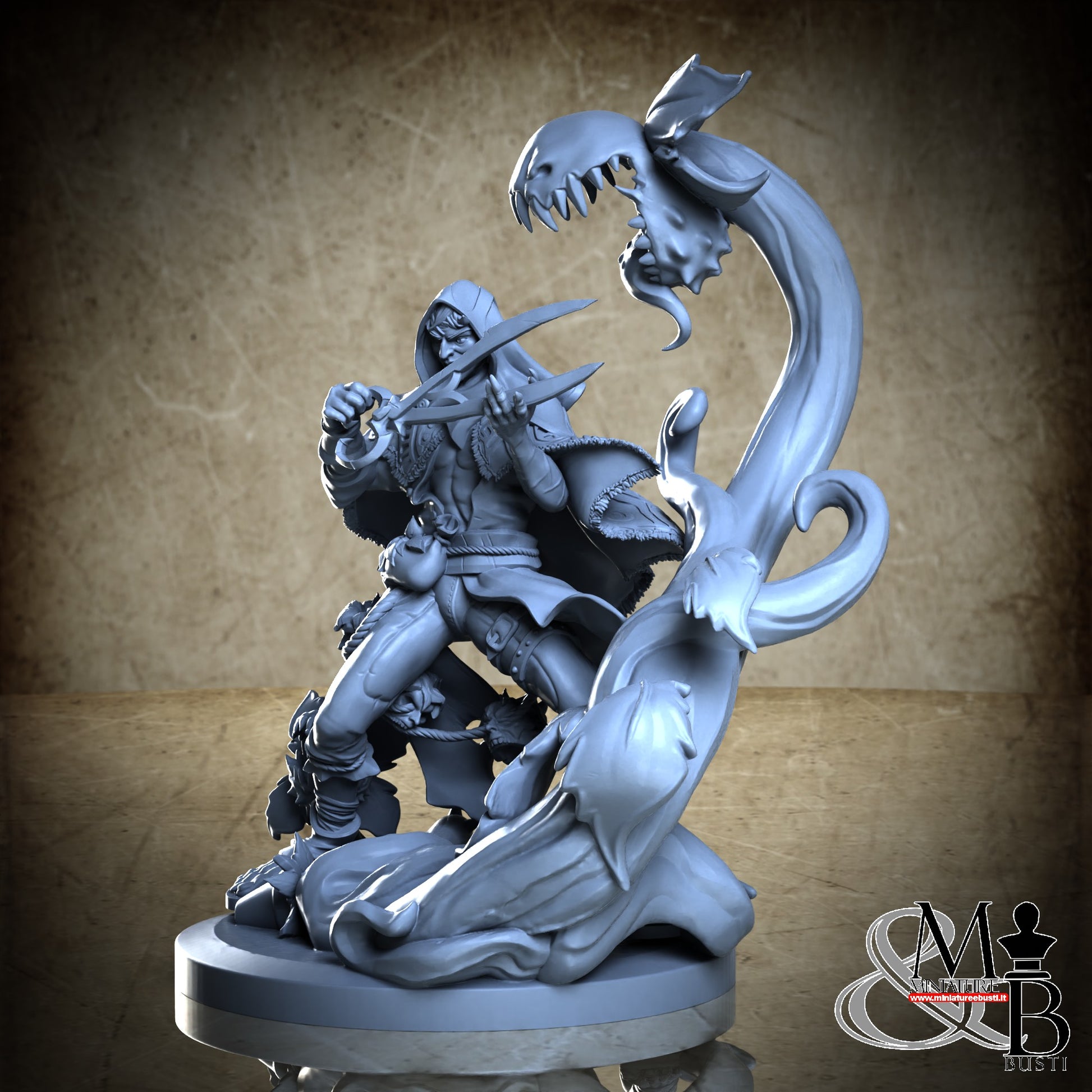Questa è una MINIATURA. Le miniatura sono modelli pensati per i giochi di ruolo, ad esempio dungeons & Dragons, che poi ridimensioniamo in alto o in basso per le differenti scale. Di solito sono originariamente scolpiti per sistemi a 32mm (dove un uomo standard è alto 32mm dai piedi alla testa). Le proporzioni sono pensate tenendo in considerazione che verranno maneggiate spesso, quindi dettagli come spade e scudi sono particolarmente spessi. La miniatura viene venduta come appare nell'immagine, e dato che alcuni autori non aggiungono una base, se questa è assente nell'immagine significa che non verrà fornita con la miniatura.