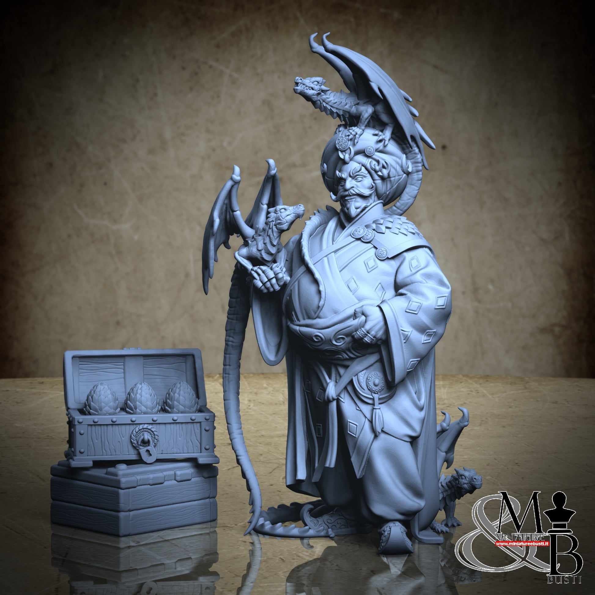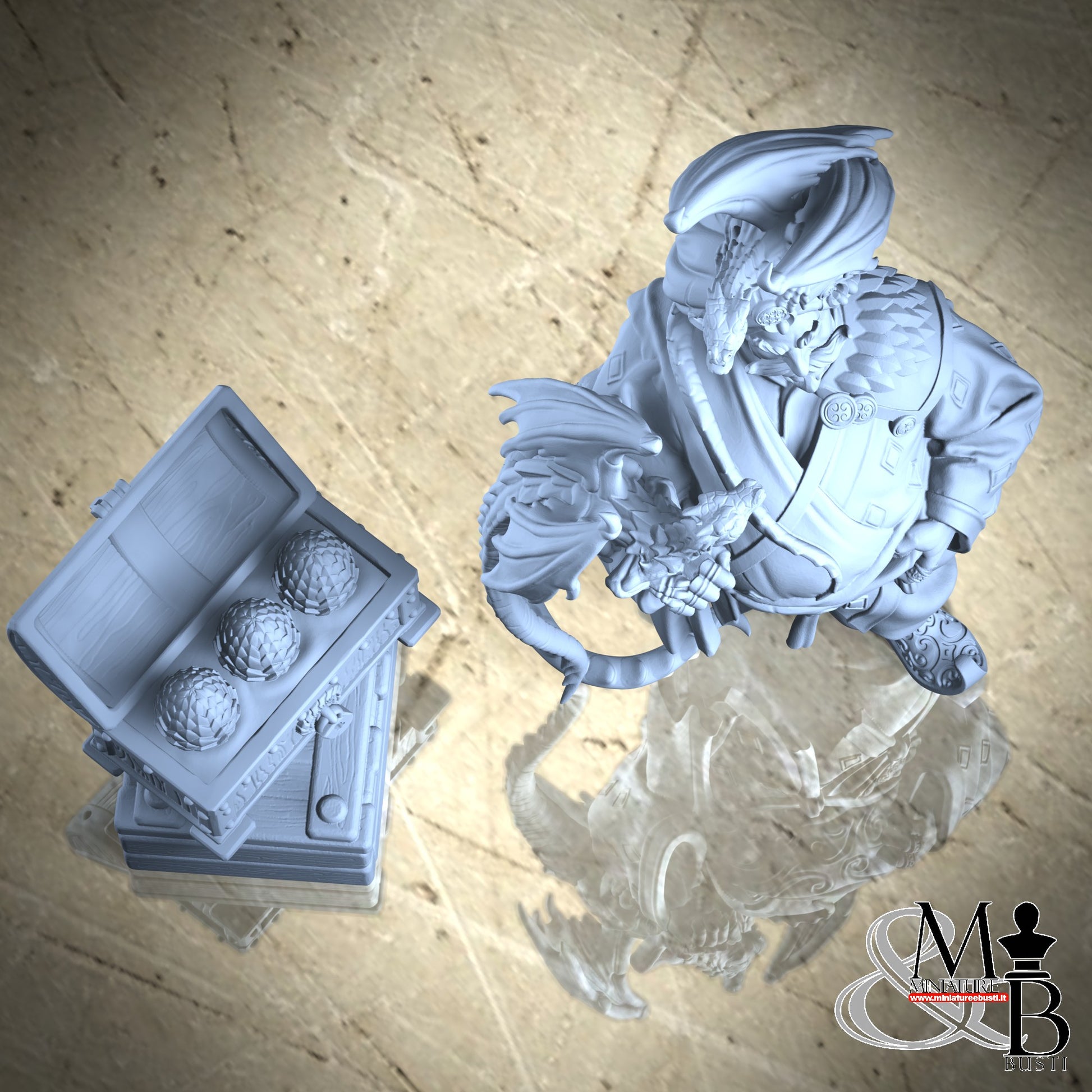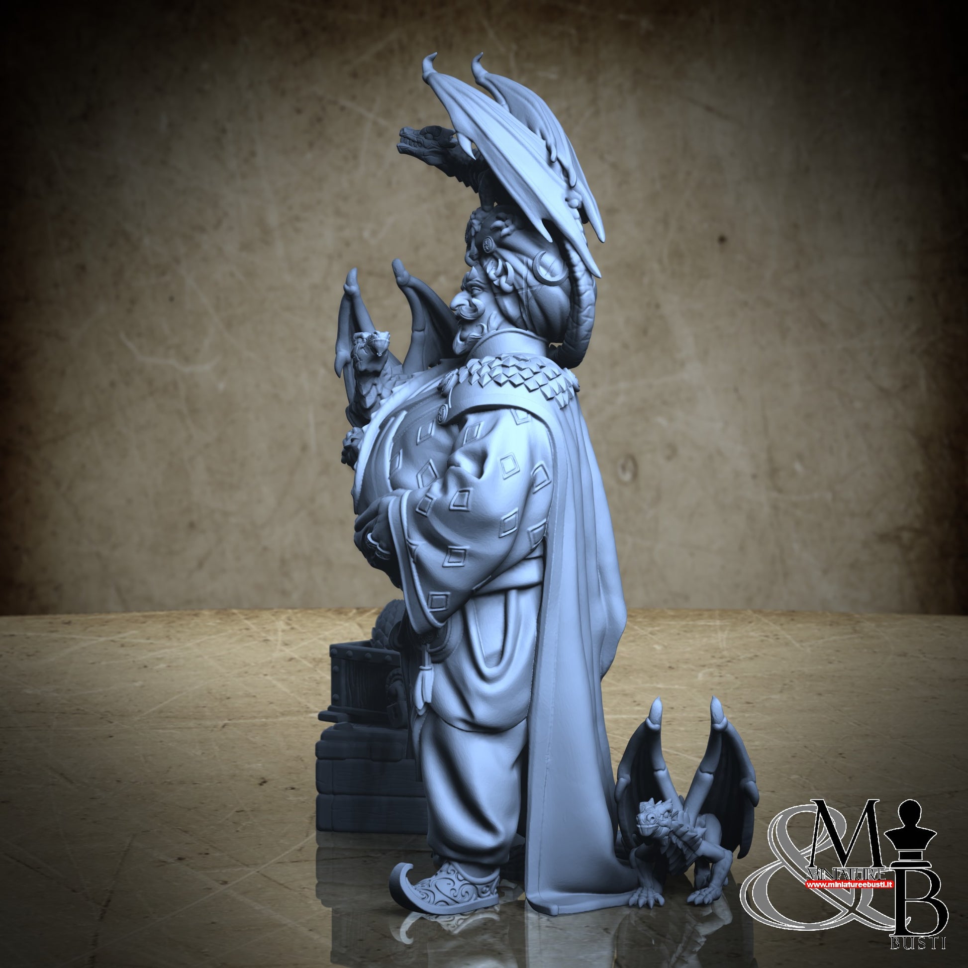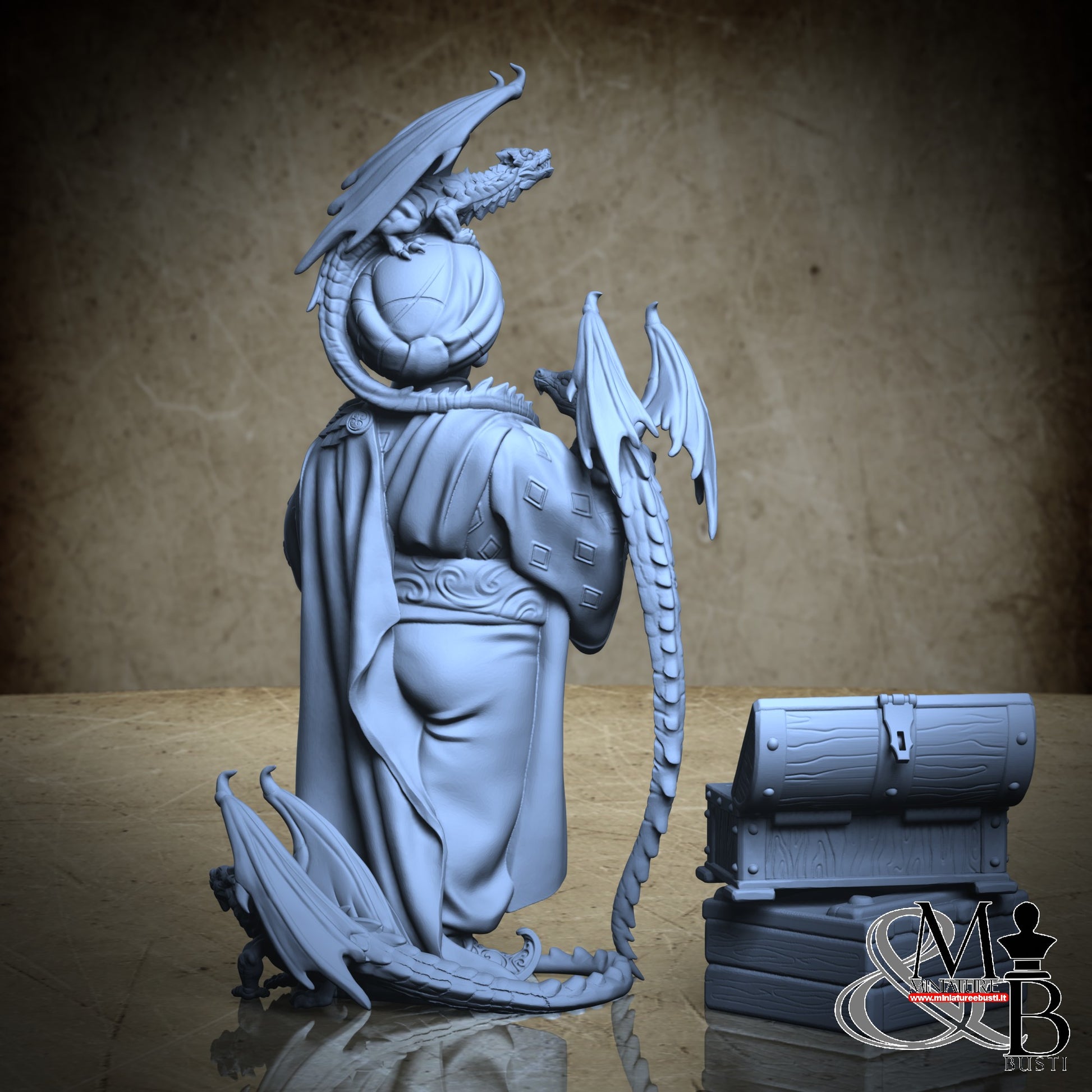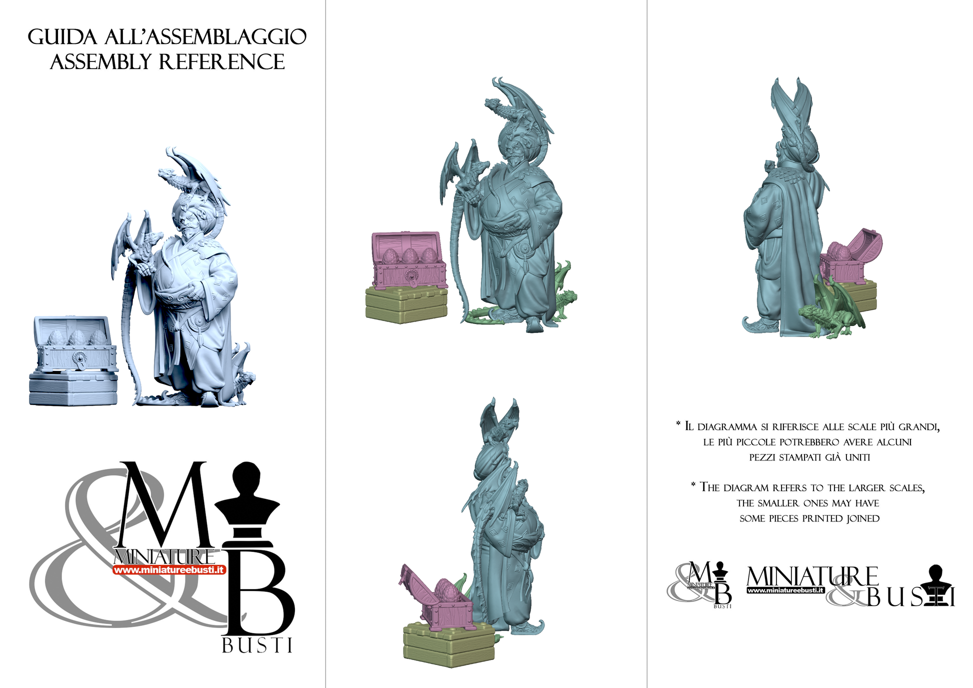 Questa è una MINIATURA. Le miniatura sono modelli pensati per i giochi di ruolo, ad esempio dungeons & Dragons, che poi ridimensioniamo in alto o in basso per le differenti scale. Di solito sono originariamente scolpiti per sistemi a 32mm (dove un uomo standard è alto 32mm dai piedi alla testa). Le proporzioni sono pensate tenendo in considerazione che verranno maneggiate spesso, quindi dettagli come spade e scudi sono particolarmente spessi. La miniatura viene venduta come appare nell'immagine, e dato che alcuni autori non aggiungono una base, se questa è assente nell'immagine significa che non verrà fornita con la miniatura.