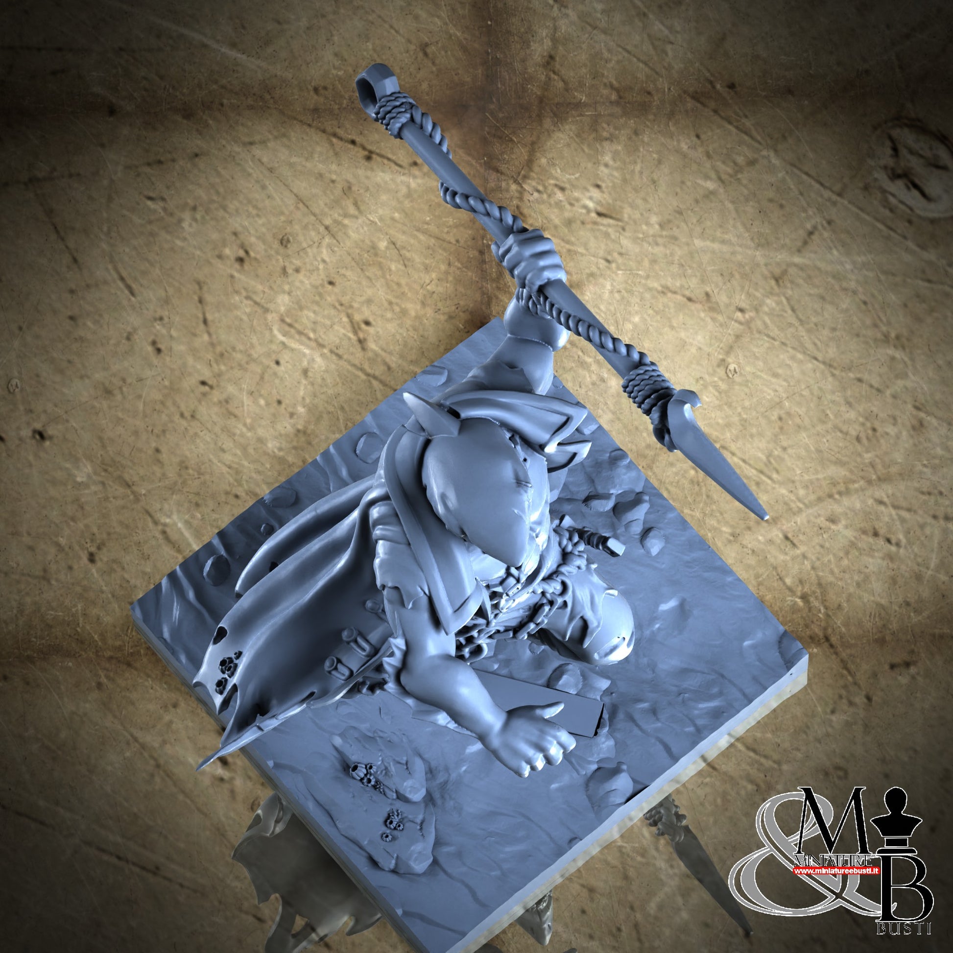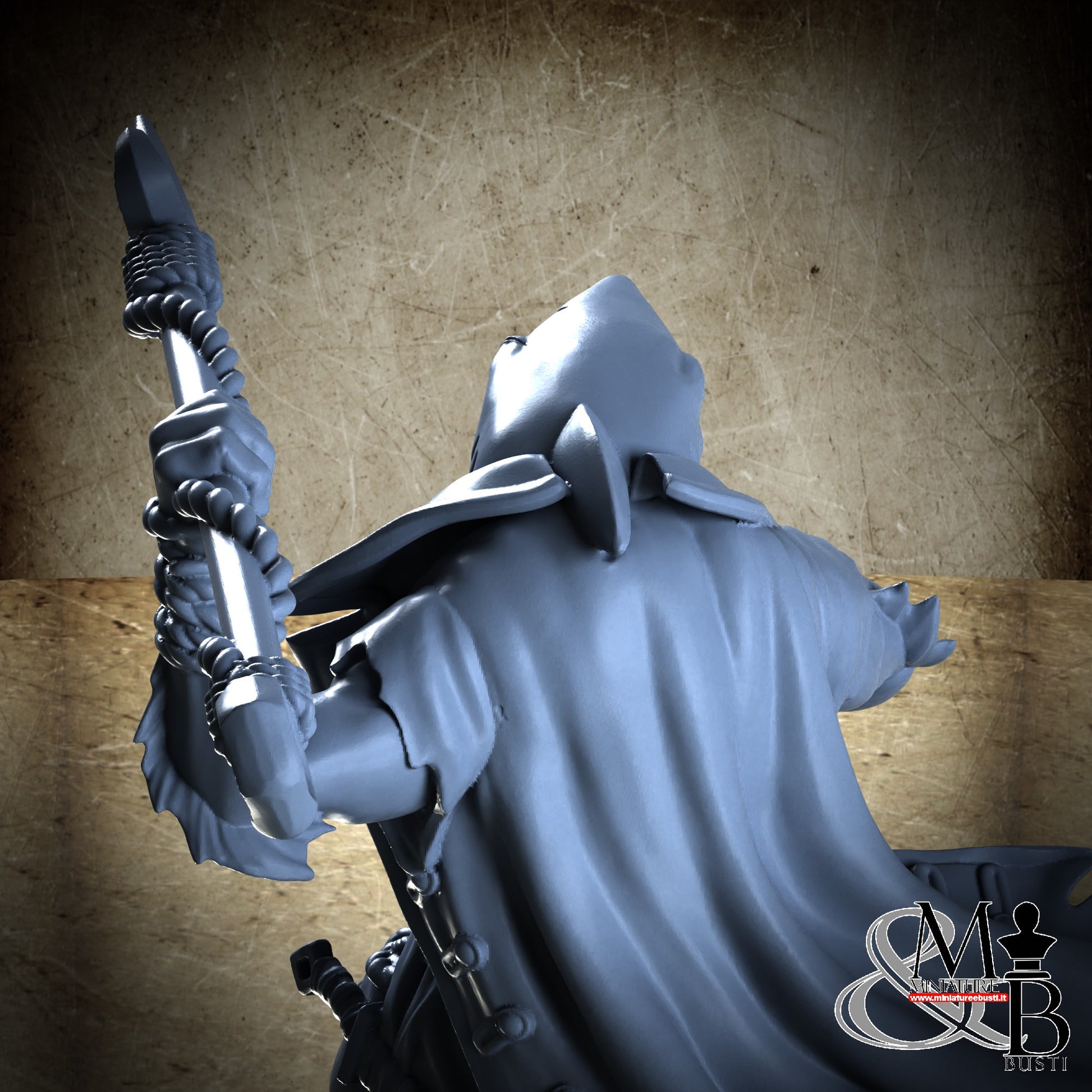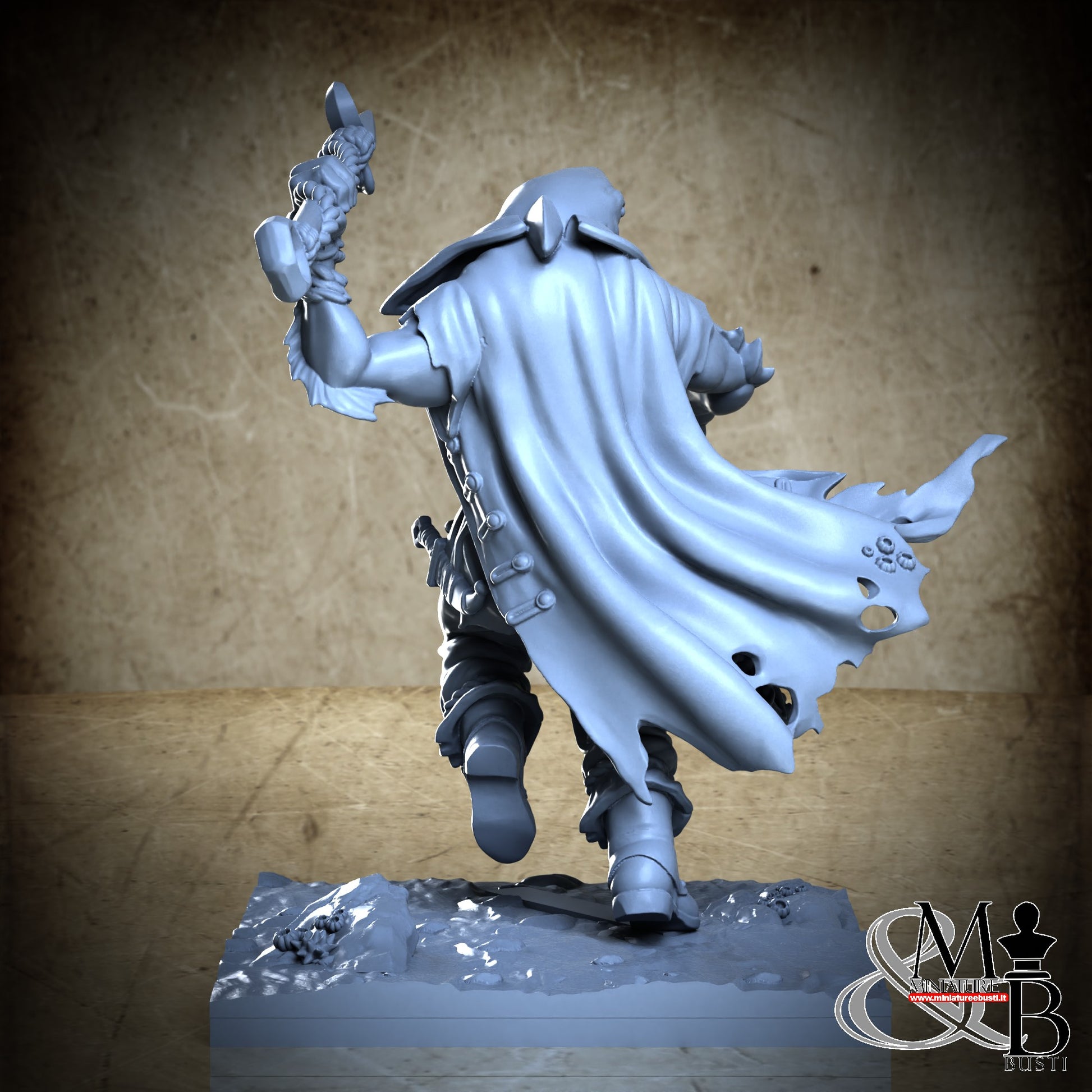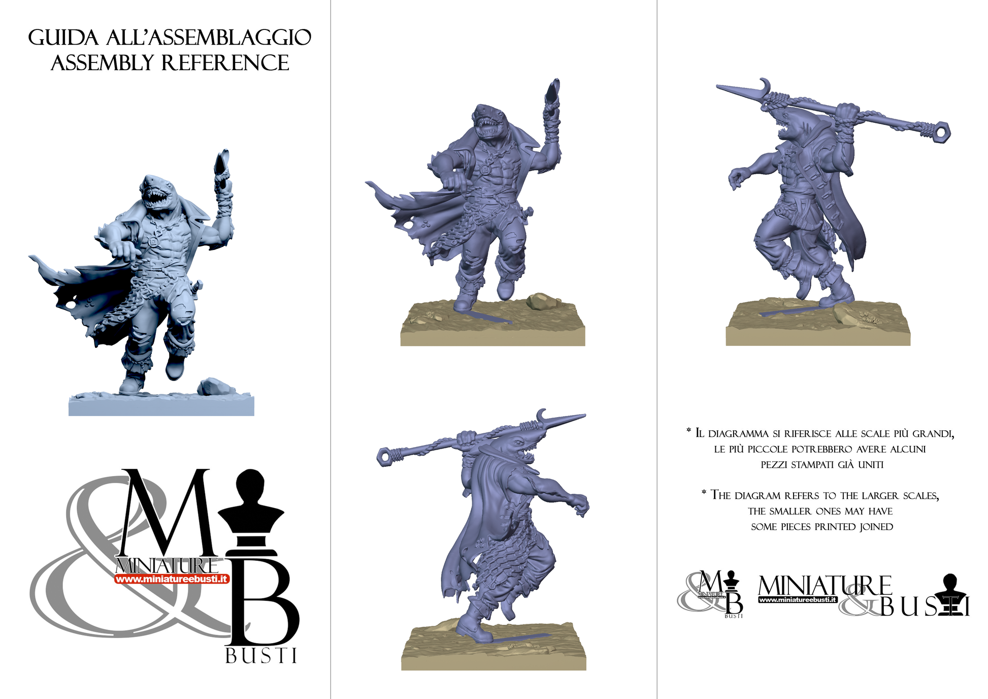 Questa è una MINIATURA. Le miniatura sono modelli pensati per i giochi di ruolo, ad esempio dungeons & Dragons, che poi ridimensioniamo in alto o in basso per le differenti scale. Di solito sono originariamente scolpiti per sistemi a 32mm (dove un uomo standard è alto 32mm dai piedi alla testa). Le proporzioni sono pensate tenendo in considerazione che verranno maneggiate spesso, quindi dettagli come spade e scudi sono particolarmente spessi. La miniatura viene venduta come appare nell'immagine, e dato che alcuni autori non aggiungono una base, se questa è assente nell'immagine significa che non verrà fornita con la miniatura.