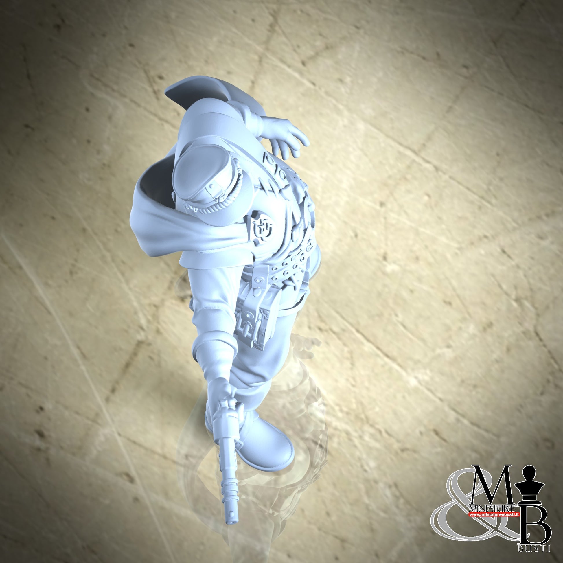 Questa è una MINIATURA. Le miniatura sono modelli pensati per i giochi di ruolo, ad esempio dungeons & Dragons, che poi ridimensioniamo in alto o in basso per le differenti scale. Di solito sono originariamente scolpiti per sistemi a 32mm (dove un uomo standard è alto 32mm dai piedi alla testa). Le proporzioni sono pensate tenendo in considerazione che verranno maneggiate spesso, quindi dettagli come spade e scudi sono particolarmente spessi. La miniatura viene venduta come appare nell'immagine, e dato che alcuni autori non aggiungono una base, se questa è assente nell'immagine significa che non verrà fornita con la miniatura.