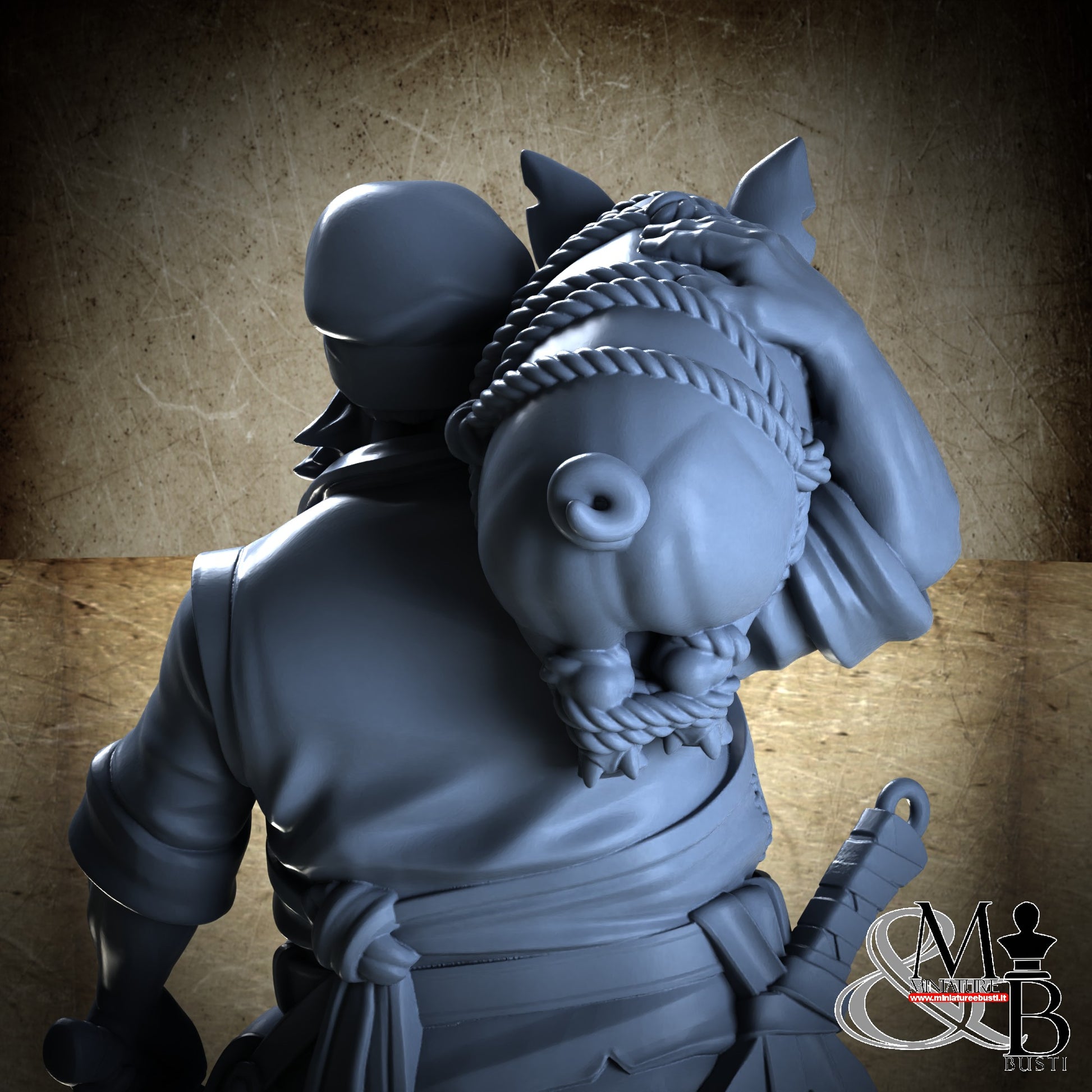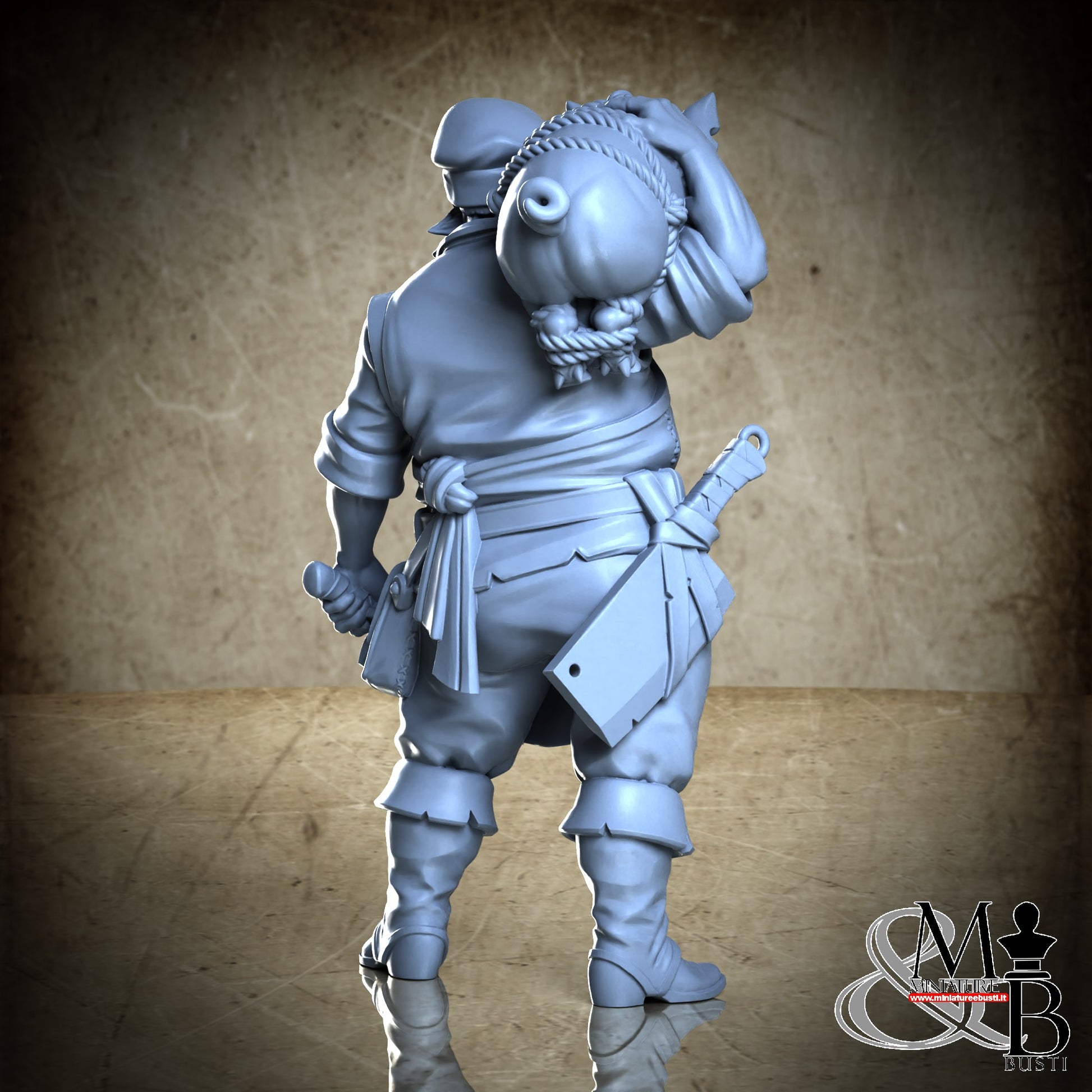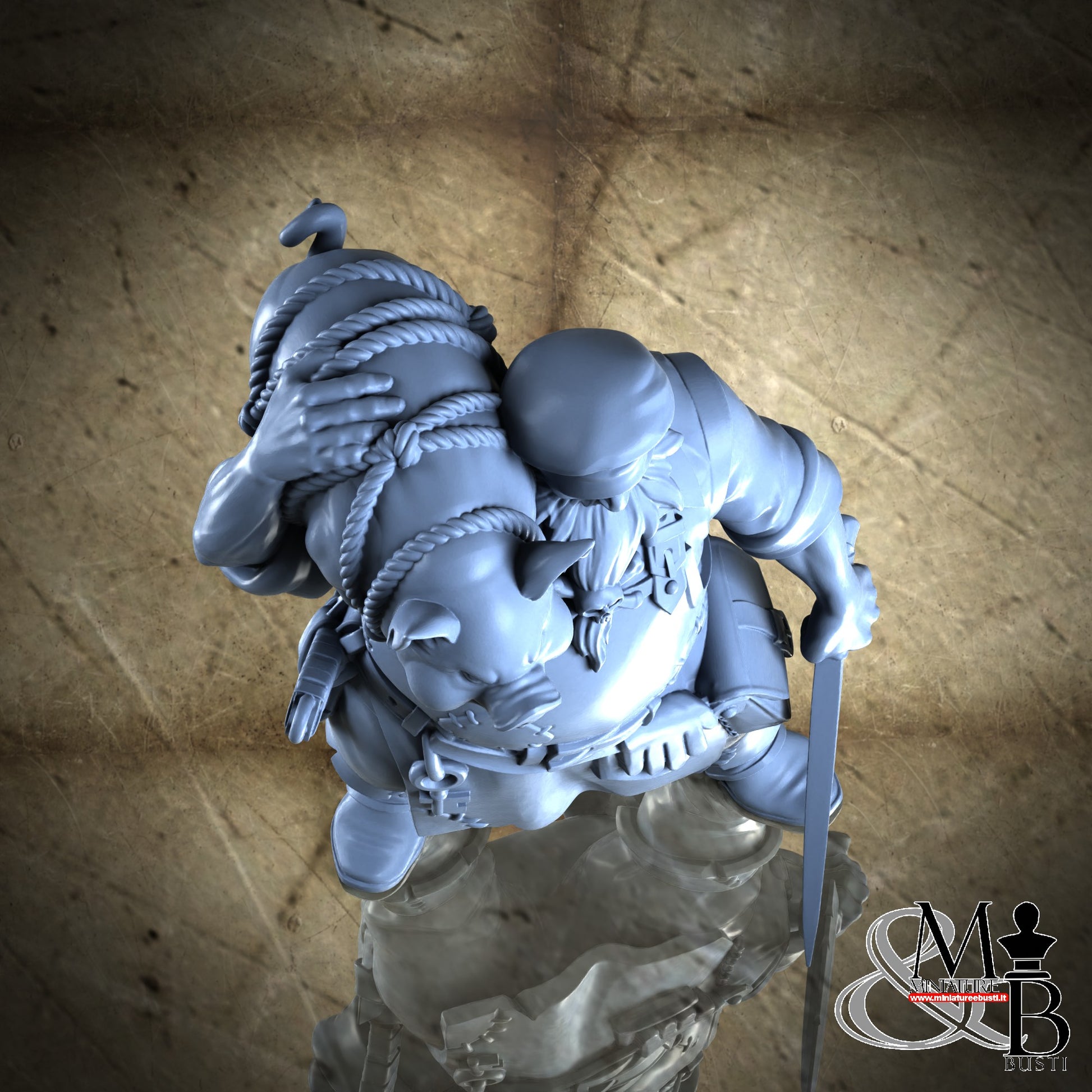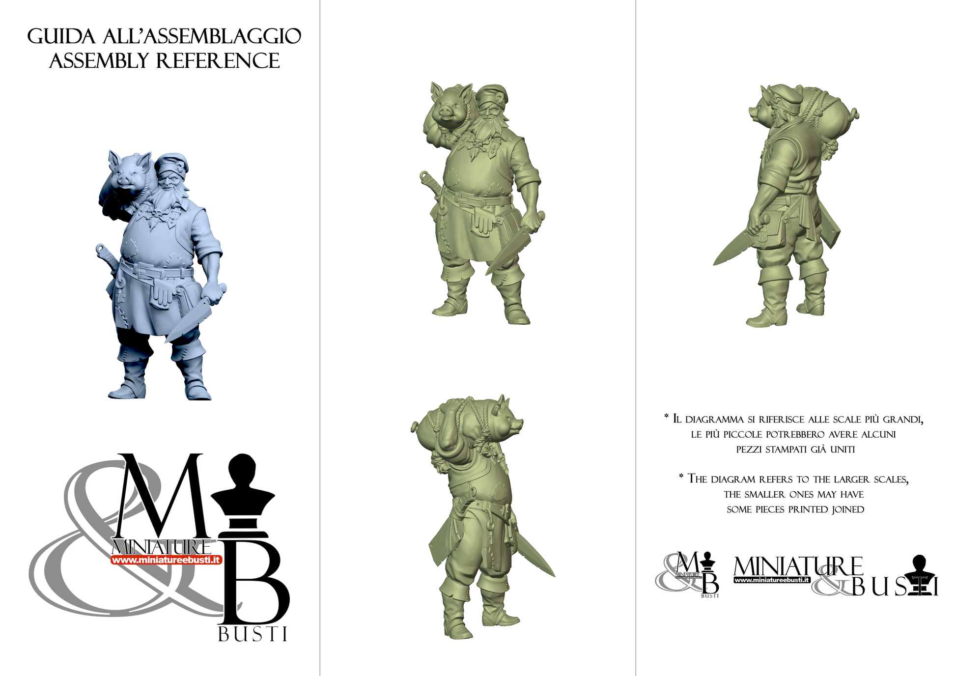 Questa è una MINIATURA. Le miniatura sono modelli pensati per i giochi di ruolo, ad esempio dungeons & Dragons, che poi ridimensioniamo in alto o in basso per le differenti scale. Di solito sono originariamente scolpiti per sistemi a 32mm (dove un uomo standard è alto 32mm dai piedi alla testa). Le proporzioni sono pensate tenendo in considerazione che verranno maneggiate spesso, quindi dettagli come spade e scudi sono particolarmente spessi. La miniatura viene venduta come appare nell'immagine, e dato che alcuni autori non aggiungono una base, se questa è assente nell'immagine significa che non verrà fornita con la miniatura.
