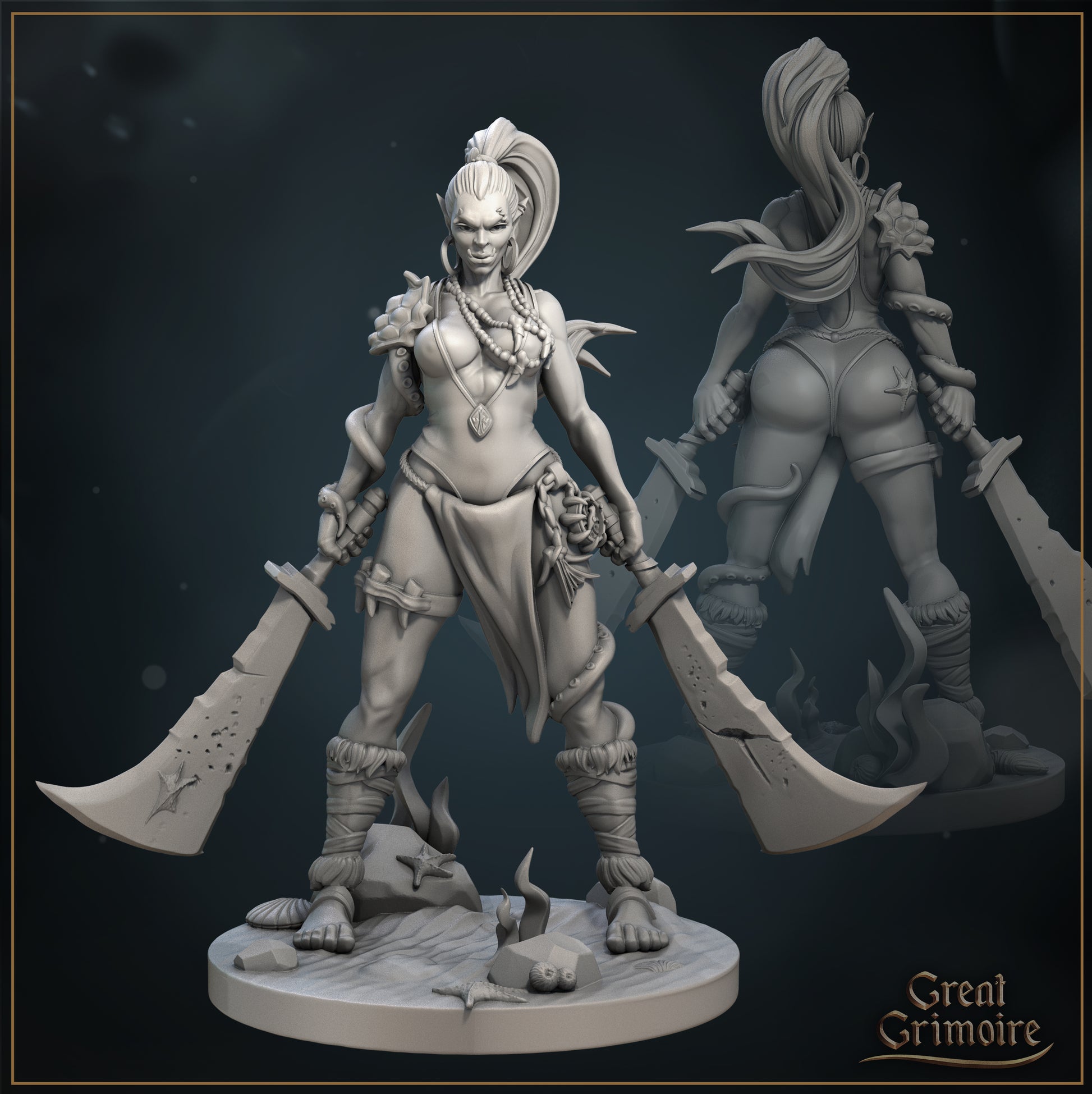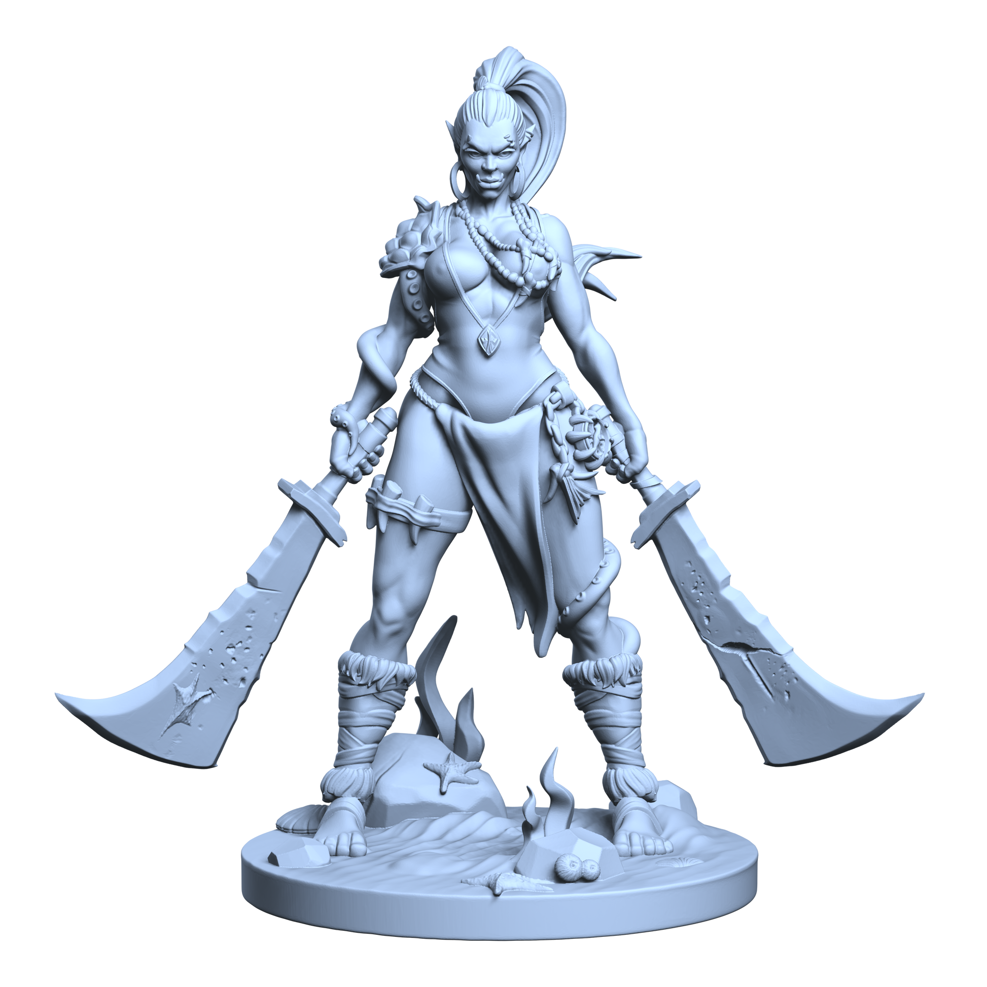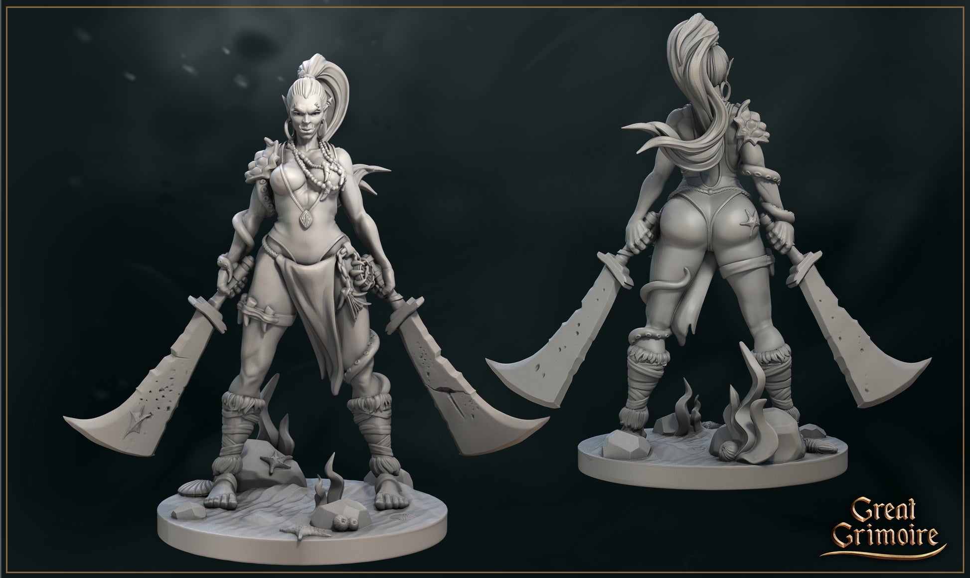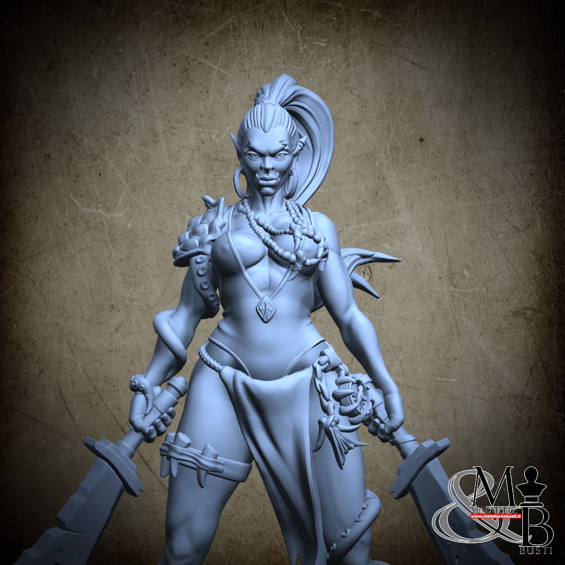 Questa è una MINIATURA. Le miniatura sono modelli pensati per i giochi di ruolo, ad esempio dungeons & Dragons, che poi ridimensioniamo in alto o in basso per le differenti scale. Di solito sono originariamente scolpiti per sistemi a 32mm (dove un uomo standard è alto 32mm dai piedi alla testa). Le proporzioni sono pensate tenendo in considerazione che verranno maneggiate spesso, quindi dettagli come spade e scudi sono particolarmente spessi. La miniatura viene venduta come appare nell'immagine, e dato che alcuni autori non aggiungono una base, se questa è assente nell'immagine significa che non verrà fornita con la miniatura.