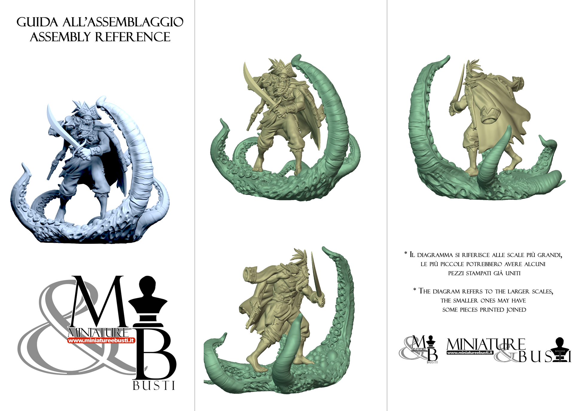 Questa è una MINIATURA. Le miniatura sono modelli pensati per i giochi di ruolo, ad esempio dungeons & Dragons, che poi ridimensioniamo in alto o in basso per le differenti scale. Di solito sono originariamente scolpiti per sistemi a 32mm (dove un uomo standard è alto 32mm dai piedi alla testa). Le proporzioni sono pensate tenendo in considerazione che verranno maneggiate spesso, quindi dettagli come spade e scudi sono particolarmente spessi. La miniatura viene venduta come appare nell'immagine, e dato che alcuni autori non aggiungono una base, se questa è assente nell'immagine significa che non verrà fornita con la miniatura.