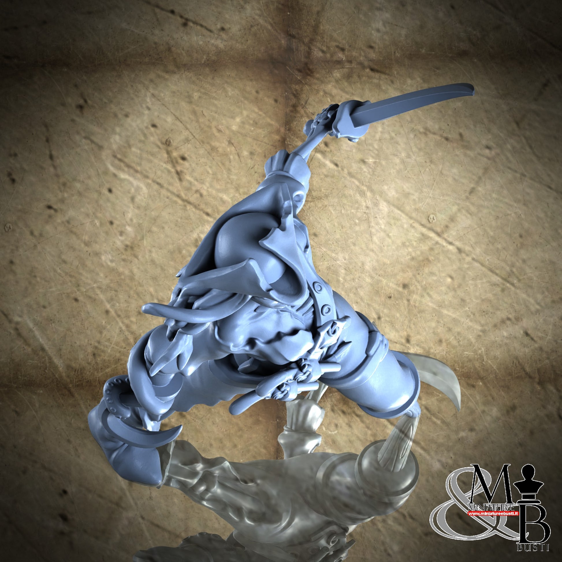 Questa è una MINIATURA. Le miniatura sono modelli pensati per i giochi di ruolo, ad esempio dungeons & Dragons, che poi ridimensioniamo in alto o in basso per le differenti scale. Di solito sono originariamente scolpiti per sistemi a 32mm (dove un uomo standard è alto 32mm dai piedi alla testa). Le proporzioni sono pensate tenendo in considerazione che verranno maneggiate spesso, quindi dettagli come spade e scudi sono particolarmente spessi. La miniatura viene venduta come appare nell'immagine, e dato che alcuni autori non aggiungono una base, se questa è assente nell'immagine significa che non verrà fornita con la miniatura.