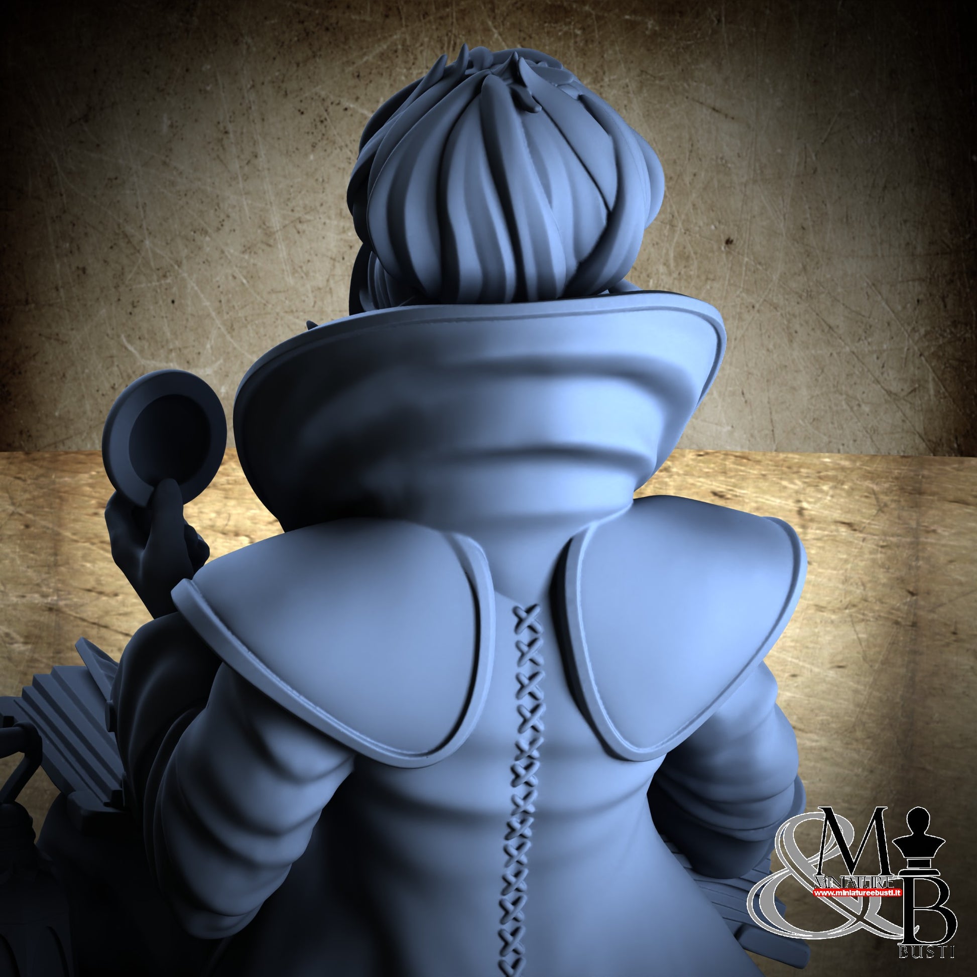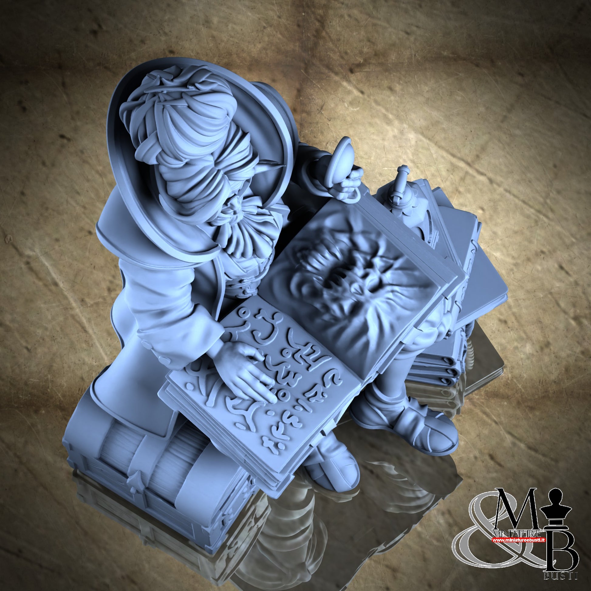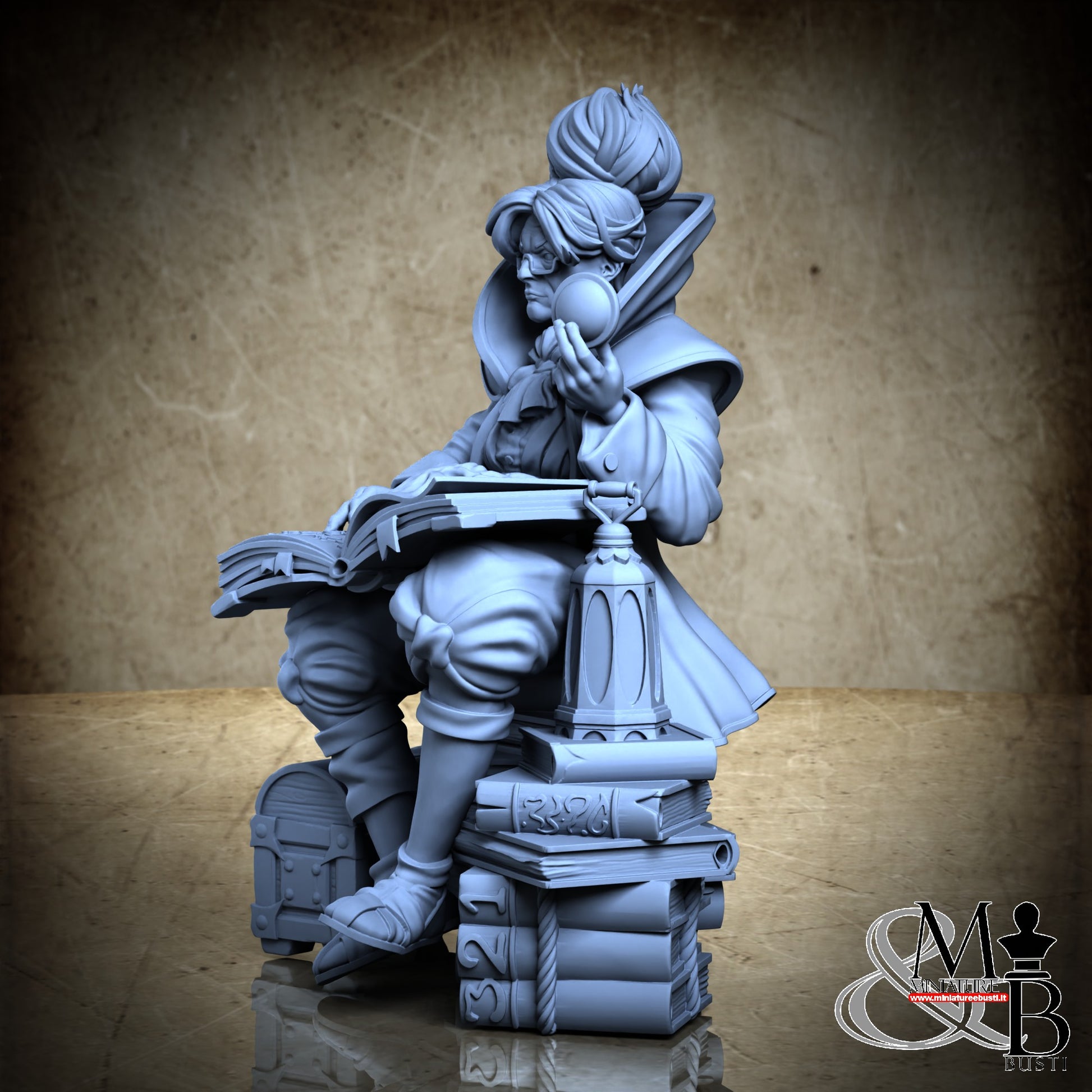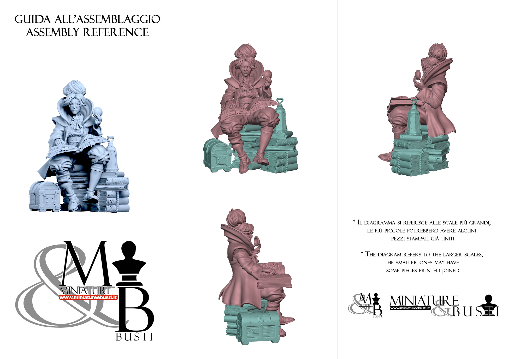 Questa è una MINIATURA. Le miniatura sono modelli pensati per i giochi di ruolo, ad esempio dungeons & Dragons, che poi ridimensioniamo in alto o in basso per le differenti scale. Di solito sono originariamente scolpiti per sistemi a 32mm (dove un uomo standard è alto 32mm dai piedi alla testa). Le proporzioni sono pensate tenendo in considerazione che verranno maneggiate spesso, quindi dettagli come spade e scudi sono particolarmente spessi. La miniatura viene venduta come appare nell'immagine, e dato che alcuni autori non aggiungono una base, se questa è assente nell'immagine significa che non verrà fornita con la miniatura.