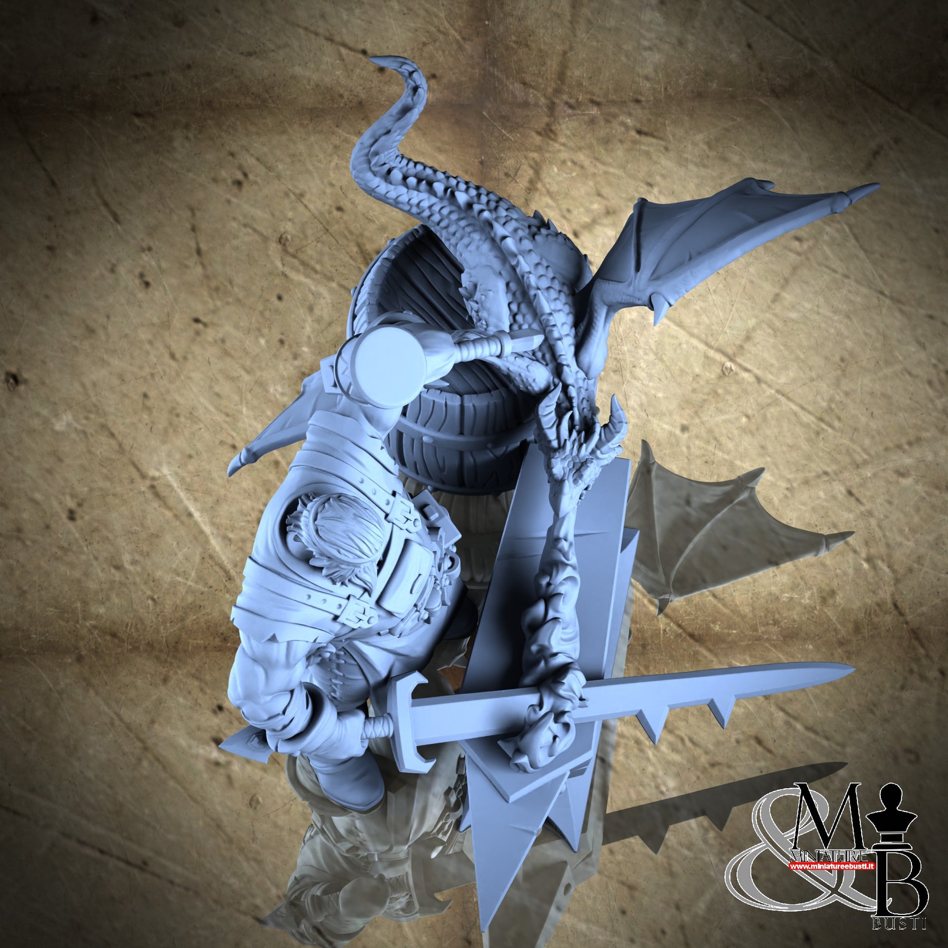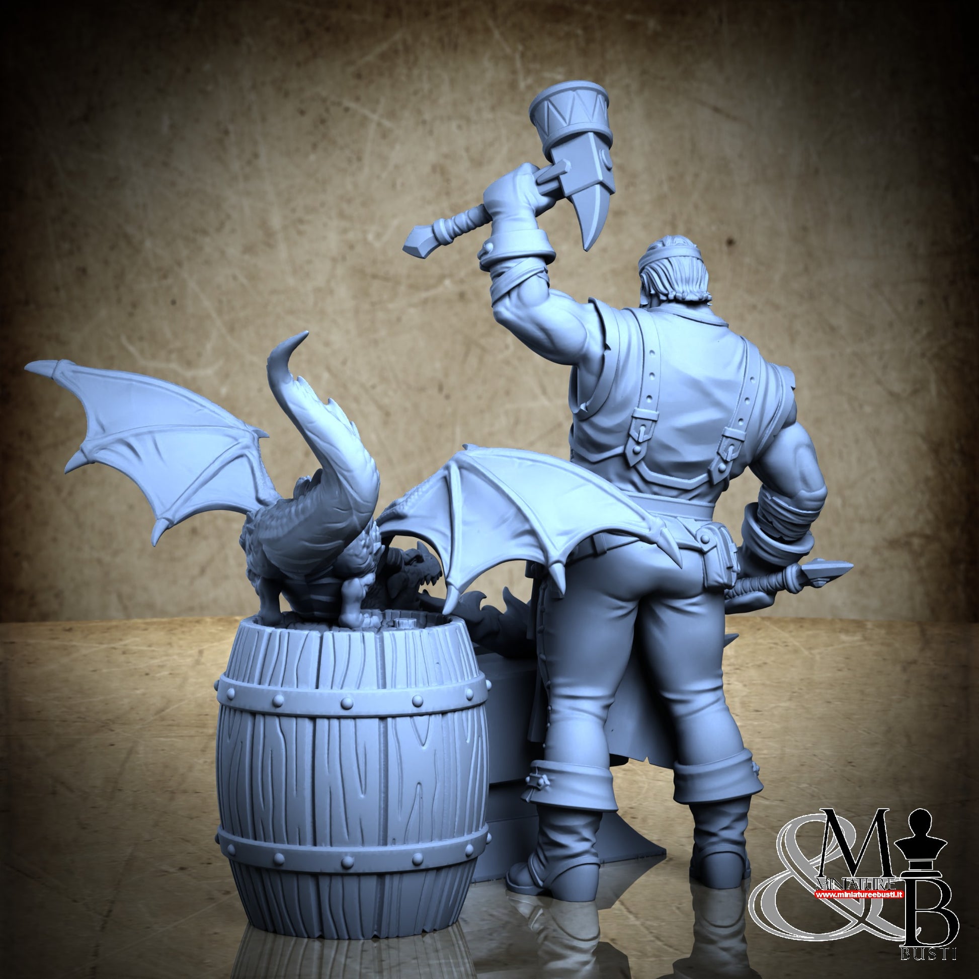 Questa è una MINIATURA. Le miniatura sono modelli pensati per i giochi di ruolo, ad esempio dungeons & Dragons, che poi ridimensioniamo in alto o in basso per le differenti scale. Di solito sono originariamente scolpiti per sistemi a 32mm (dove un uomo standard è alto 32mm dai piedi alla testa). Le proporzioni sono pensate tenendo in considerazione che verranno maneggiate spesso, quindi dettagli come spade e scudi sono particolarmente spessi. La miniatura viene venduta come appare nell'immagine, e dato che alcuni autori non aggiungono una base, se questa è assente nell'immagine significa che non verrà fornita con la miniatura.