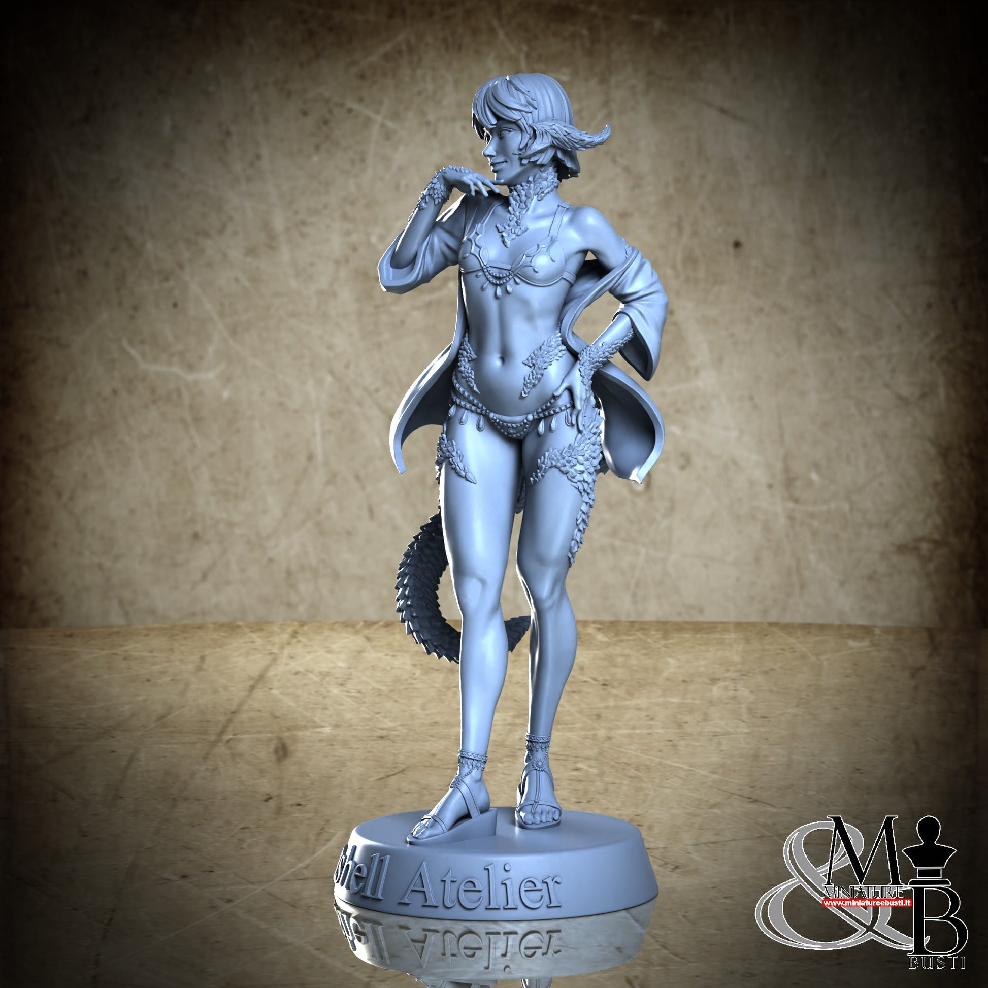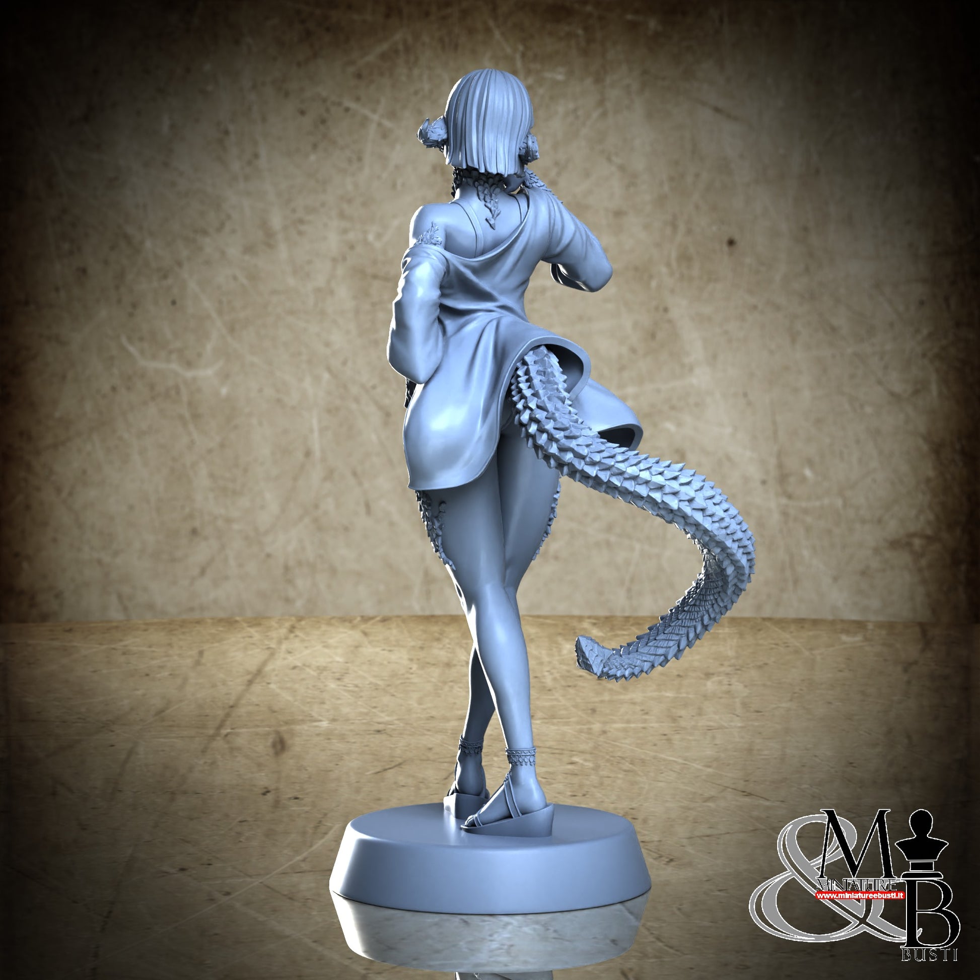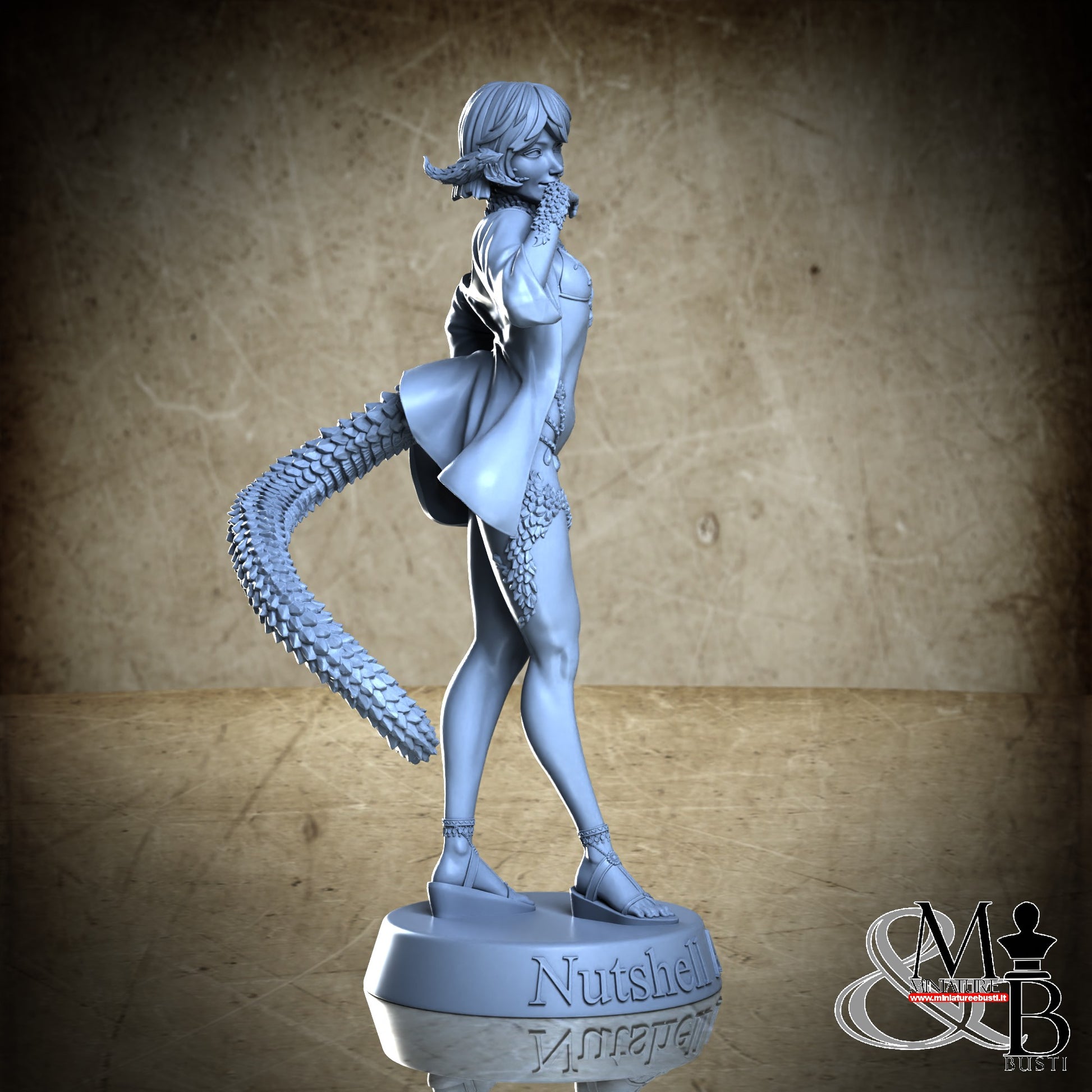 Questa è una MINIATURA. Le miniatura sono modelli pensati per i giochi di ruolo, ad esempio dungeons & Dragons, che poi ridimensioniamo in alto o in basso per le differenti scale. Di solito sono originariamente scolpiti per sistemi a 32mm (dove un uomo standard è alto 32mm dai piedi alla testa). Le proporzioni sono pensate tenendo in considerazione che verranno maneggiate spesso, quindi dettagli come spade e scudi sono particolarmente spessi. La miniatura viene venduta come appare nell'immagine, e dato che alcuni autori non aggiungono una base, se questa è assente nell'immagine significa che non verrà fornita con la miniatura.