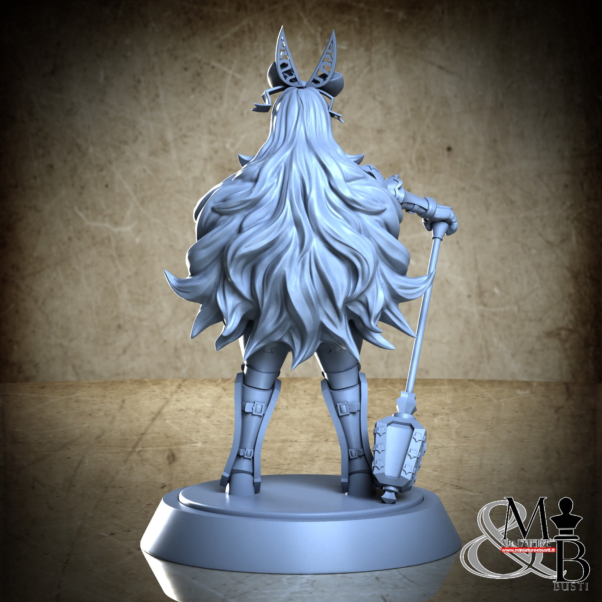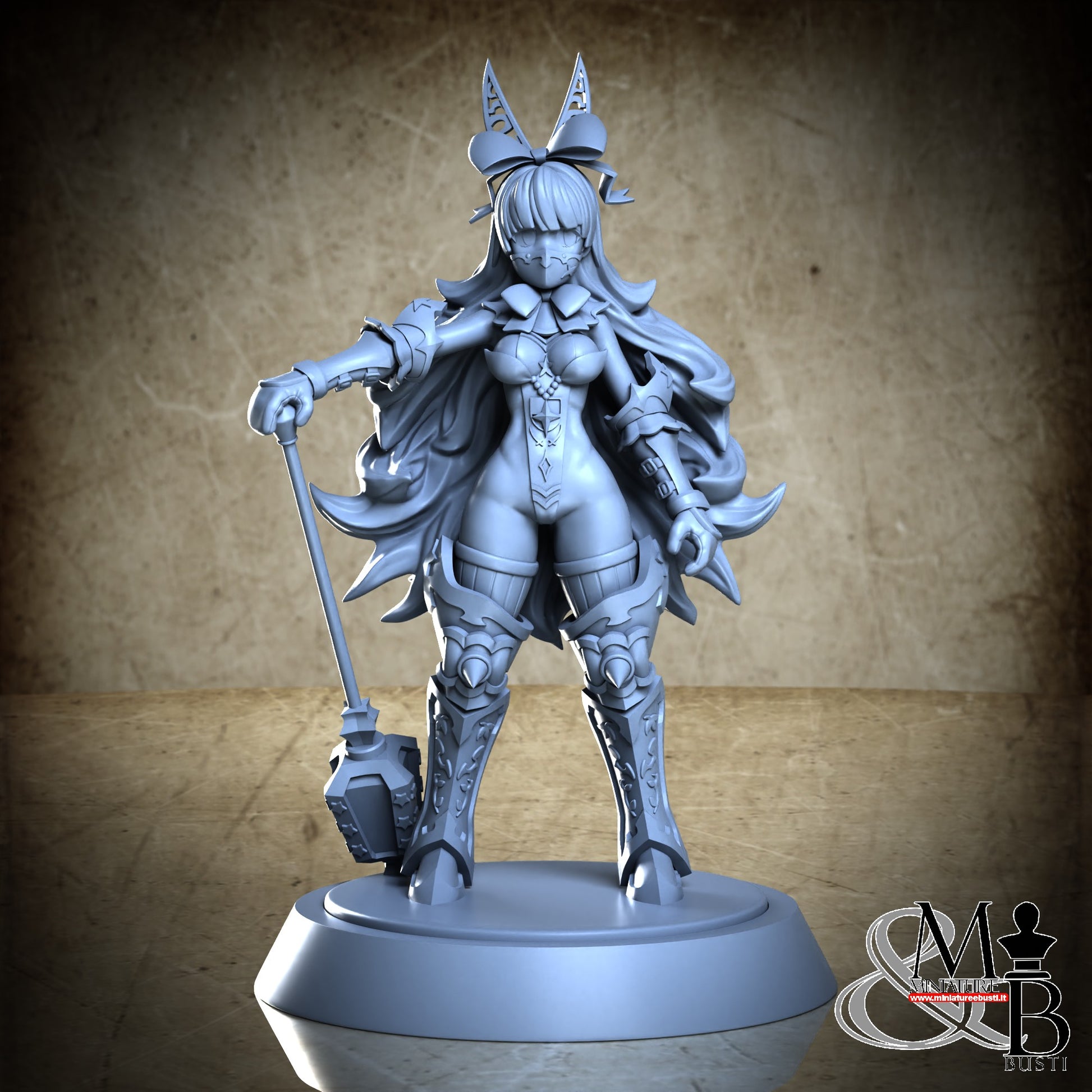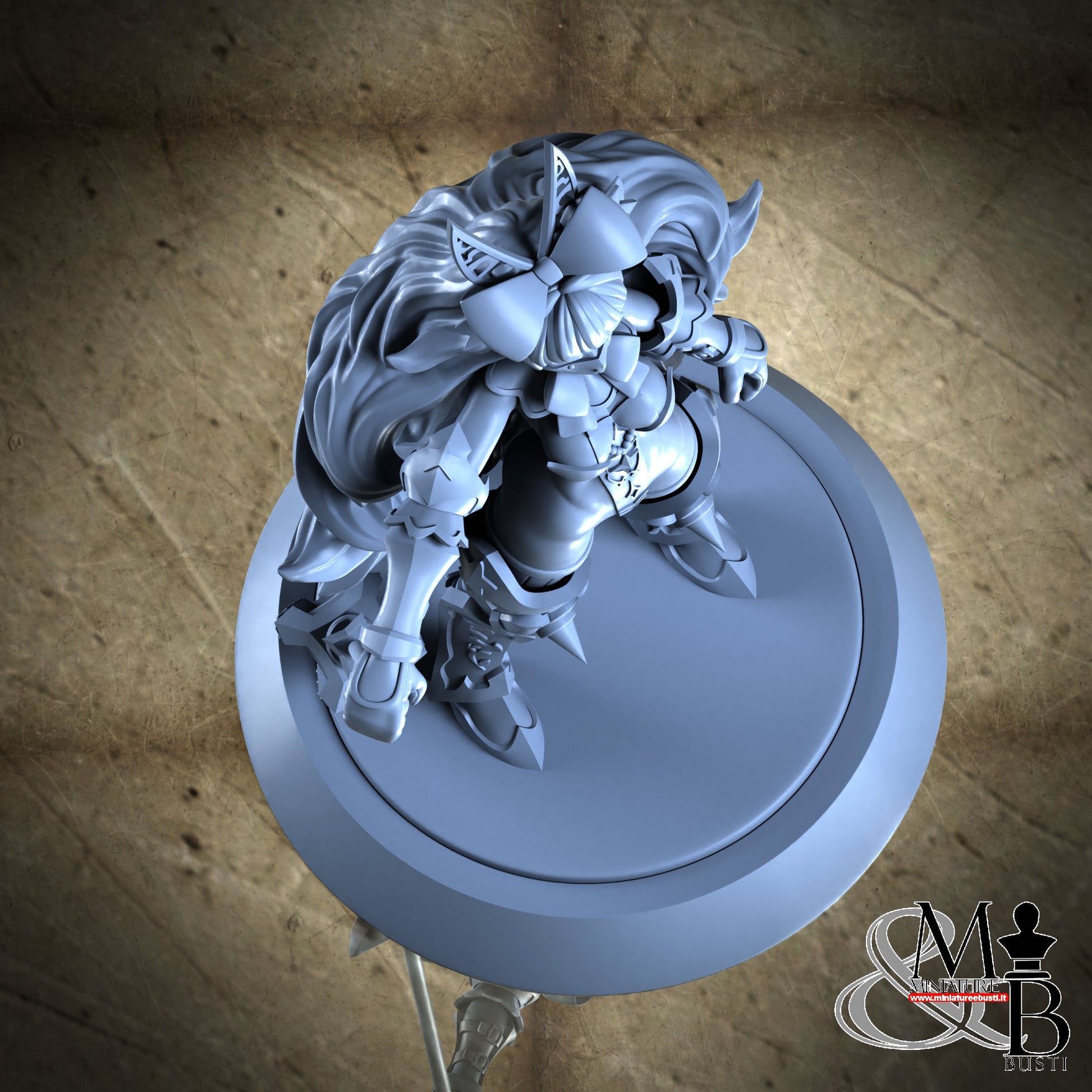Questa è una MINIATURA. Le miniatura sono modelli pensati per i giochi di ruolo, ad esempio dungeons & Dragons, che poi ridimensioniamo in alto o in basso per le differenti scale. Di solito sono originariamente scolpiti per sistemi a 32mm (dove un uomo standard è alto 32mm dai piedi alla testa). Le proporzioni sono pensate tenendo in considerazione che verranno maneggiate spesso, quindi dettagli come spade e scudi sono particolarmente spessi. La miniatura viene venduta come appare nell'immagine, e dato che alcuni autori non aggiungono una base, se questa è assente nell'immagine significa che non verrà fornita con la miniatura.