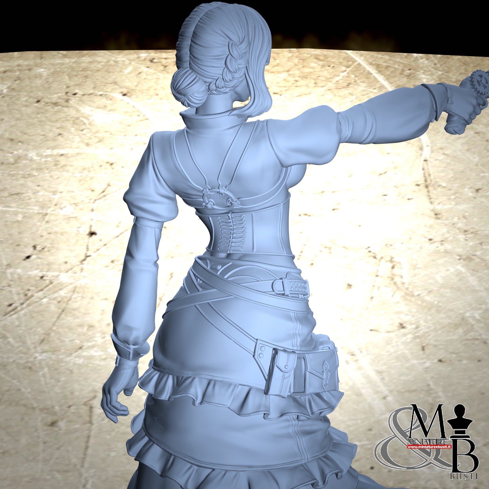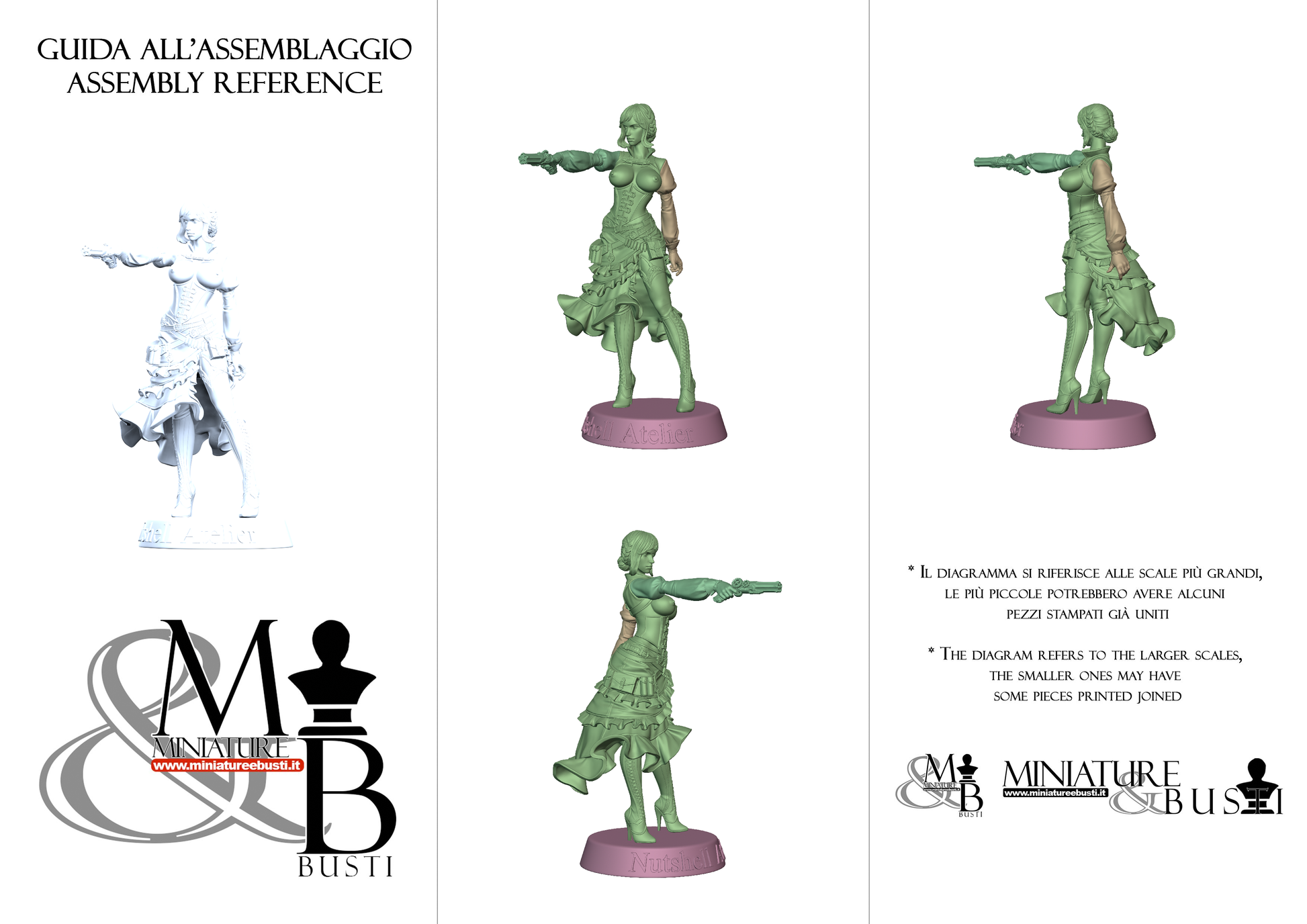 Questa è una MINIATURA. Le miniatura sono modelli pensati per i giochi di ruolo, ad esempio dungeons & Dragons, che poi ridimensioniamo in alto o in basso per le differenti scale. Di solito sono originariamente scolpiti per sistemi a 32mm (dove un uomo standard è alto 32mm dai piedi alla testa). Le proporzioni sono pensate tenendo in considerazione che verranno maneggiate spesso, quindi dettagli come spade e scudi sono particolarmente spessi. La miniatura viene venduta come appare nell'immagine, e dato che alcuni autori non aggiungono una base, se questa è assente nell'immagine significa che non verrà fornita con la miniatura.