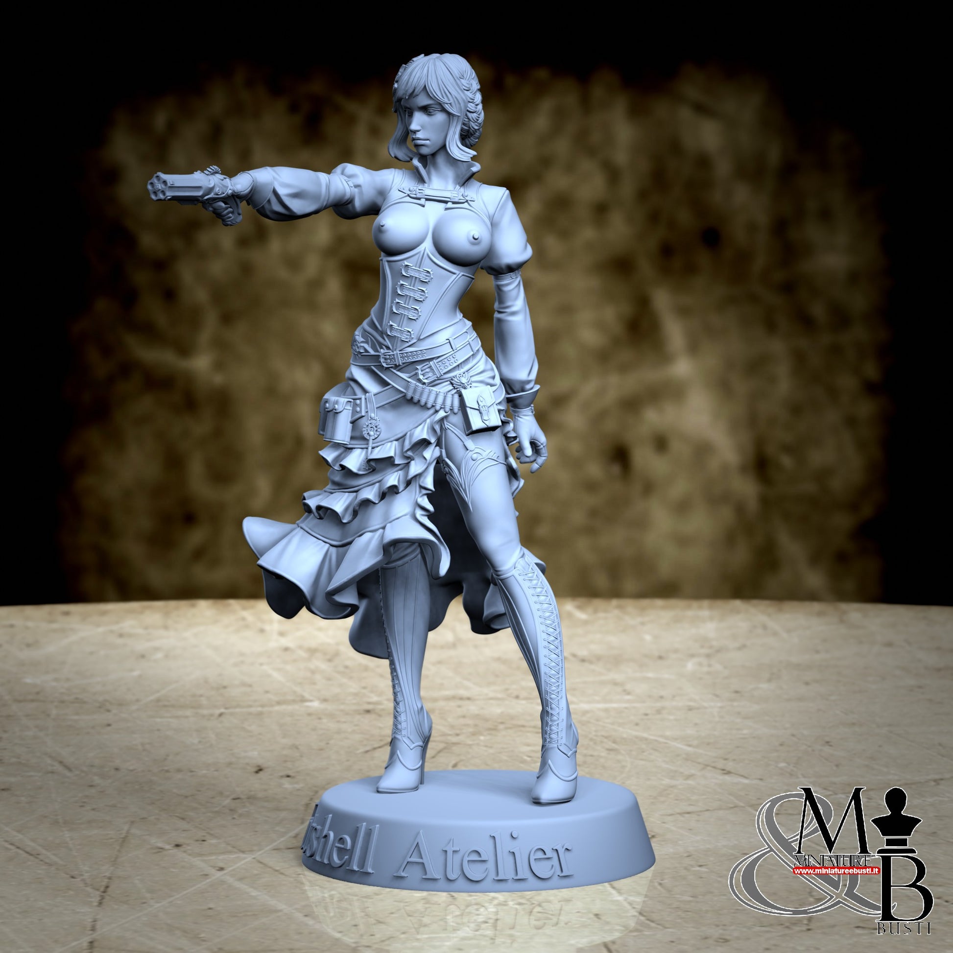 Questa è una MINIATURA. Le miniatura sono modelli pensati per i giochi di ruolo, ad esempio dungeons & Dragons, che poi ridimensioniamo in alto o in basso per le differenti scale. Di solito sono originariamente scolpiti per sistemi a 32mm (dove un uomo standard è alto 32mm dai piedi alla testa). Le proporzioni sono pensate tenendo in considerazione che verranno maneggiate spesso, quindi dettagli come spade e scudi sono particolarmente spessi. La miniatura viene venduta come appare nell'immagine, e dato che alcuni autori non aggiungono una base, se questa è assente nell'immagine significa che non verrà fornita con la miniatura.