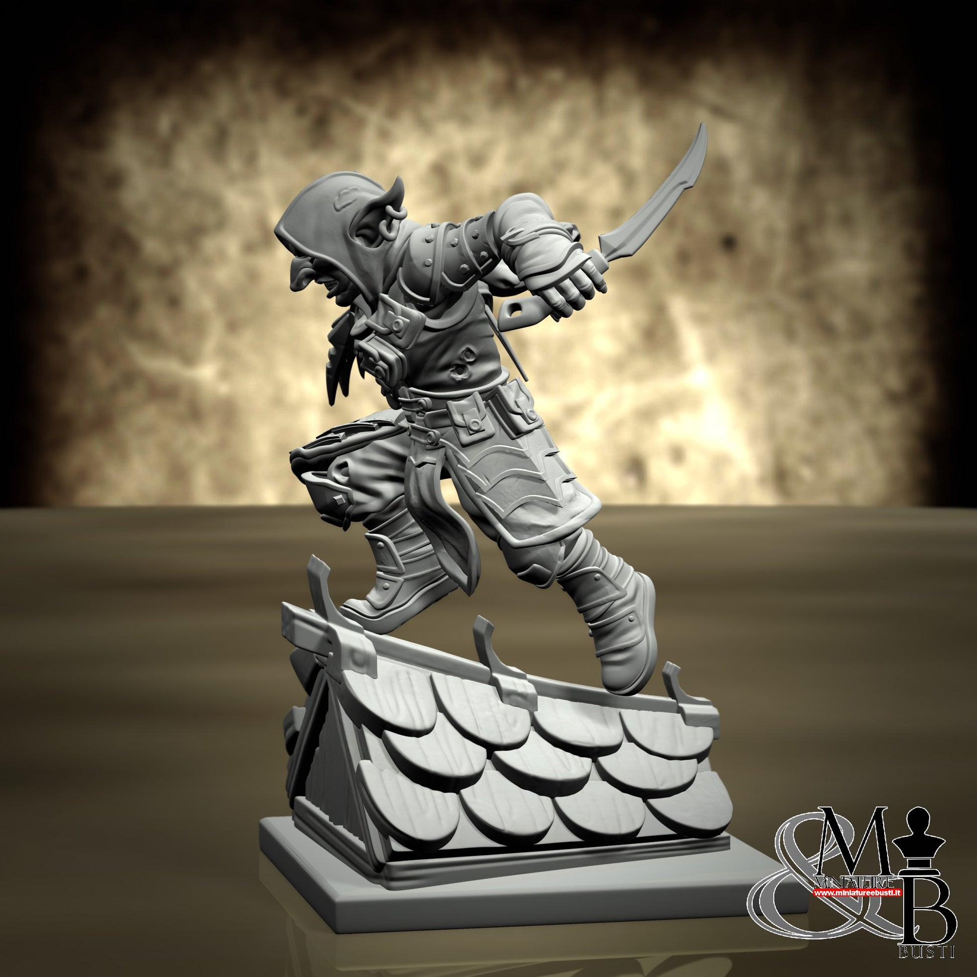 Questa è una MINIATURA. Le miniatura sono modelli pensati per i giochi di ruolo, ad esempio dungeons & Dragons, che poi ridimensioniamo in alto o in basso per le differenti scale. Di solito sono originariamente scolpiti per sistemi a 32mm (dove un uomo standard è alto 32mm dai piedi alla testa). Le proporzioni sono pensate tenendo in considerazione che verranno maneggiate spesso, quindi dettagli come spade e scudi sono particolarmente spessi. La miniatura viene venduta come appare nell'immagine, e dato che alcuni autori non aggiungono una base, se questa è assente nell'immagine significa che non verrà fornita con la miniatura.